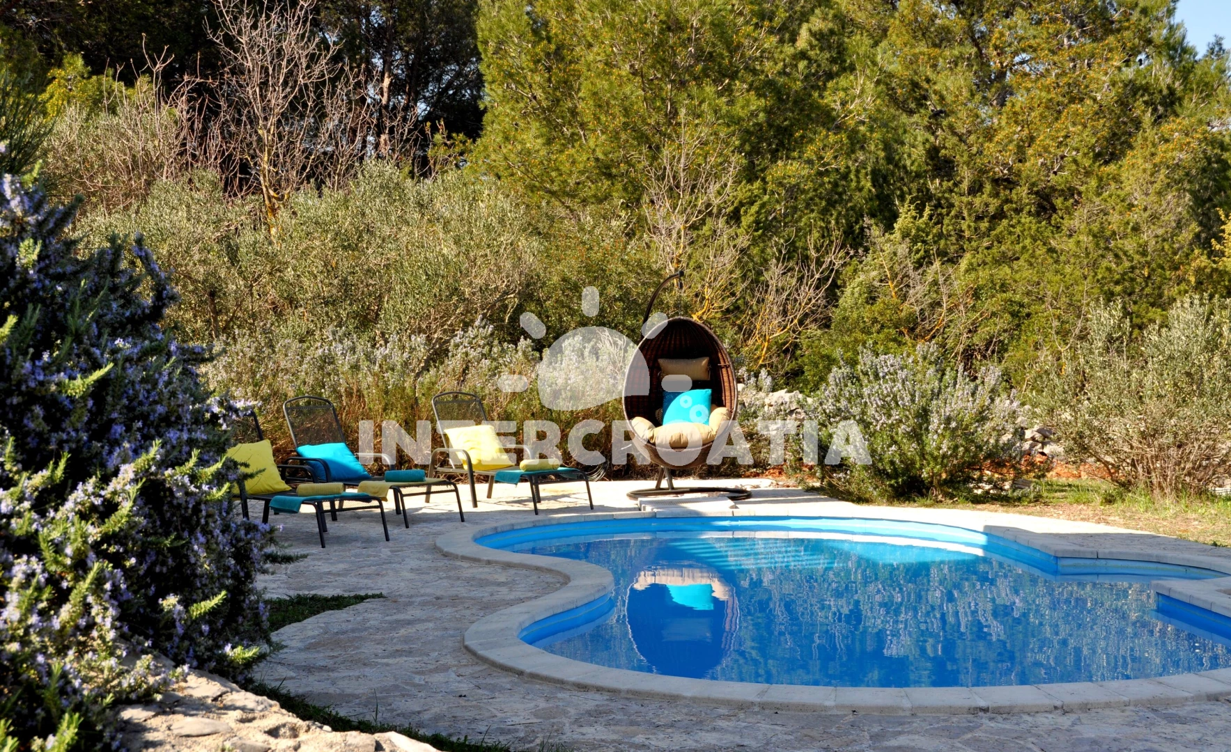 Vila se nachází 500 m od moře a pláže. Pláž je skalnatá, oblázková a větší kamení. Vila disponuje bazénem s lehátky pro ubytované hosty. U objektu je k dispozici společná zahrada s posezením a grilem. Parkování je před domem.