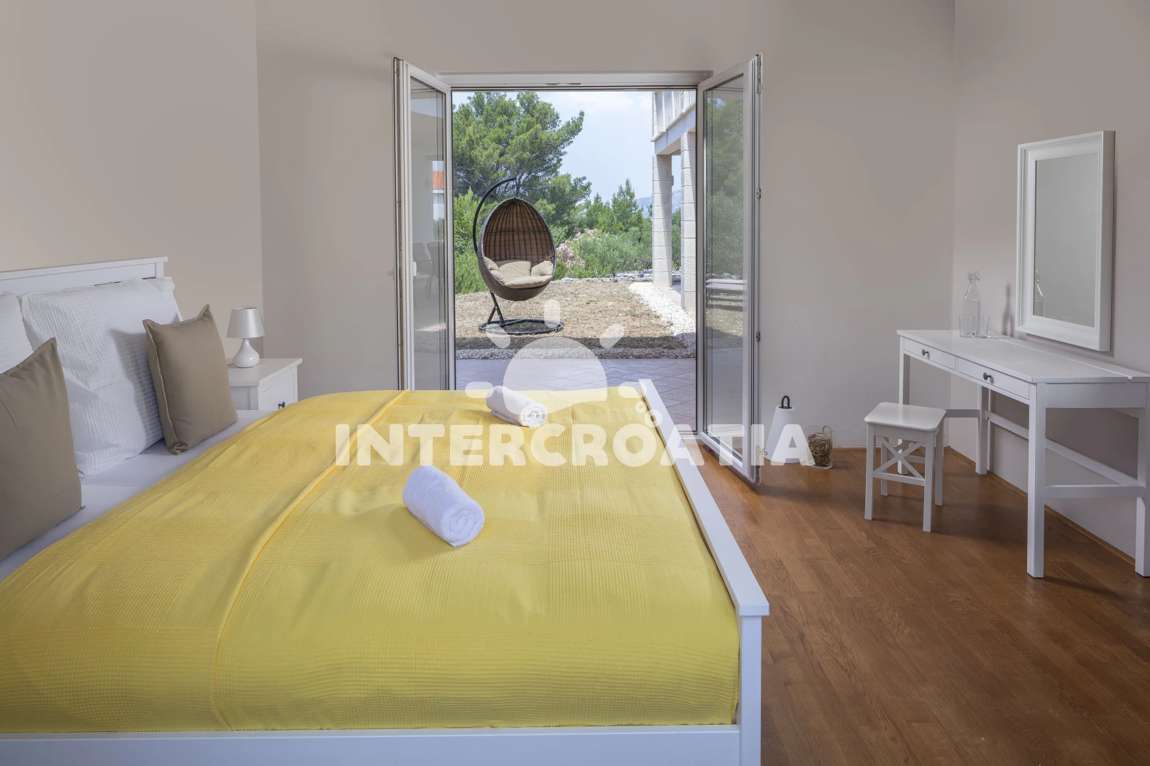 Vila (280 m2) s balkonem. Vila má 4 ložnice a je vhodná pro až 10 osob. Kuchyňská linka je vybavena varnou deskou, troubou, kávovarem, toustovačem, myčkou na nádobí, mikrovlnnou troubou, rychlovarnou konvicí, nádobím, lednicí, mrazákem. V obývací místnosti je rozložitelná pohovka (extra lůžko pro 2 osoby). K dispozici televize, sejf, žehlička. První ložnice s dvoulůžkem. Druhá ložnice s dvoulůžkem. Třetí ložnice s dvoulůžkem. Čtvrtá ložnice s dvoulůžkem. První koupelna se sprchovým koutem, umyvadlem, fénem a WC. Druhá koupelna se sprchovým koutem, umyvadlem, fénem a WC. Třetí koupelna s vanou, umyvadlem, fénem a WC. Dále samostatné WC.