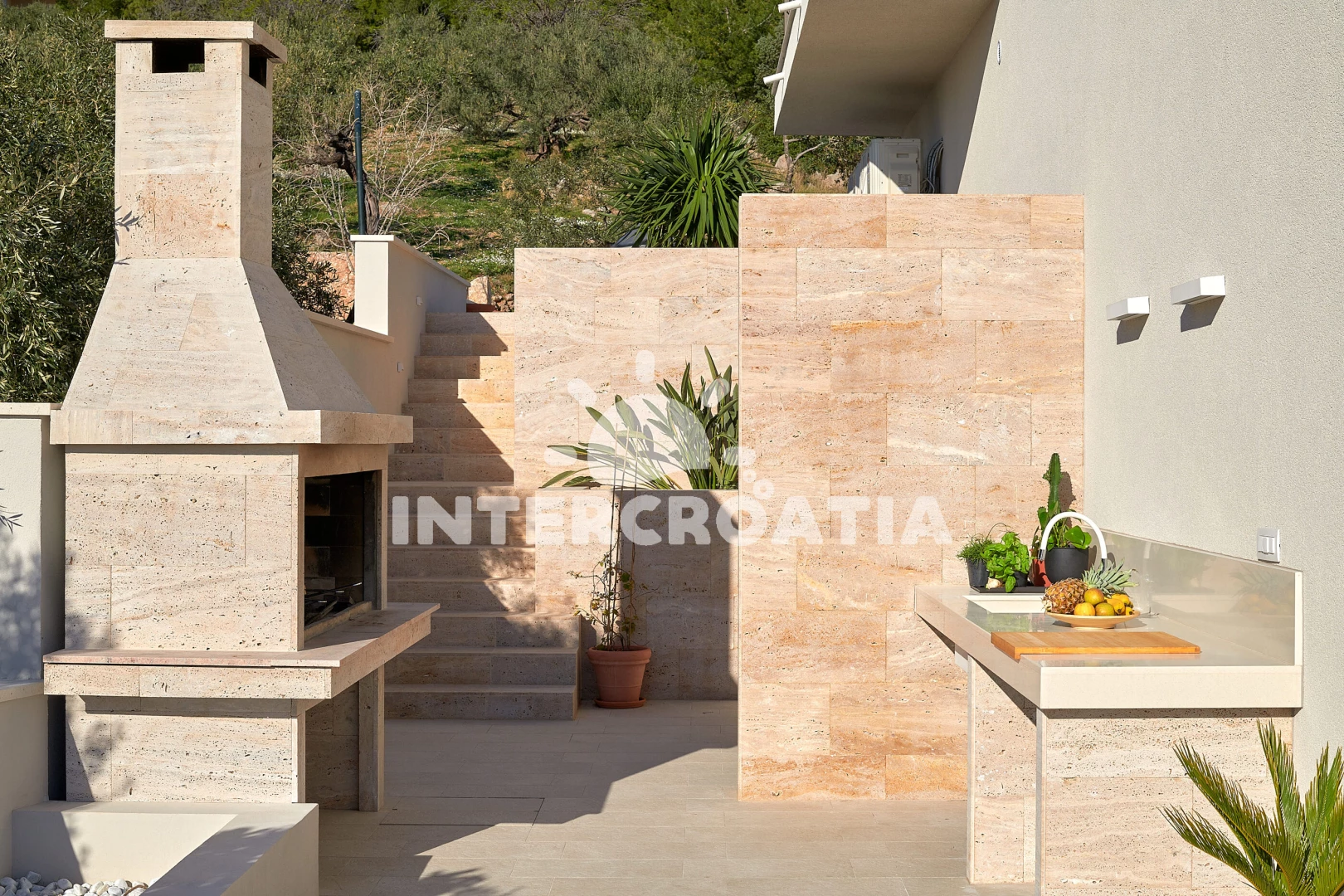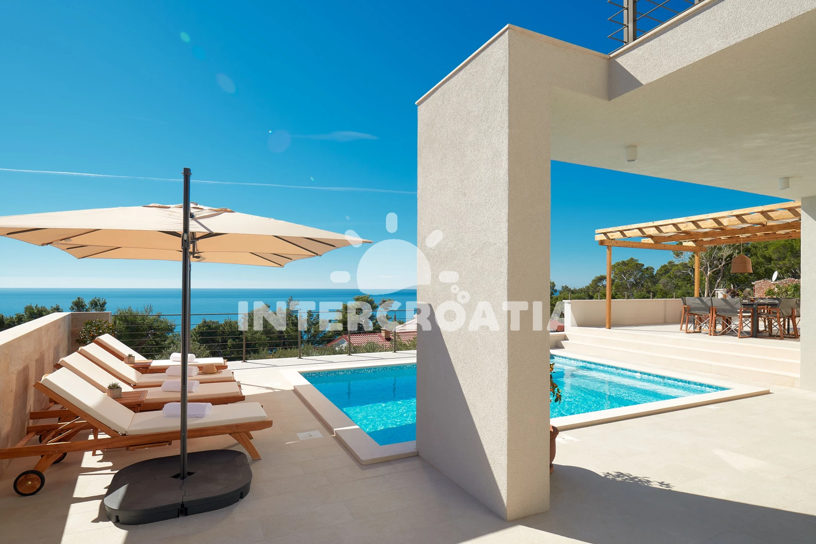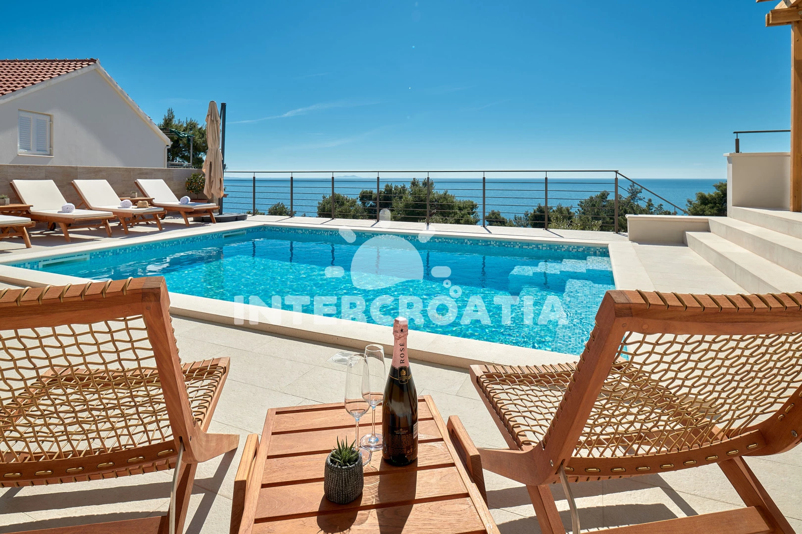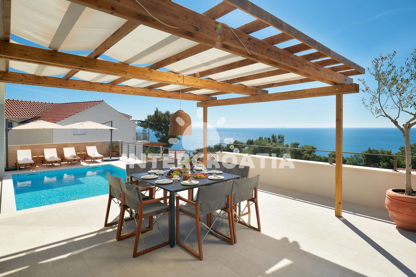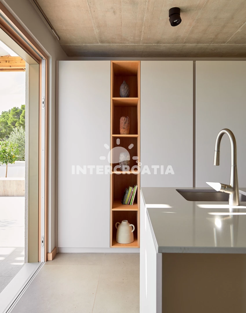 Vila se nachází 300 m od moře a pláže. Pláž je skalnatá, oblázková, větší kamení a betonové desky. Vila disponuje bazénem s lehátky pro ubytované hosty. U objektu je k dispozici společná zahrada s posezením a grilem. Parkování je před domem.