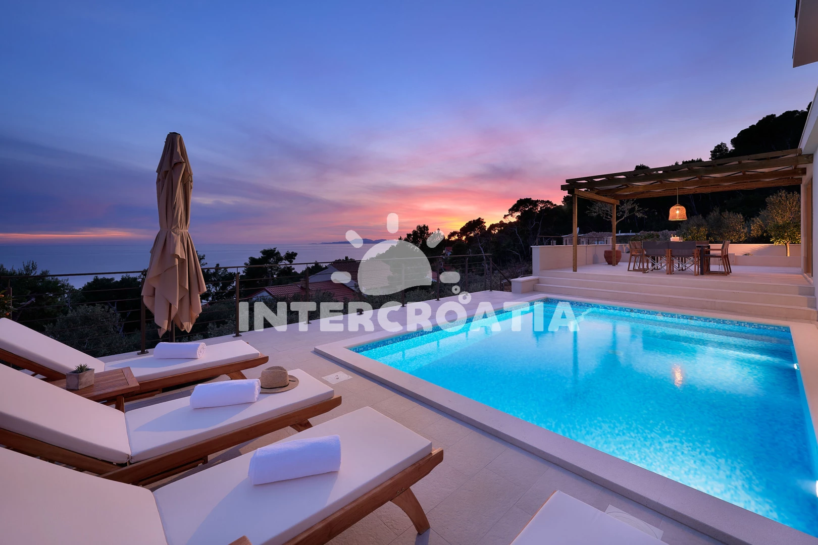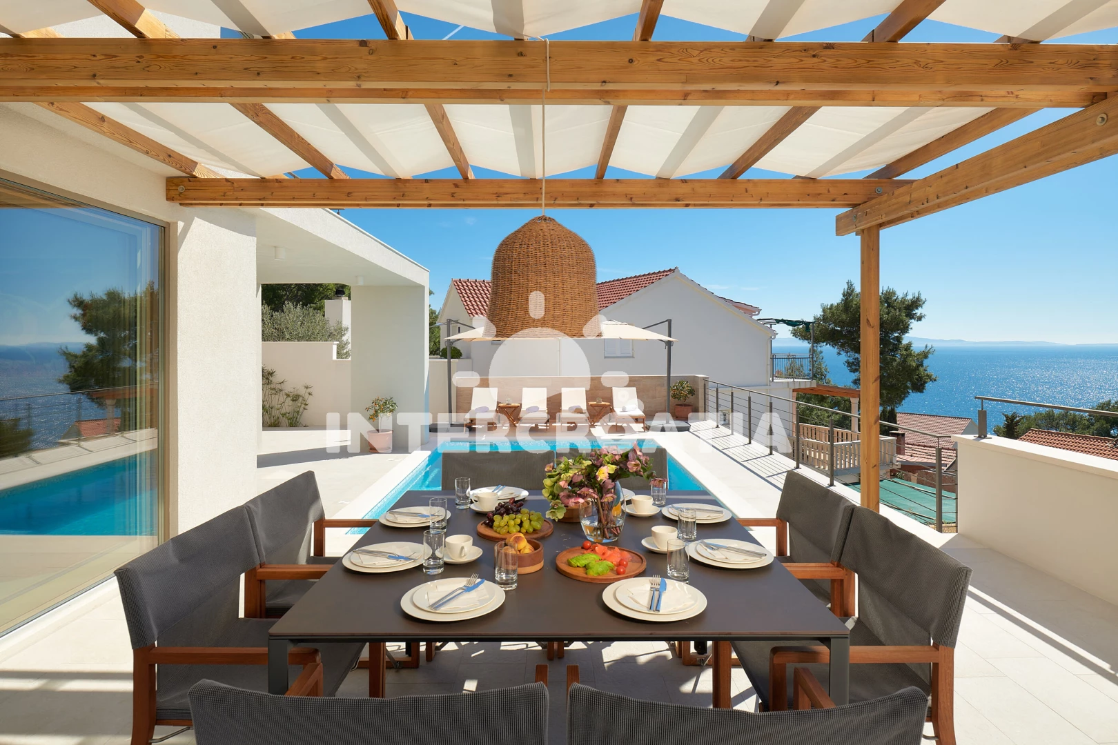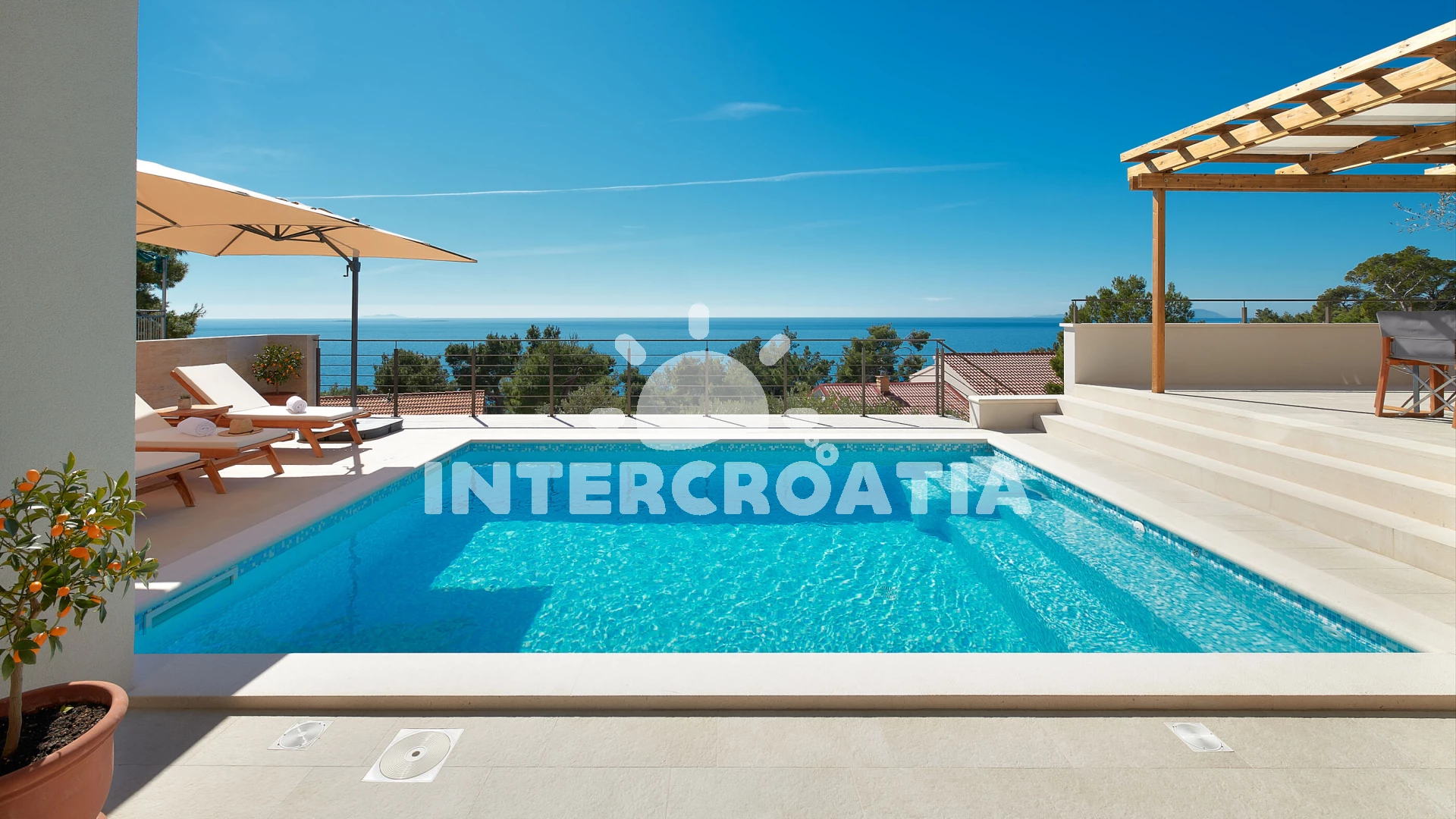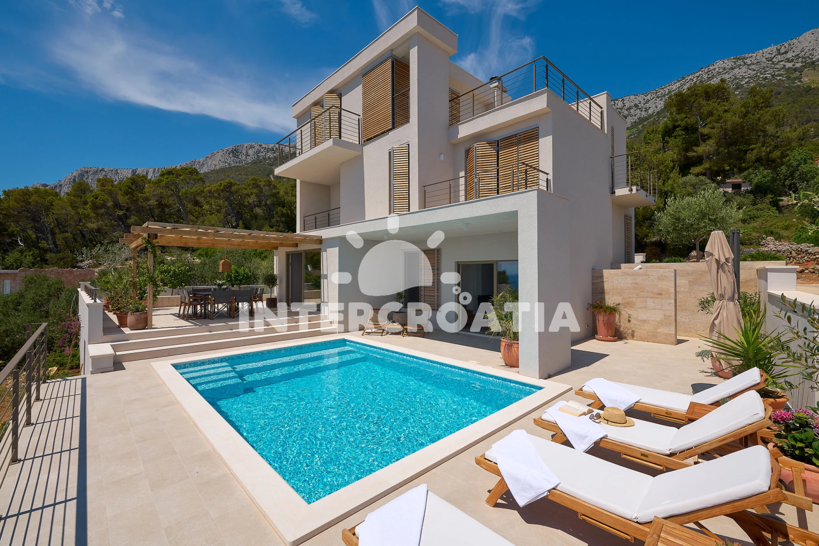 Vila se nachází 300 m od moře a pláže. Pláž je skalnatá, oblázková, větší kamení a betonové desky. Vila disponuje bazénem s lehátky pro ubytované hosty. U objektu je k dispozici společná zahrada s posezením a grilem. Parkování je před domem.