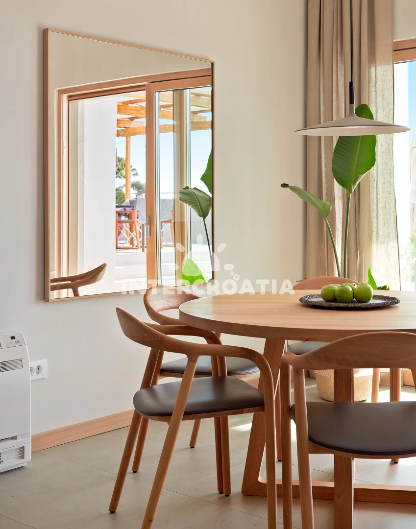 Vila (230 m2) s balkonem. Nachází se ve dvou patrech objektu. Vila má 3 ložnice a je vhodná pro až 6 osob. Kuchyňská linka je vybavena varnou deskou, toustovačem, troubou, kávovarem, myčkou na nádobí…