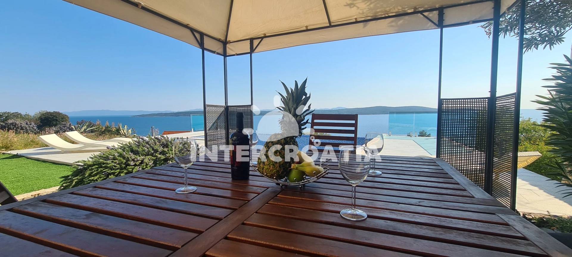 Vila se nachází 300 m od moře a pláže. Pláž je skalnatá, oblázková, větší kamení a betonové desky. Vila disponuje bazénem s lehátky pro ubytované hosty. U objektu je k dispozici společná zahrada s posezením a grilem. Parkování je 50m - 150 m od domu.