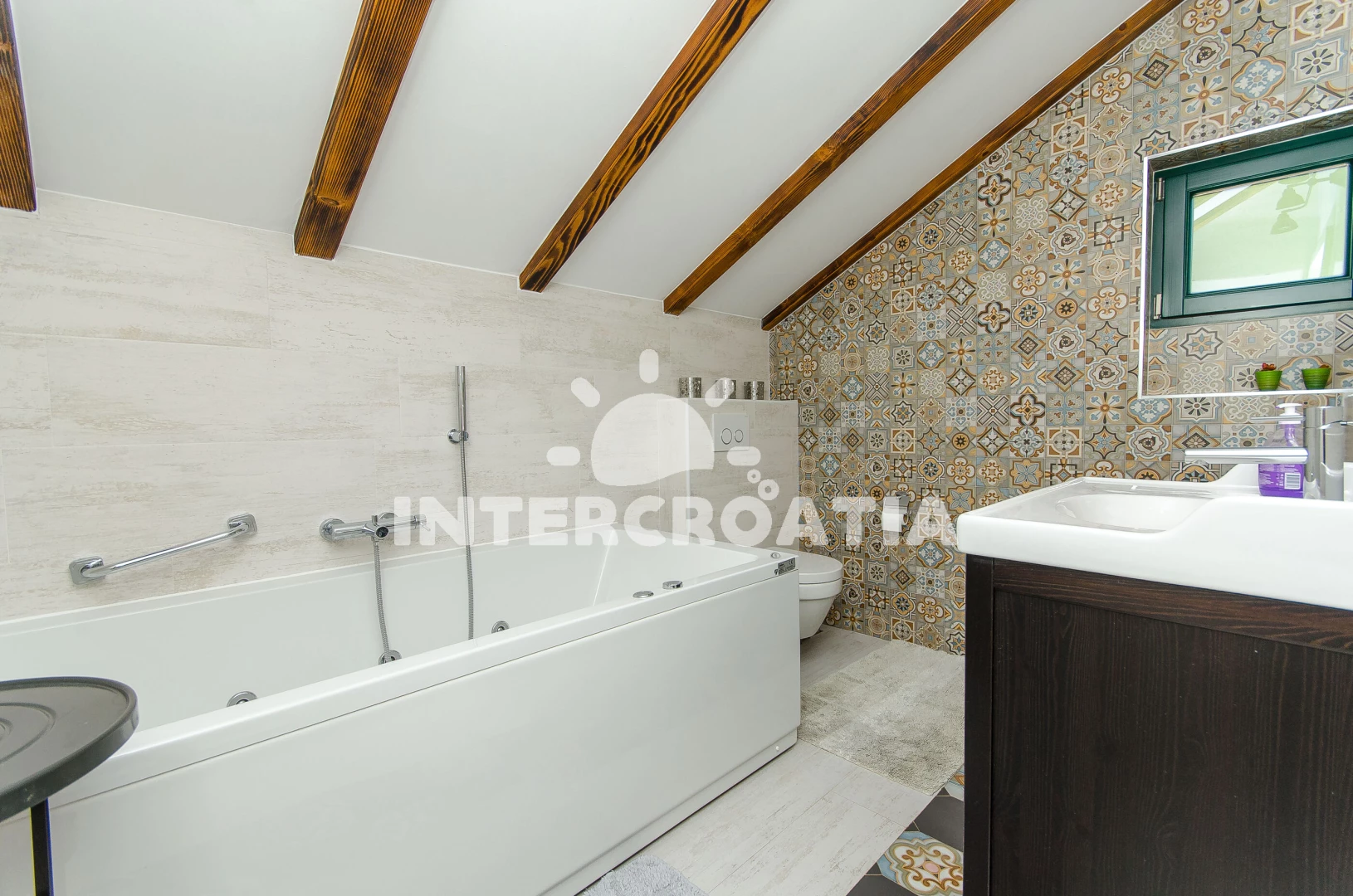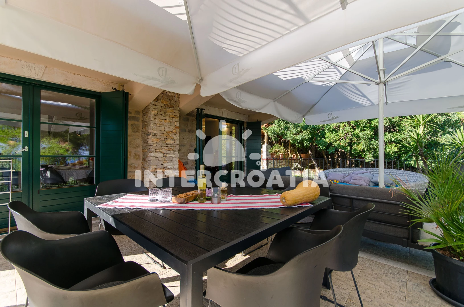 Vila se nachází 250 m od moře a pláže. Pláž je skalnatá, oblázková a větší kamení. Vila disponuje bazénem s lehátky pro ubytované hosty. K dispozici posilovna, sauna. U objektu je k dispozici společná zahrada s posezením a grilem. Parkování je před domem.