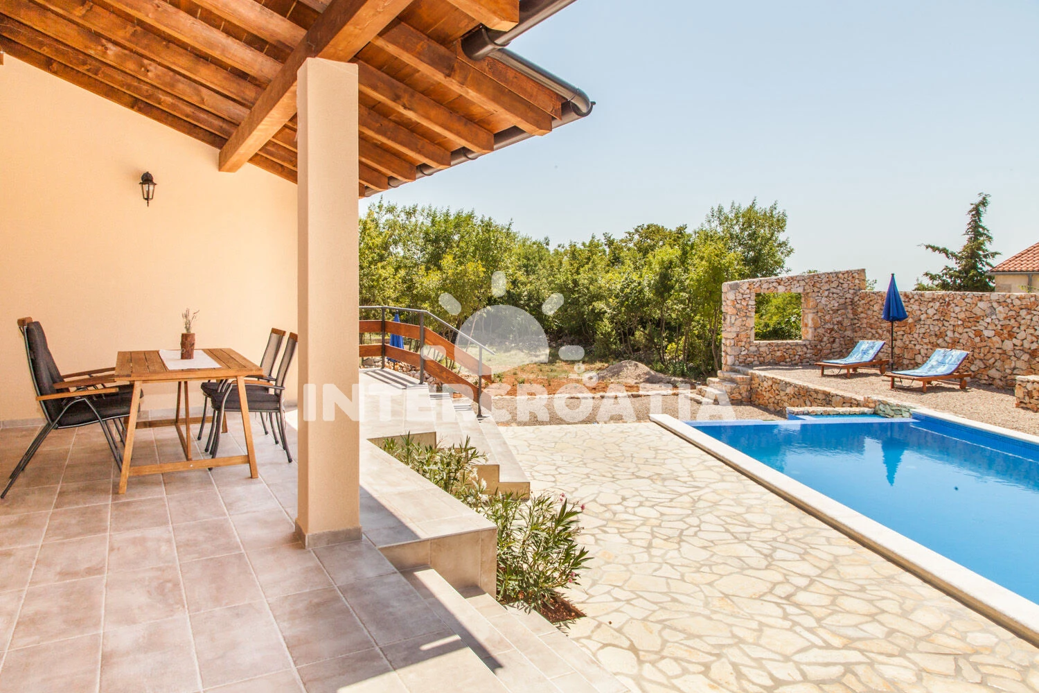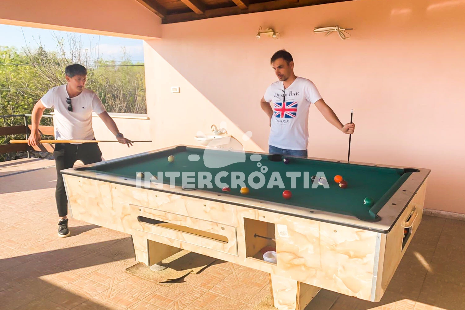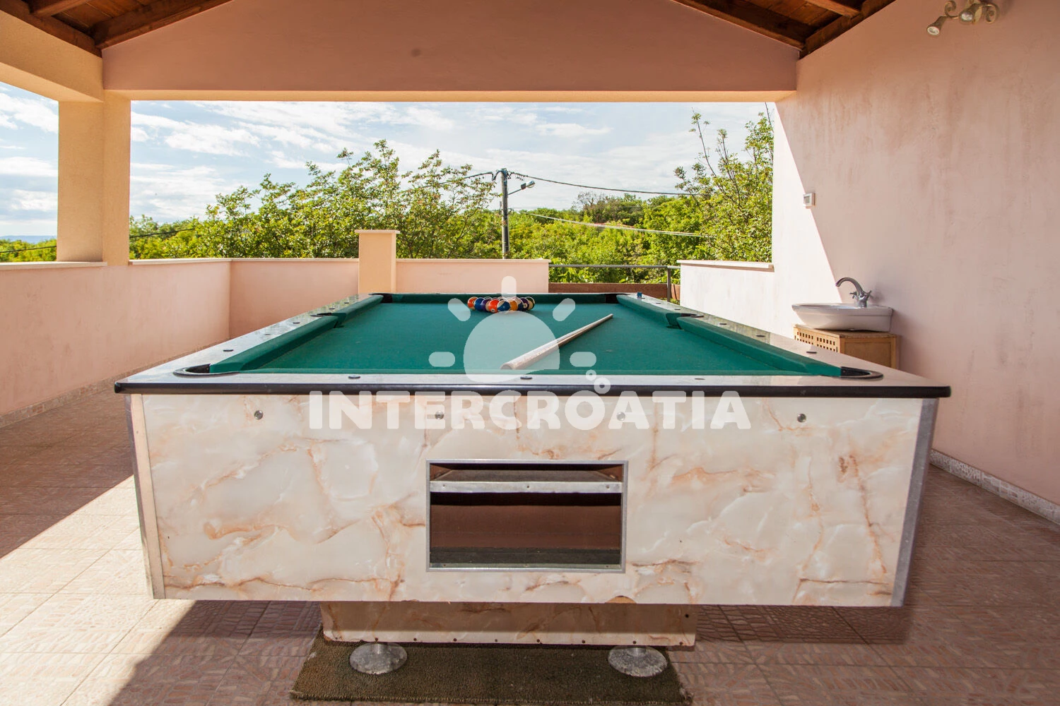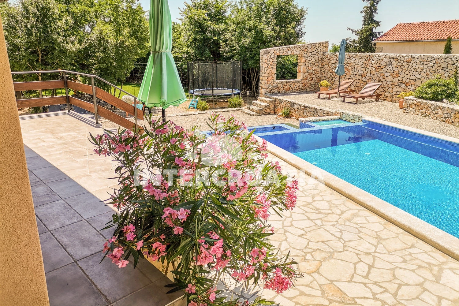 Vila se nachází 5000 m od moře a pláže. Pláž je písčitá, skalnatá, oblázková, větší kamení a betonové desky. Vila disponuje bazénem s lehátky pro ubytované hosty. K dispozici vířivka. U objektu je k dispozici společná zahrada s posezením a grilem. Parkování je před domem.