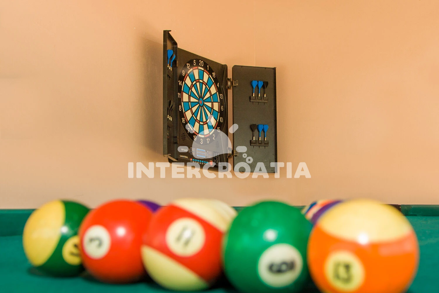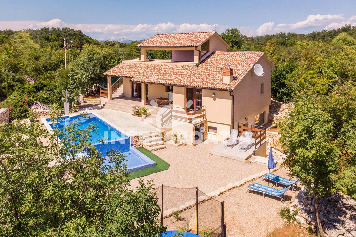 Vzdálenosti: Moře 5 km, pláž 5 km (písčitá, skalnatá, oblázková, větší kamení a betonové desky), supermarket 800 m, centrum 800 m, bar 2 km, restaurace 2 km, muzeum 2 km, čerpací stanice 4 km, směnárna 5 km, veřejná doprava 5 km, půjčovna motorových člunů 5,5 km, půjčovna kol 5,5 km, lékárna 5,5 km, diskotéka 5,5 km, ambulance 5,5 km, pošta 6 km, potápění 6 km, banka 6 km, mini golf 6 km, tenisové kurty 10 km, trajekt (Valbiska (Krk)) 12 km, marina 15 km, letiště (Rijeka) 20 km,