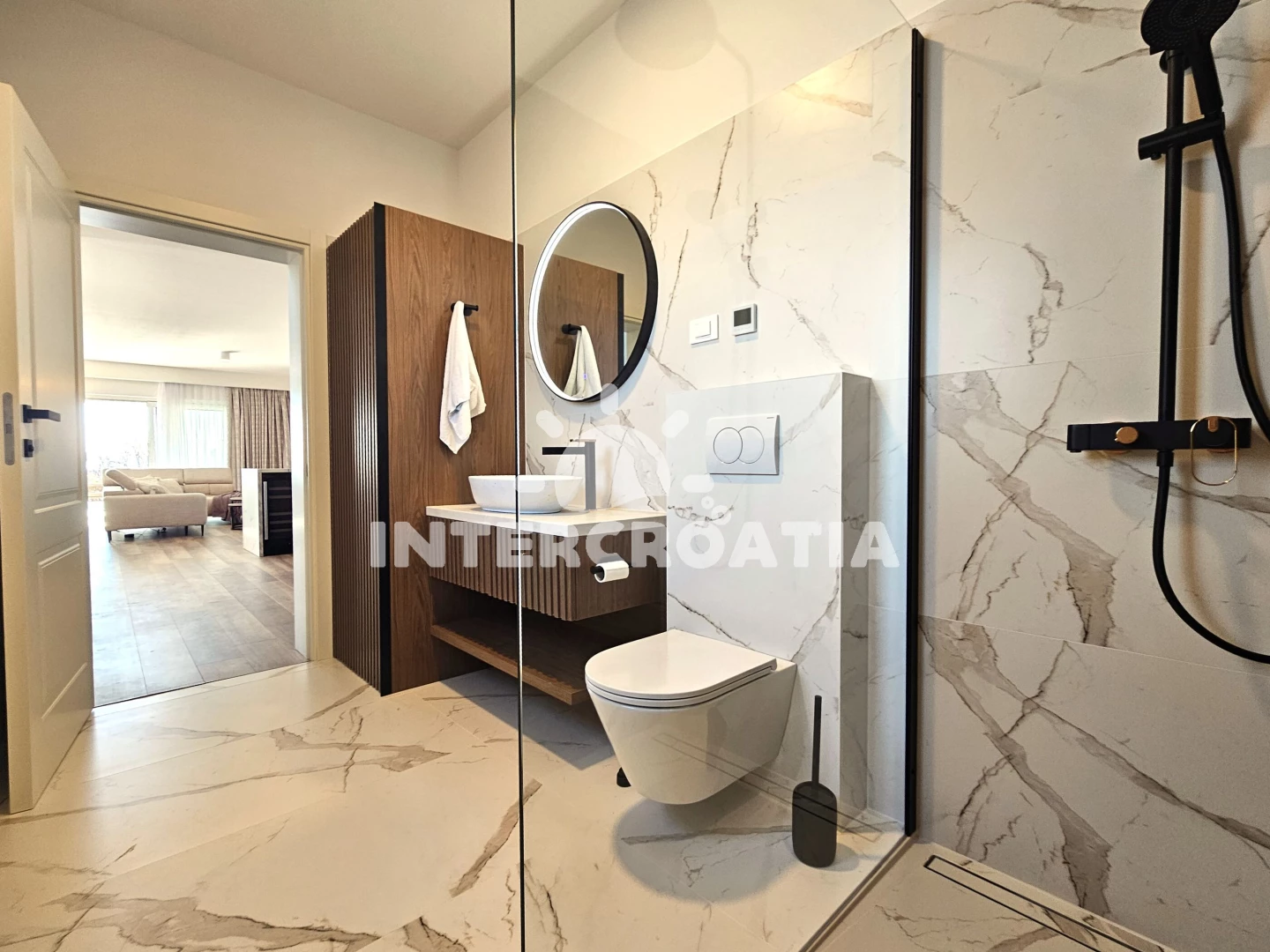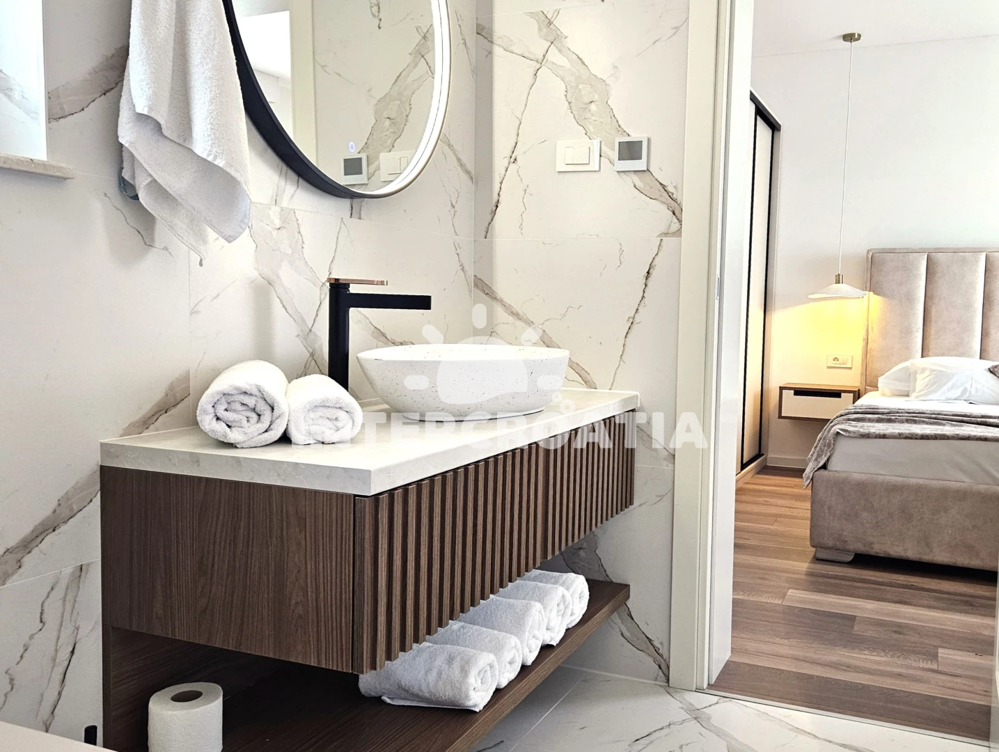 Vila (160 m2). Nachází se ve dvou patrech objektu. Vila má 3 ložnice a je vhodná pro až 6 osob. Kuchyňská linka je vybavena varnou deskou, troubou, toustovačem, kávovarem, myčkou na nádobí, mikrovlnnou troubou, rychlovarnou konvicí, nádobím, lednicí, mrazákem. K dispozici sejf. První ložnice s dvoulůžkem. Druhá ložnice s dvoulůžkem. Třetí ložnice s dvoulůžkem. První koupelna se sprchovým koutem, umyvadlem, WC. Druhá koupelna se sprchovým koutem, umyvadlem, WC. Třetí koupelna se sprchovým koutem, umyvadlem, WC. Čtvrtá koupelna se sprchovým koutem, umyvadlem, WC.