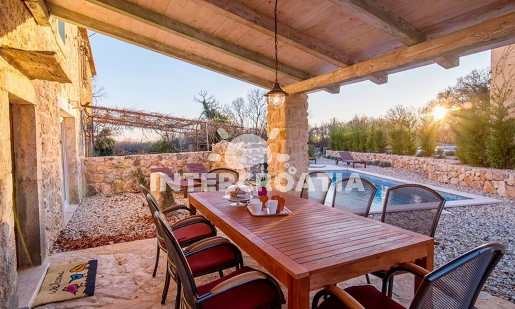 Vila se nachází 5000 m od moře a pláže. Pláž je písečná. Vila disponuje bazénem s lehátky pro ubytované hosty. U objektu je k dispozici společná zahrada s posezením a grilem. Parkování je před domem.