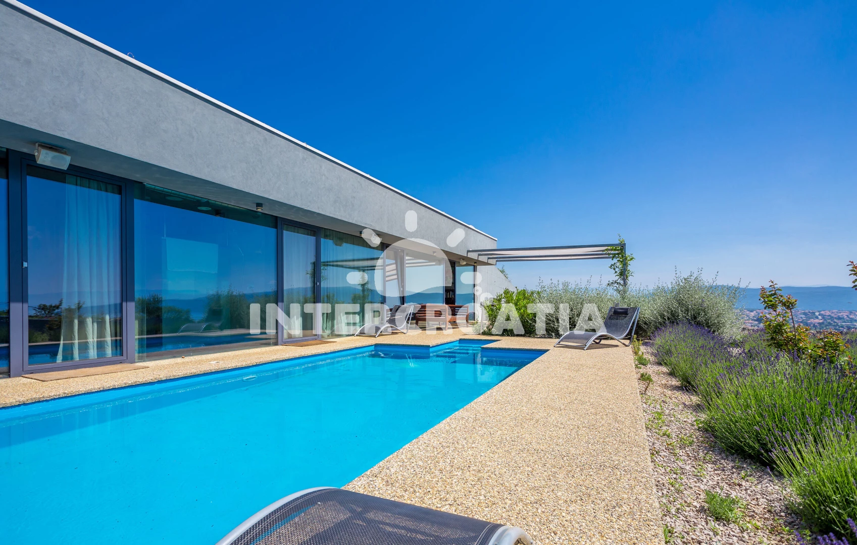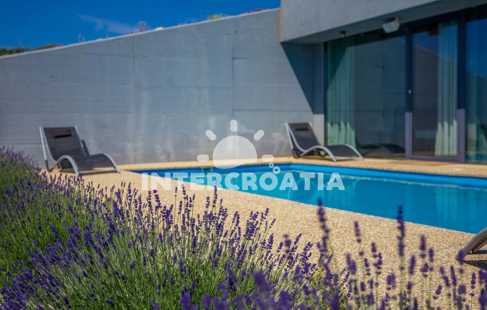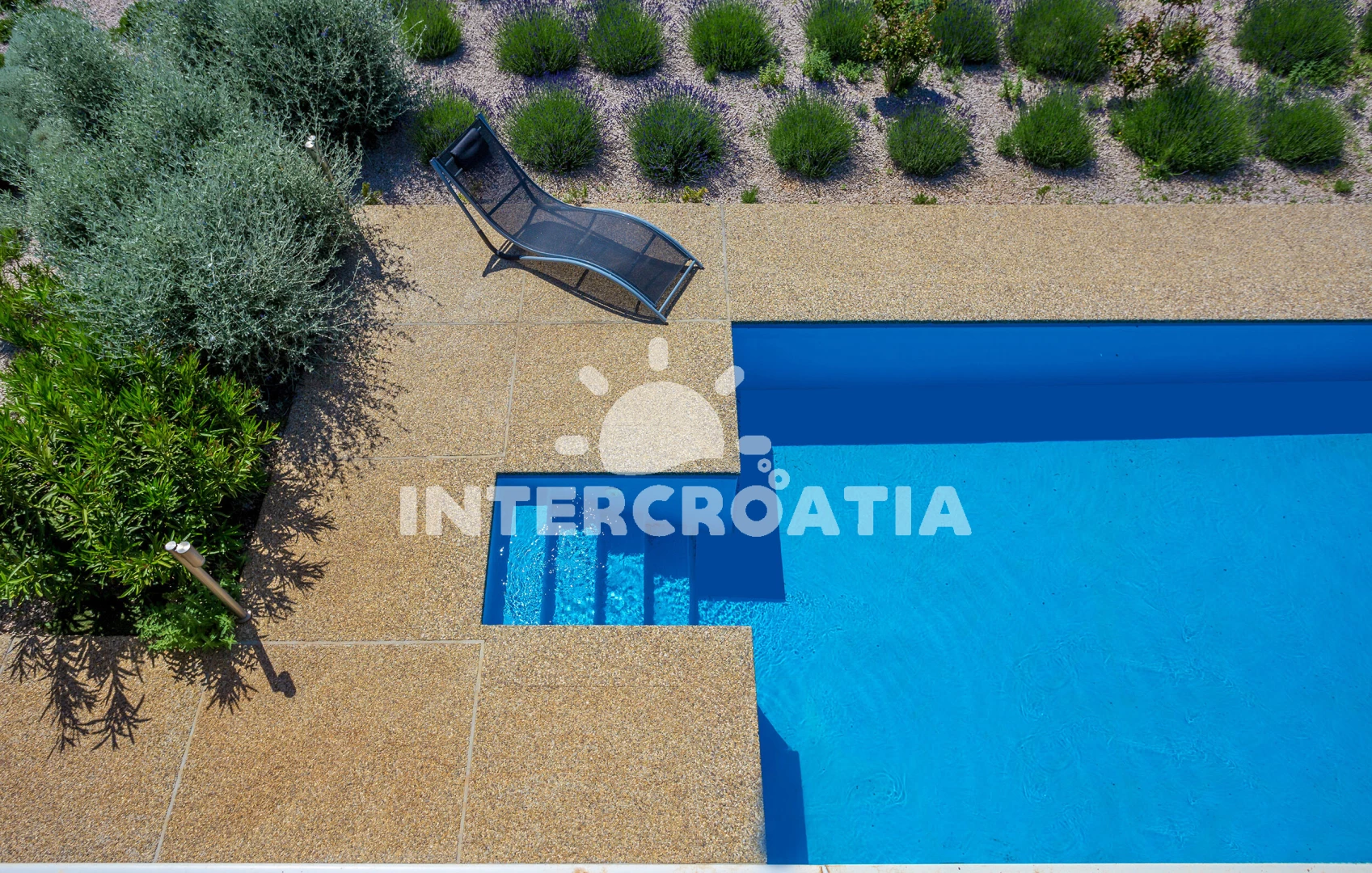 Vila se nachází 1000 m od moře a pláže. Pláž je skalnatá, oblázková a větší kamení. Vila disponuje bazénem s lehátky pro ubytované hosty. U objektu je k dispozici společná zahrada s posezením a grilem.