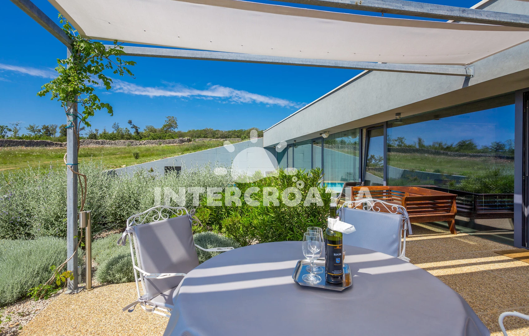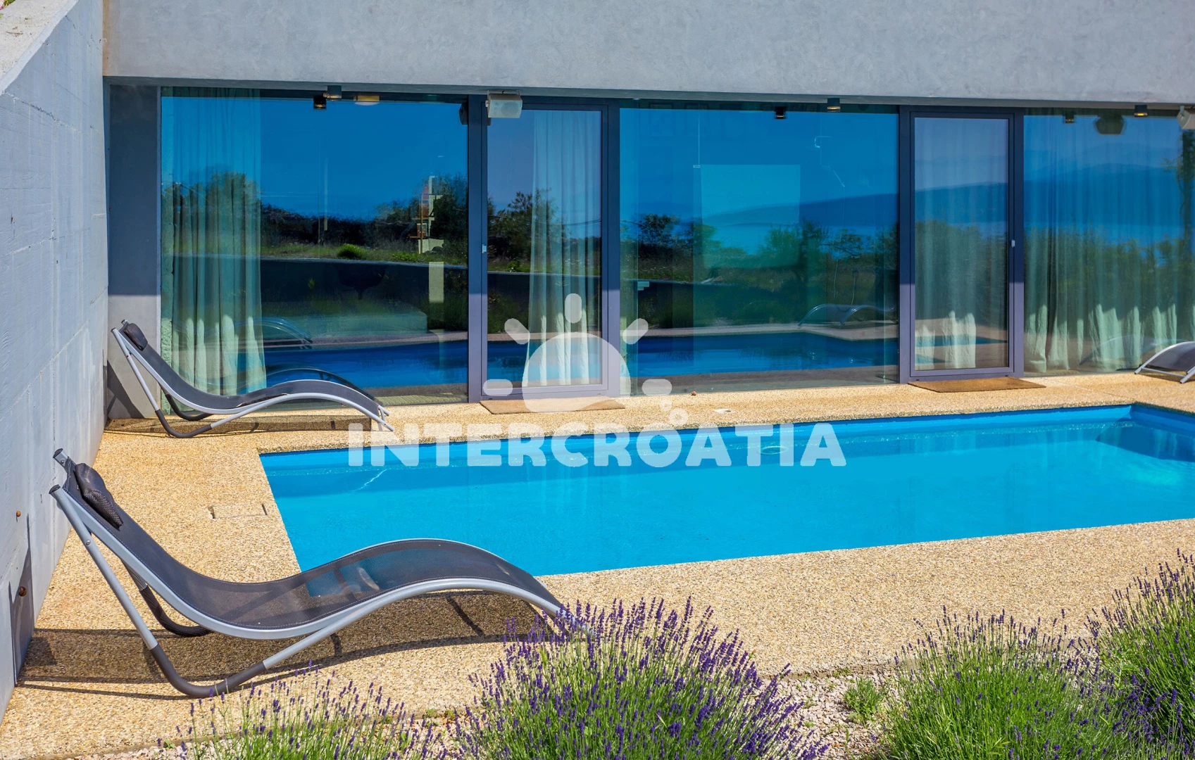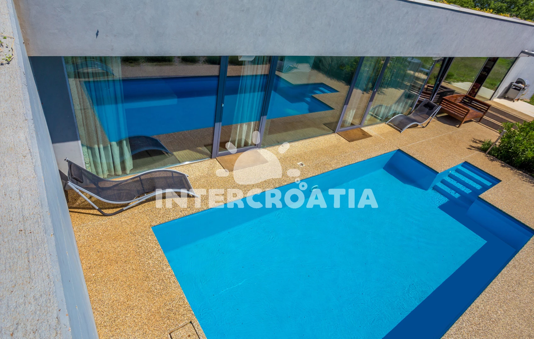 Vila se nachází 1000 m od moře a pláže. Pláž je skalnatá, oblázková a větší kamení. Vila disponuje bazénem s lehátky pro ubytované hosty. U objektu je k dispozici společná zahrada s posezením a grilem.