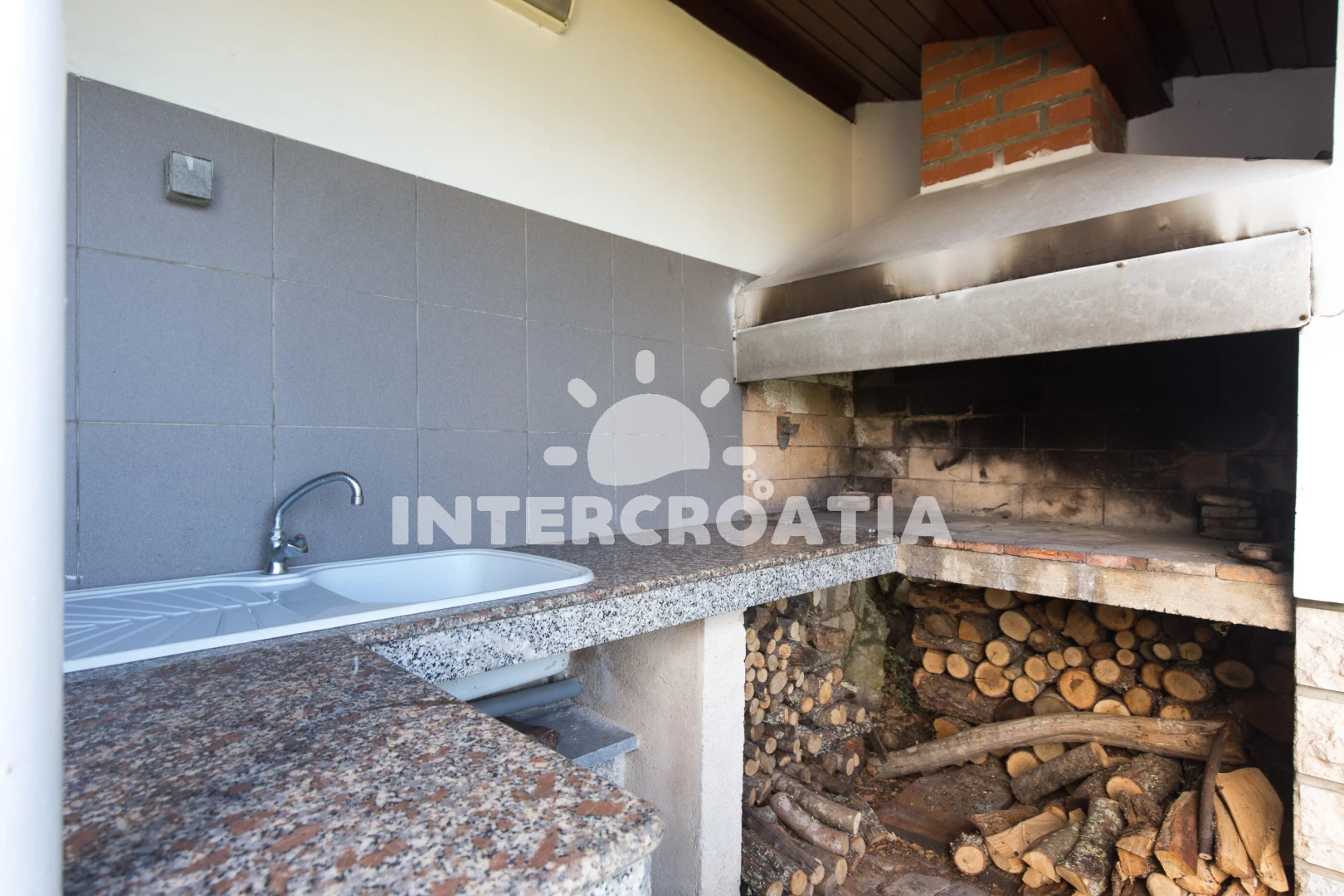 Vila se nachází 5 m od moře a pláže. Pláž je oblázková a větší kamení. Vila disponuje bazénem s lehátky pro ubytované hosty. U objektu je k dispozici společná zahrada s posezením a grilem. Parkování je před domem.
