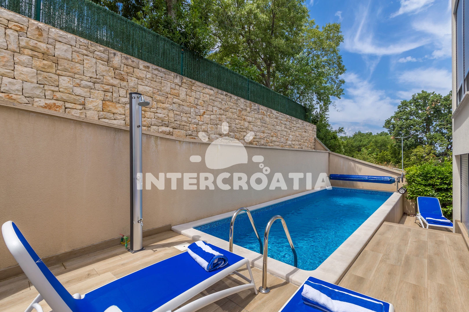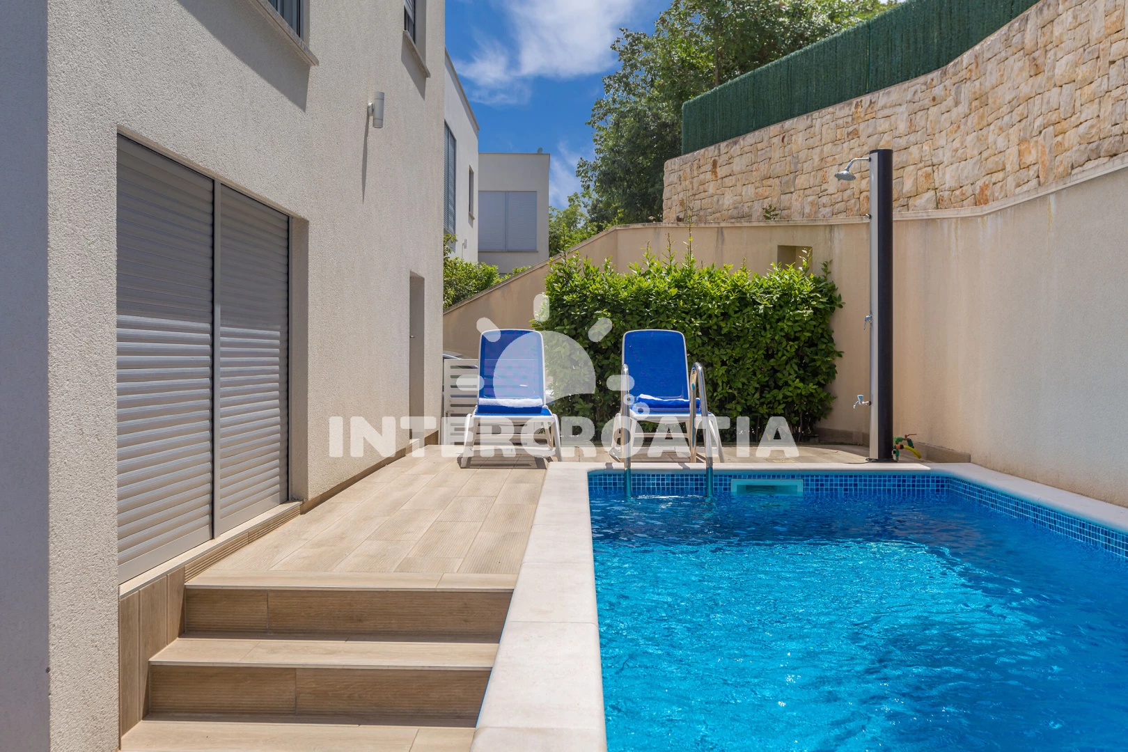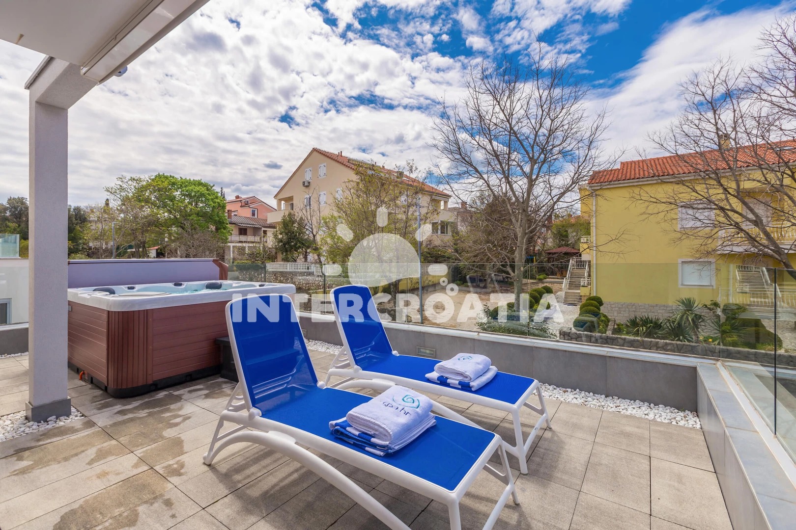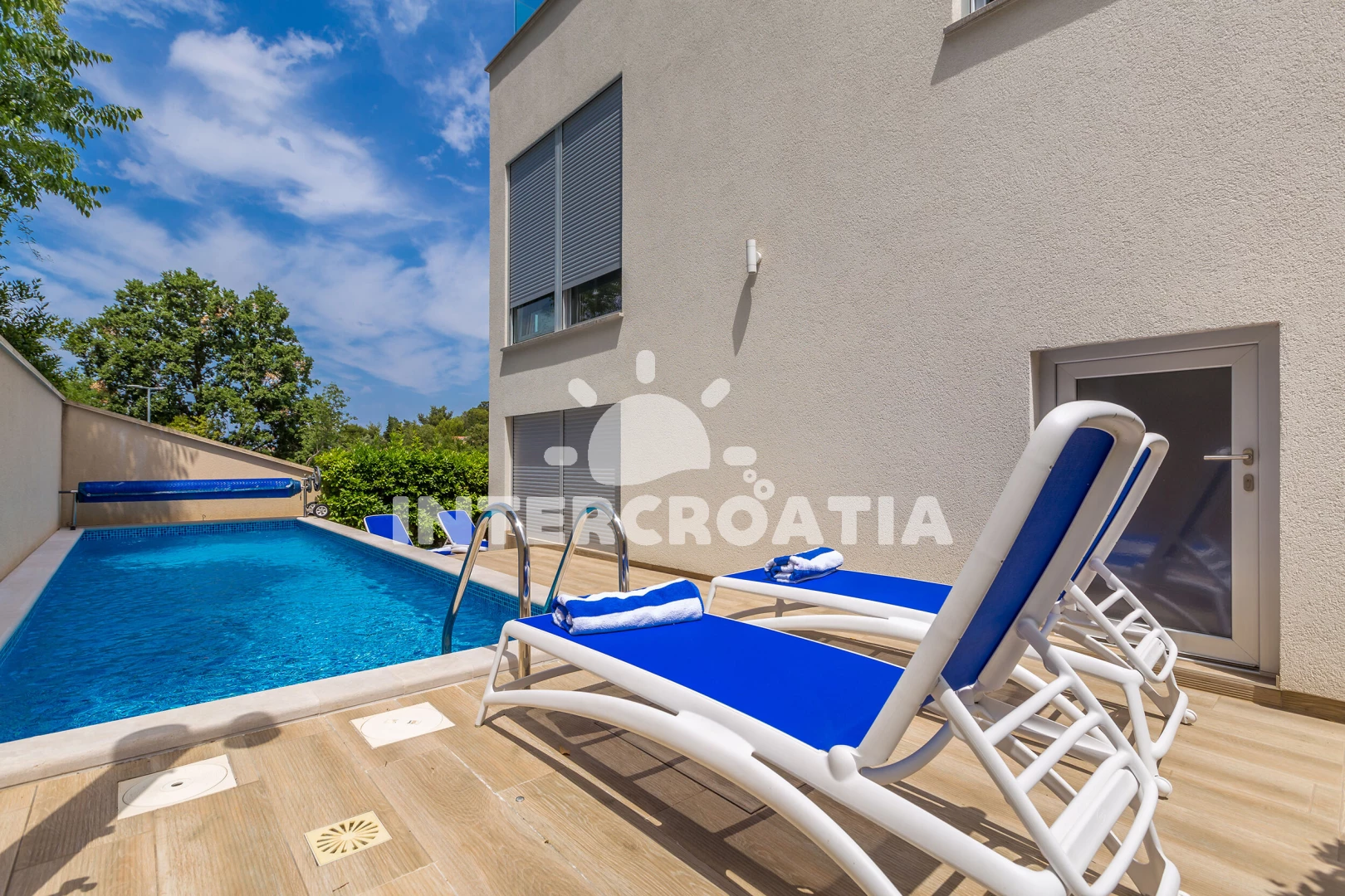 Vila se nachází 300 m od moře a pláže. Pláž je oblázková. Vila disponuje bazénem s lehátky pro ubytované hosty. K dispozici vířivka. U objektu je k dispozici společná zahrada s posezením a grilem. Parkování je před domem.