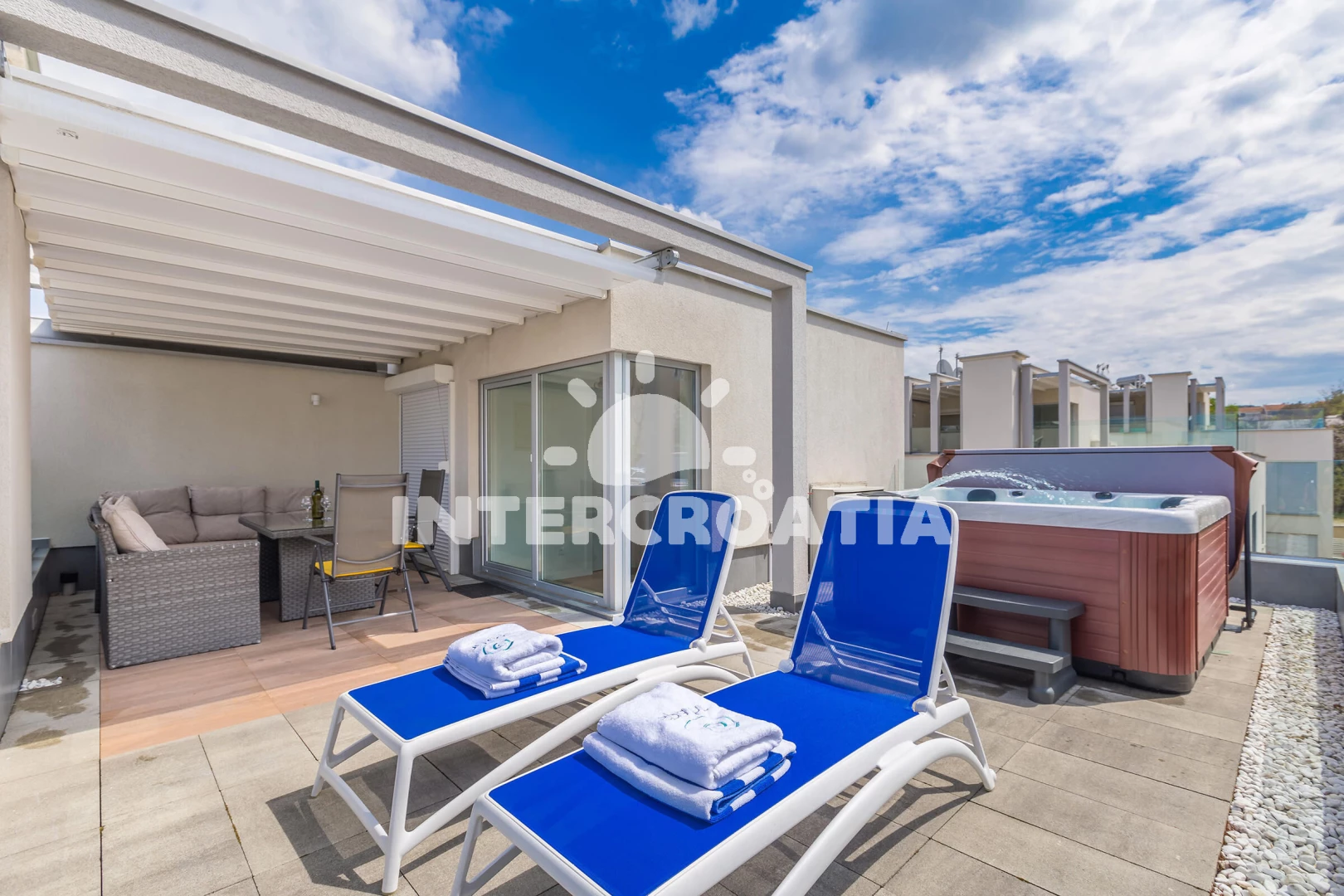 Vila (120 m2) s balkonem, s terasou. Vila má 1 ložnici a je vhodná pro až 8 osob. Kuchyňská linka je vybavena varnou deskou, troubou, toustovačem, kávovarem, myčkou na nádobí, mikrovlnnou troubou, rychlovarnou konvicí, nádobím, lednicí, mrazákem. V obývací místnosti je rozložitelná pohovka (extra lůžko pro 2 osoby). K dispozici televize se satelitním programem, sejf. První koupelna se sprchovým koutem, umyvadlem, WC. Druhá koupelna se sprchovým koutem, umyvadlem, WC. Třetí koupelna s vanou, umyvadlem, WC.