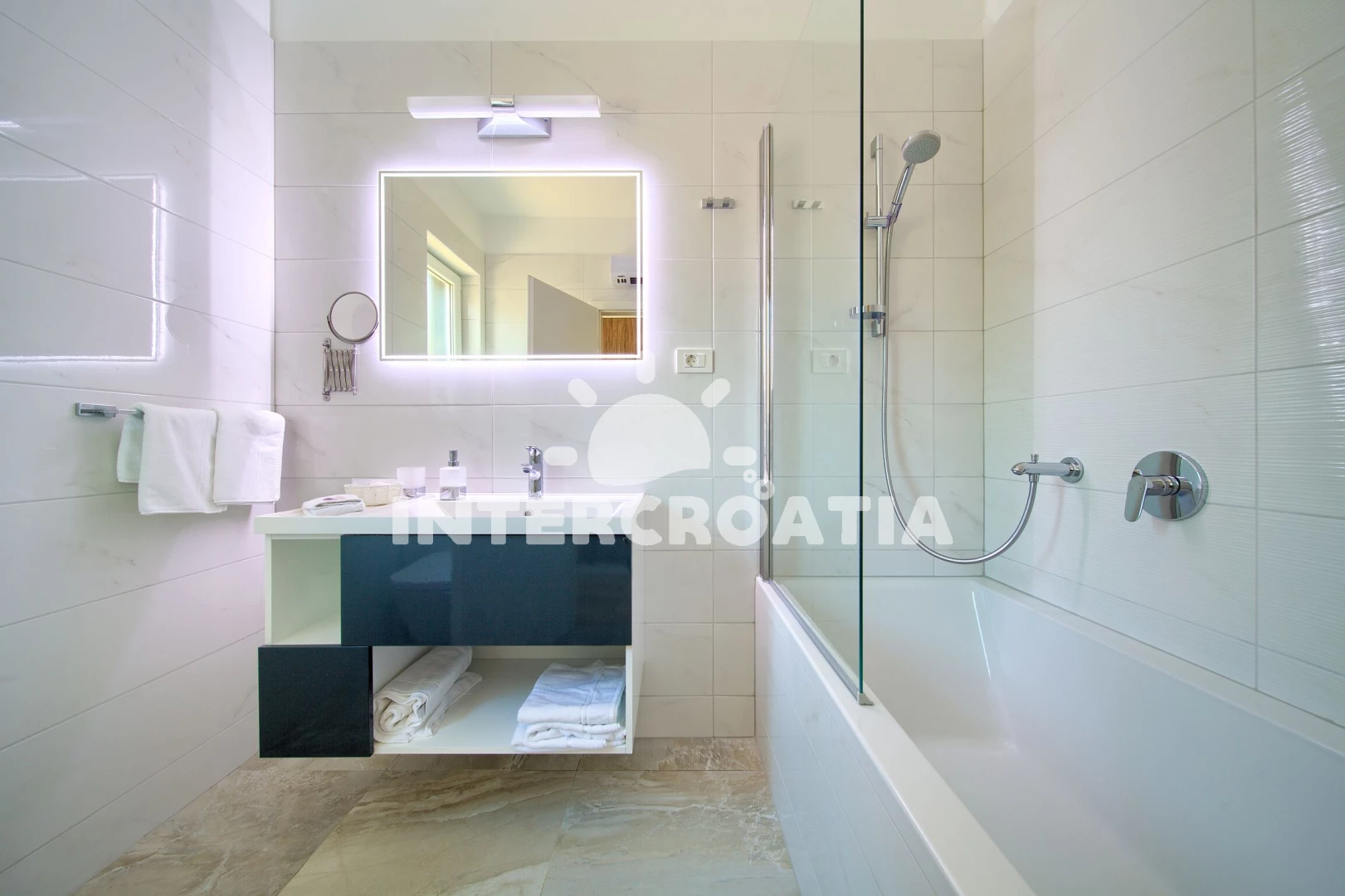 Vzdálenosti: Moře 2 km, pláž 2 km (oblázková a větší kamení), supermarket 300 m, pošta 6 km, muzeum 6 km, banka 6 km, lékárna 6 km, čerpací stanice 6 km, centrum 6 km, ambulance 6 km, bar 6 km, restaurace 6 km, směnárna 6 km, letiště (Rijeka) 16 km,