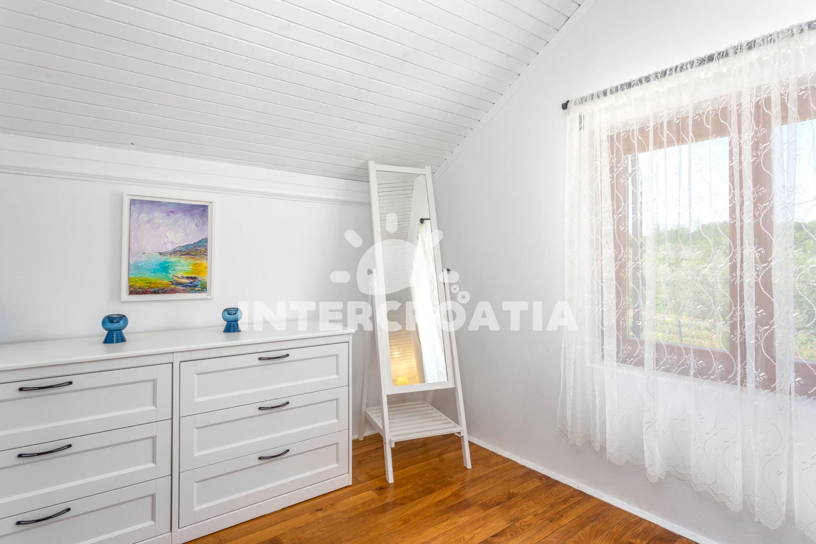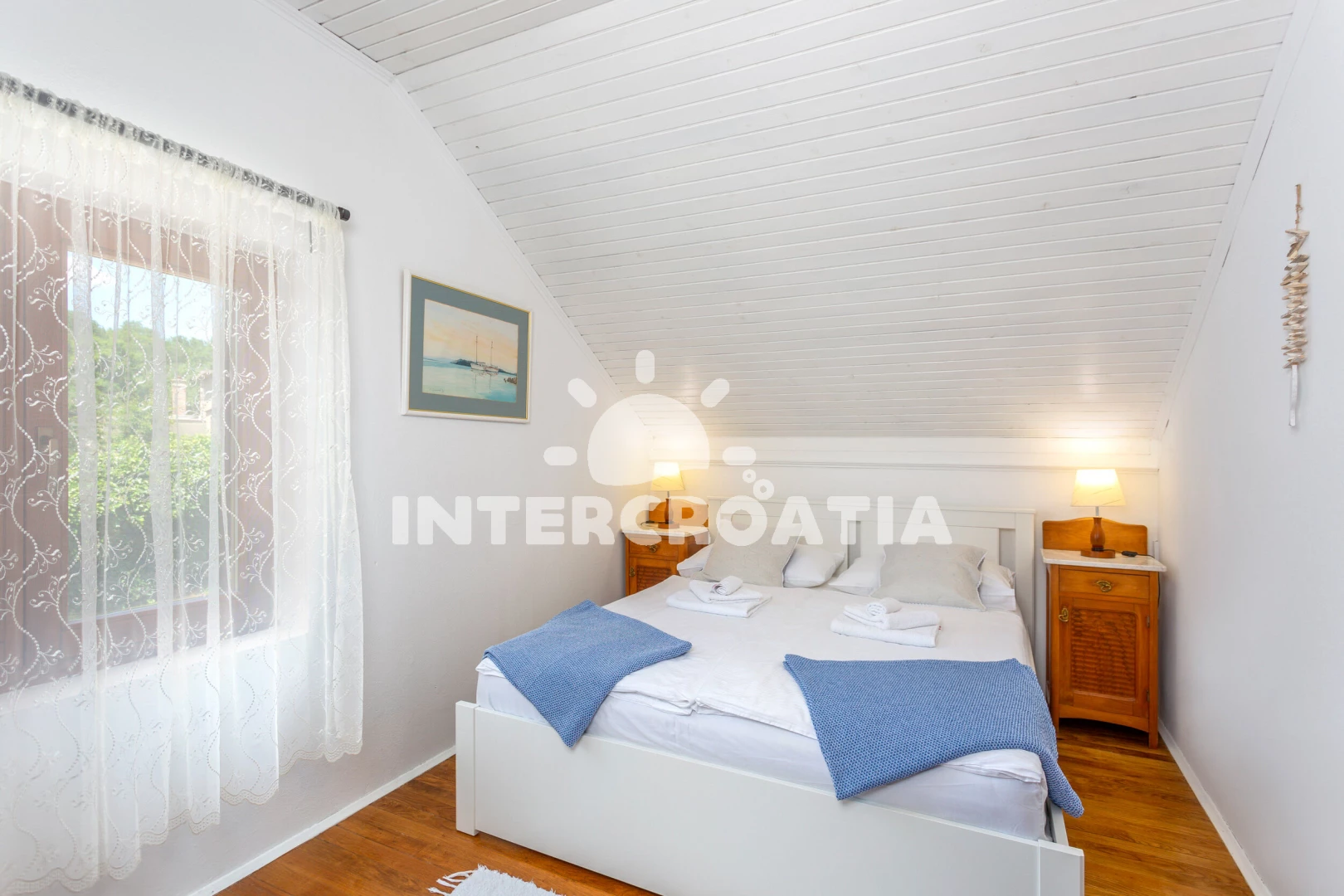 Vila (200 m2). Vila má 4 ložnice a je vhodná pro až 8 osob. Kuchyňská linka je vybavena varnou deskou, toustovačem, troubou, kávovarem, myčkou na nádobí, mikrovlnnou troubou, rychlovarnou konvicí, nádobím, lednicí, mrazákem. K dispozici televize, žehlička. První ložnice s dvoulůžkem. Druhá ložnice s dvoulůžkem. Třetí ložnice se 2 jednolůžky. Čtvrtá ložnice se 2 jednolůžky. První koupelna se sprchovým koutem, umyvadlem, fénem a WC. Druhá koupelna se sprchovým koutem, umyvadlem, fénem a WC.