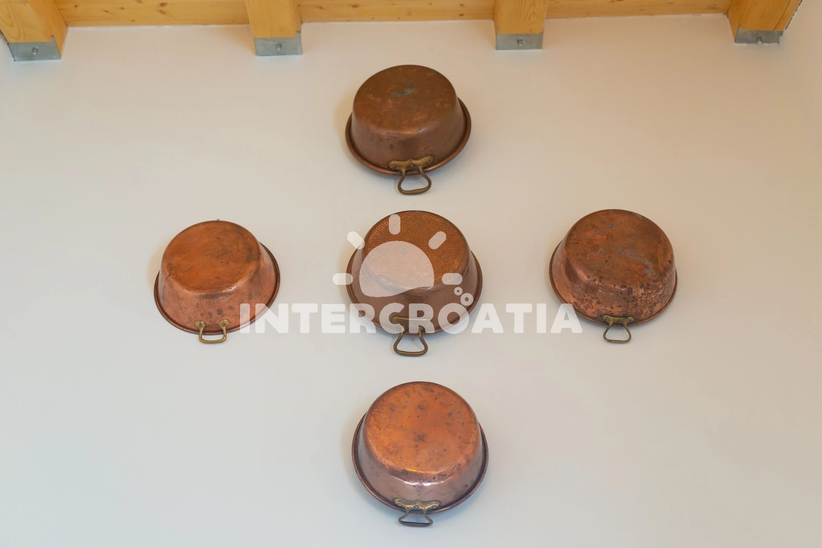 Vila (80 m2). Nachází se v přízemí objektu. Kuchyňská linka je vybavena varnou deskou, kávovarem, toustovačem, troubou, myčkou na nádobí, nádobím, lednicí, mrazákem. V obývací místnosti je rozložitelná pohovka (extra lůžko pro 2 osoby). K dispozici televize se satelitním programem. Koupelna s vanou, umyvadlem, WC.