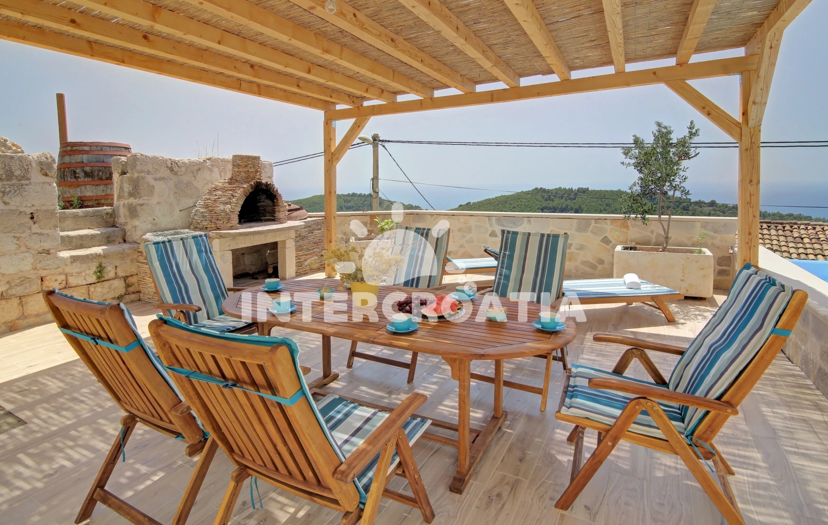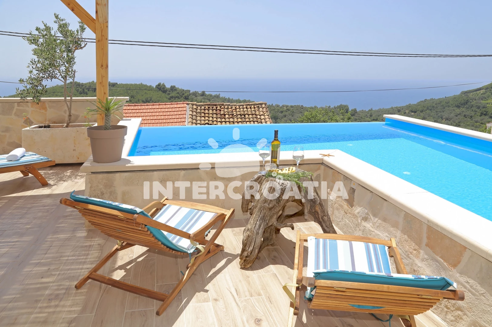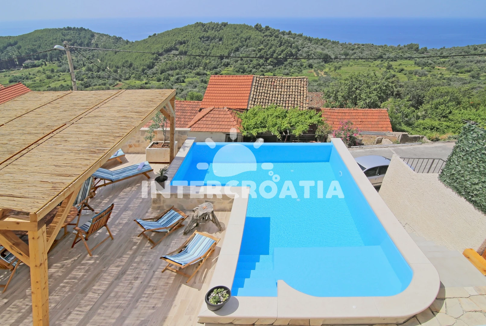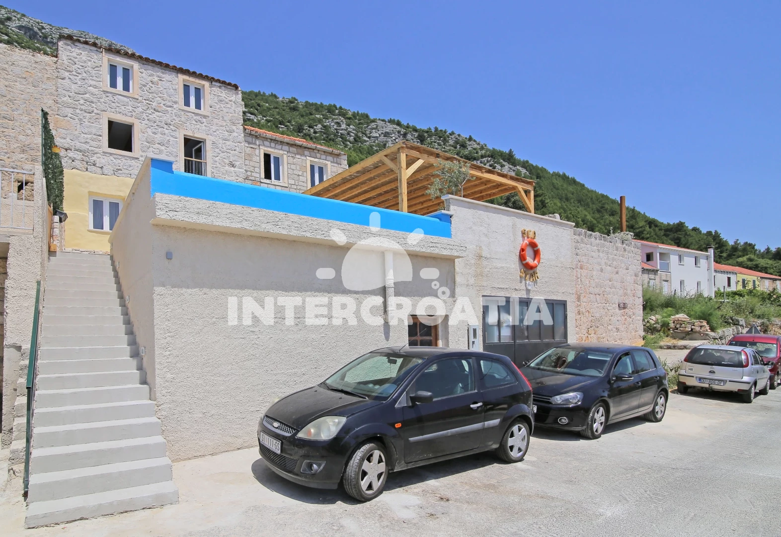 Vila se nachází 1430 m od moře a pláže. Pláž je skály. Vila disponuje bazénem s lehátky pro ubytované hosty. U objektu je k dispozici společná zahrada s posezením a grilem. Parkování je před domem.