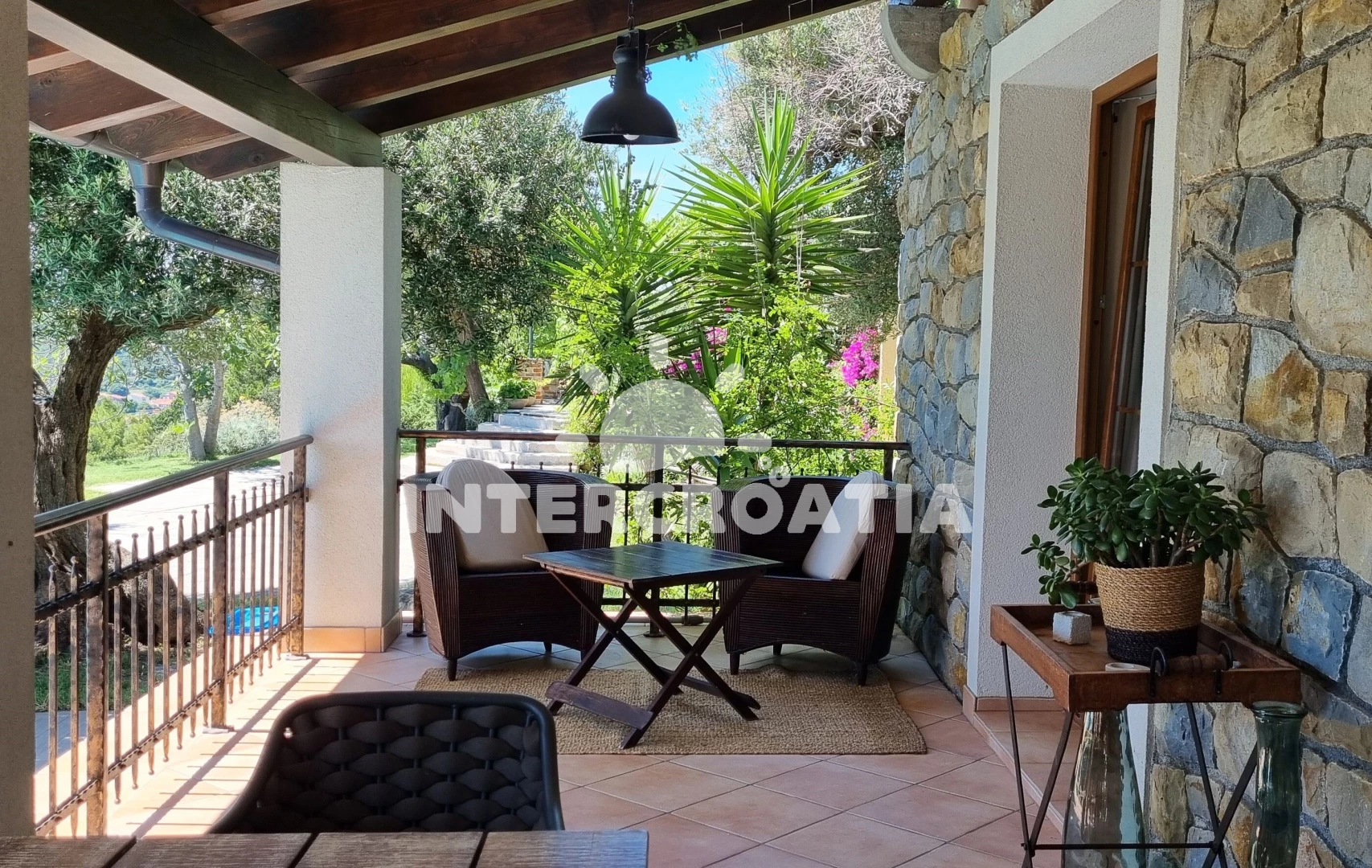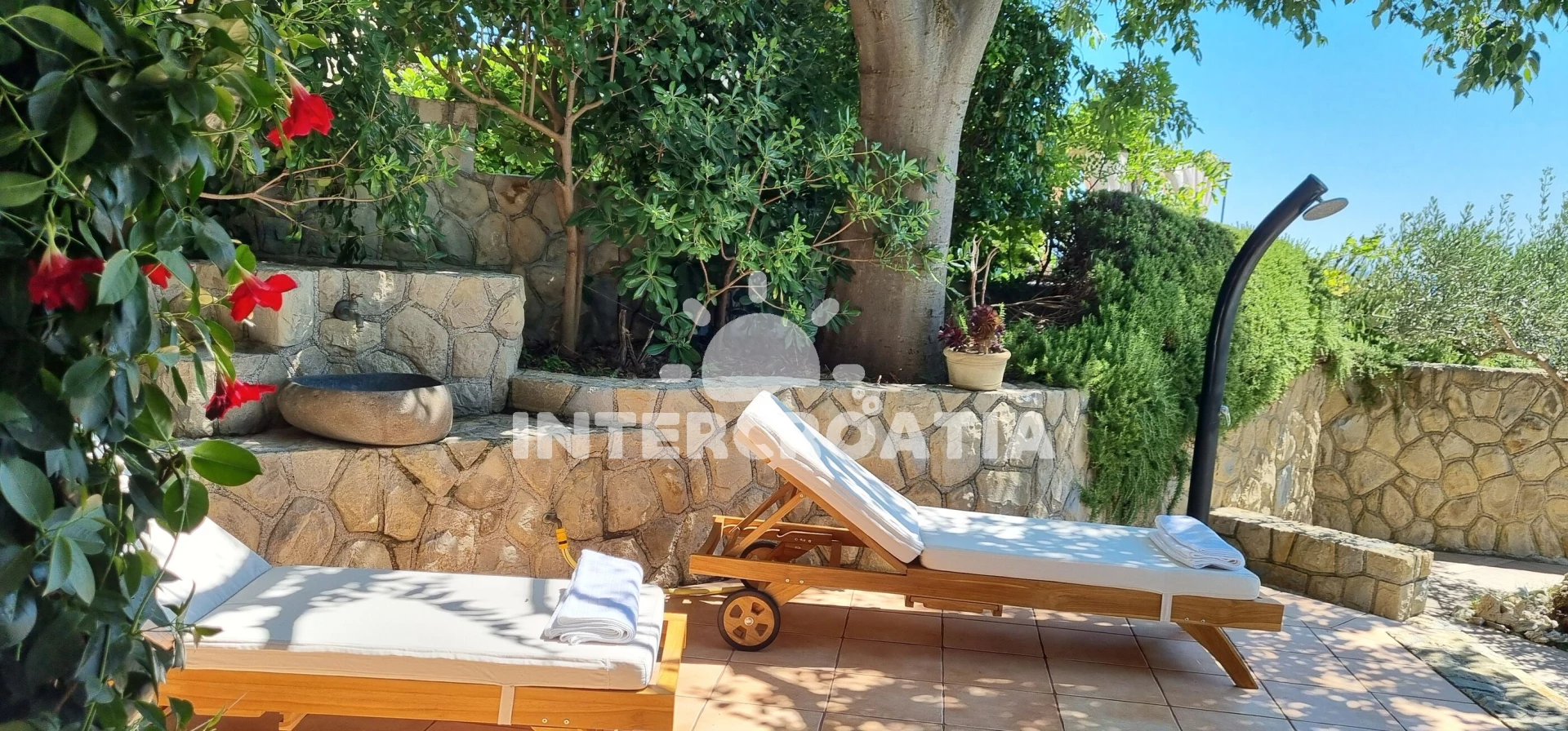 Vila se nachází 1500 m od moře a pláže. Pláž je oblázková a betonové desky. Vila disponuje bazénem s lehátky pro ubytované hosty. U objektu je k dispozici společná zahrada s posezením a grilem.
