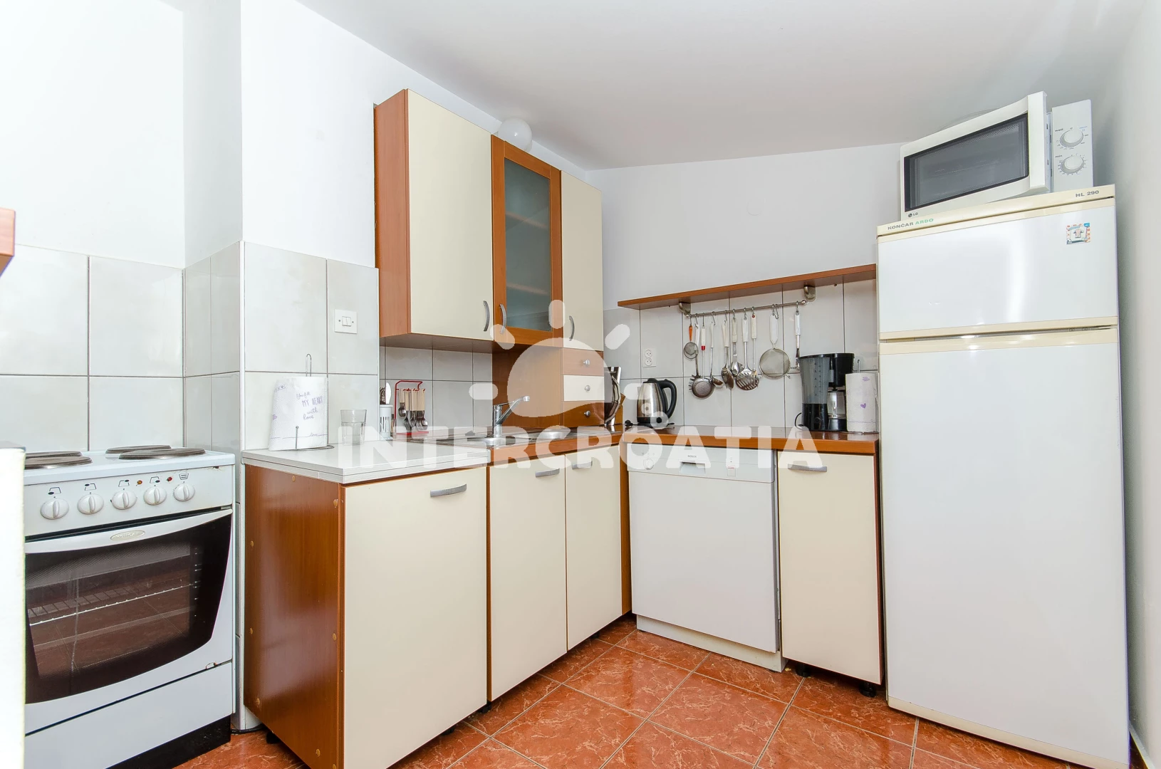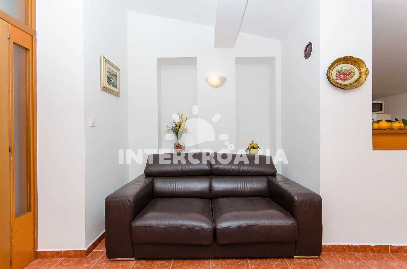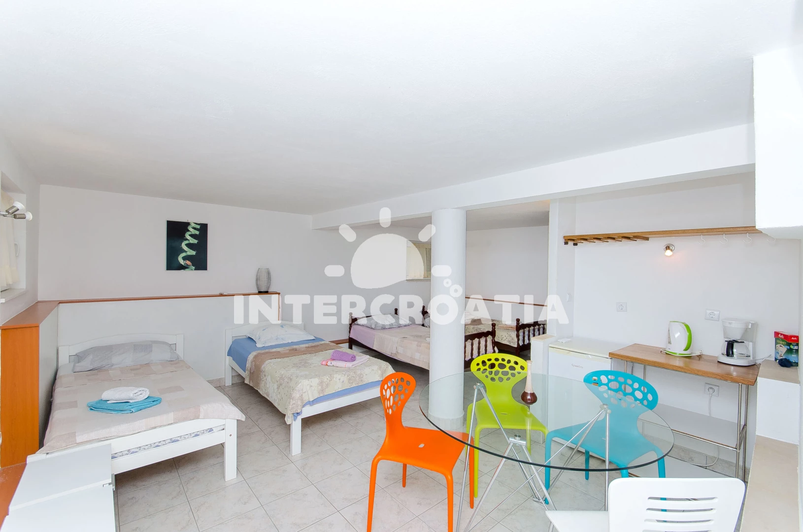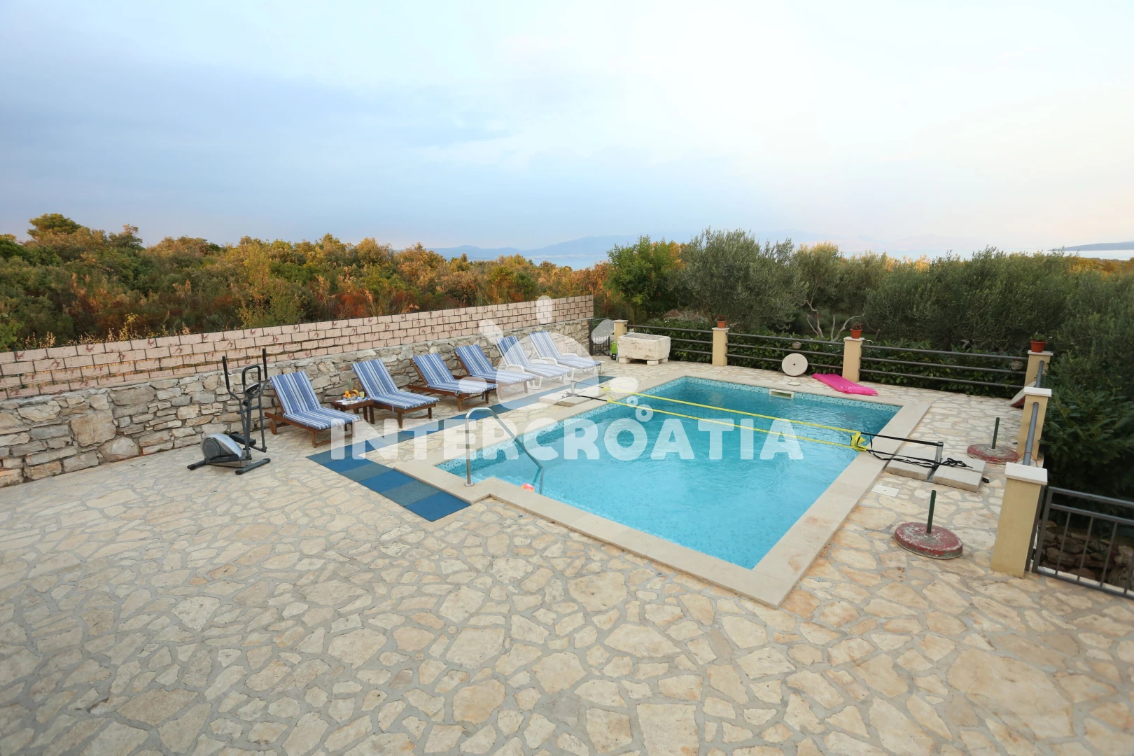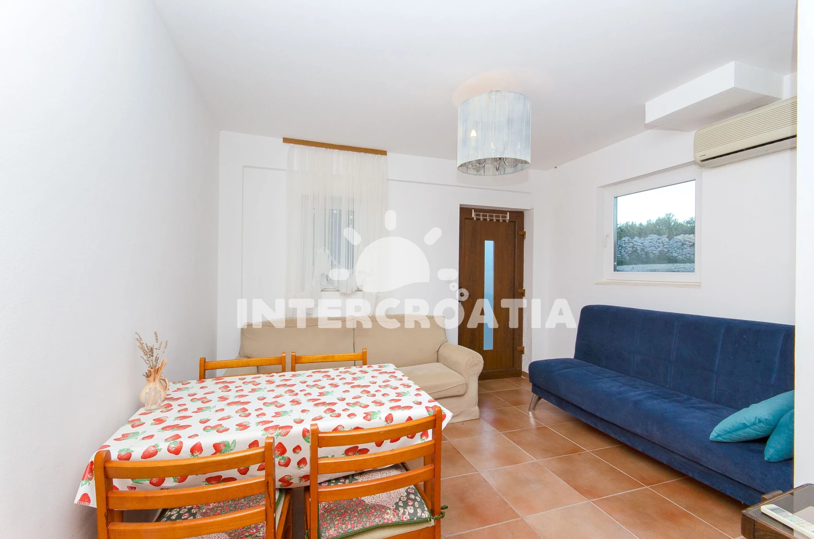 Vzdálenosti: Moře 900 m, pláž 1 km (oblázky), banka 300 m, půjčovna kol 300 m, restaurace 300 m, centrum 300 m, pošta 300 m, supermarket 300 m, bar 300 m, ambulance 300 m, muzeum 300 m, směnárna 300 m, veřejná doprava 300 m, lékárna 300 m, čerpací stanice 1 km, půjčovna motorových člunů 1 km, trajekt (Rogač) 1 km, tenisové kurty 8 km,