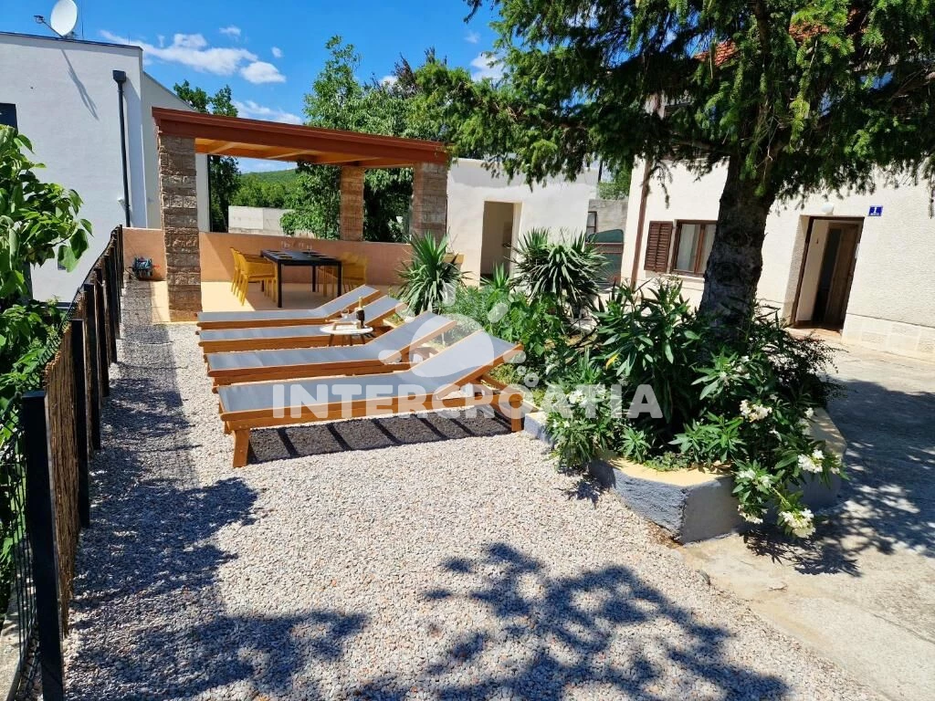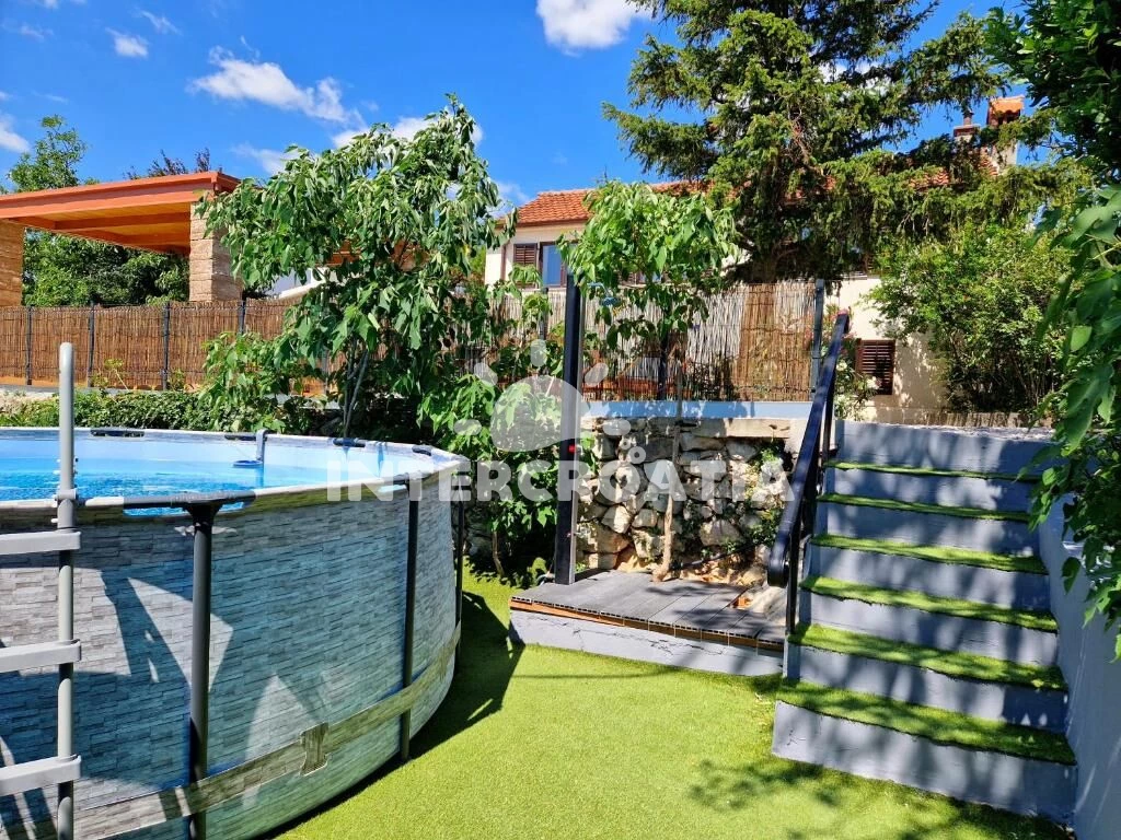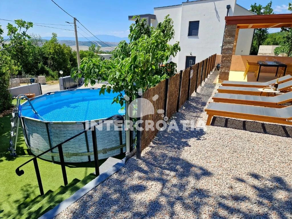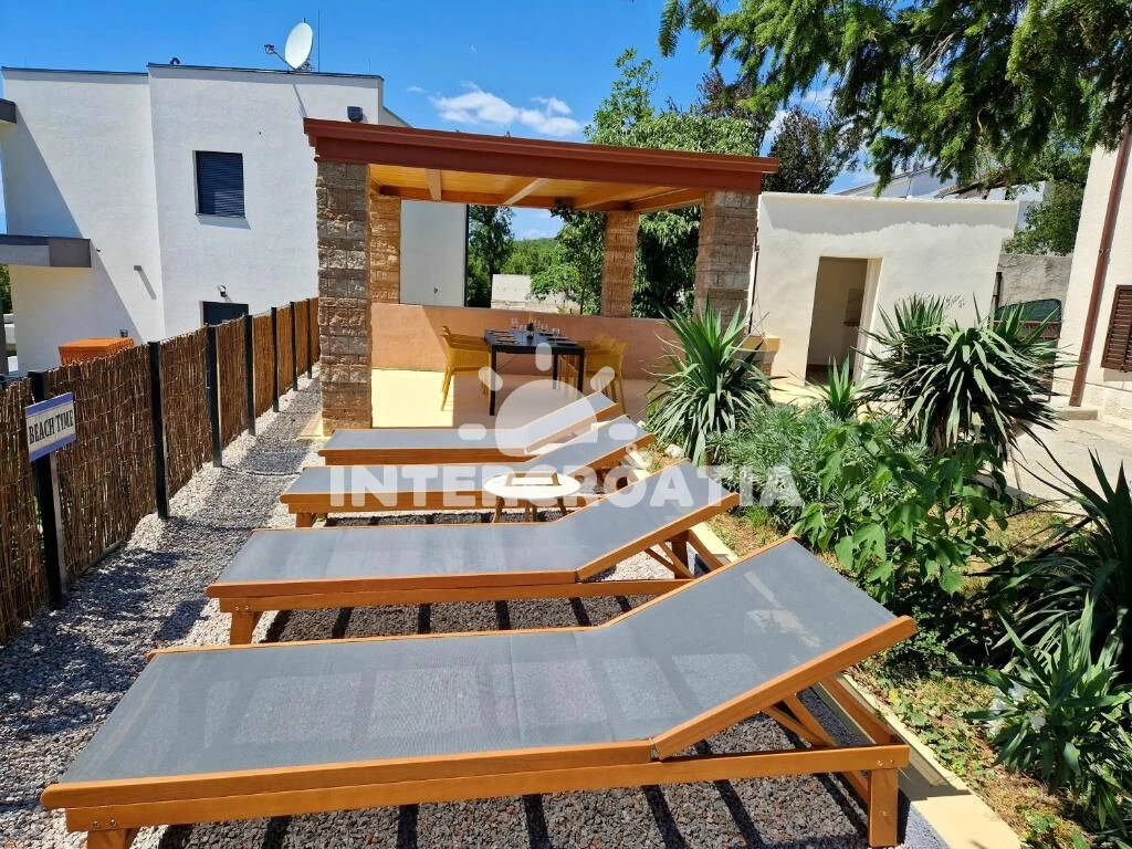 Vila s bazénem a lehátky se nachází 1 km od moře a betonové pláže. Doporučujeme spíše oblázkovou pláž Jadranovo, která se nachází 1,6 km pěší chůzí. Vila má oplocený pozemek se zahradou, bazénem, pergolou s posezením a grilem. U vily je soukromé parkoviště pro automobily.