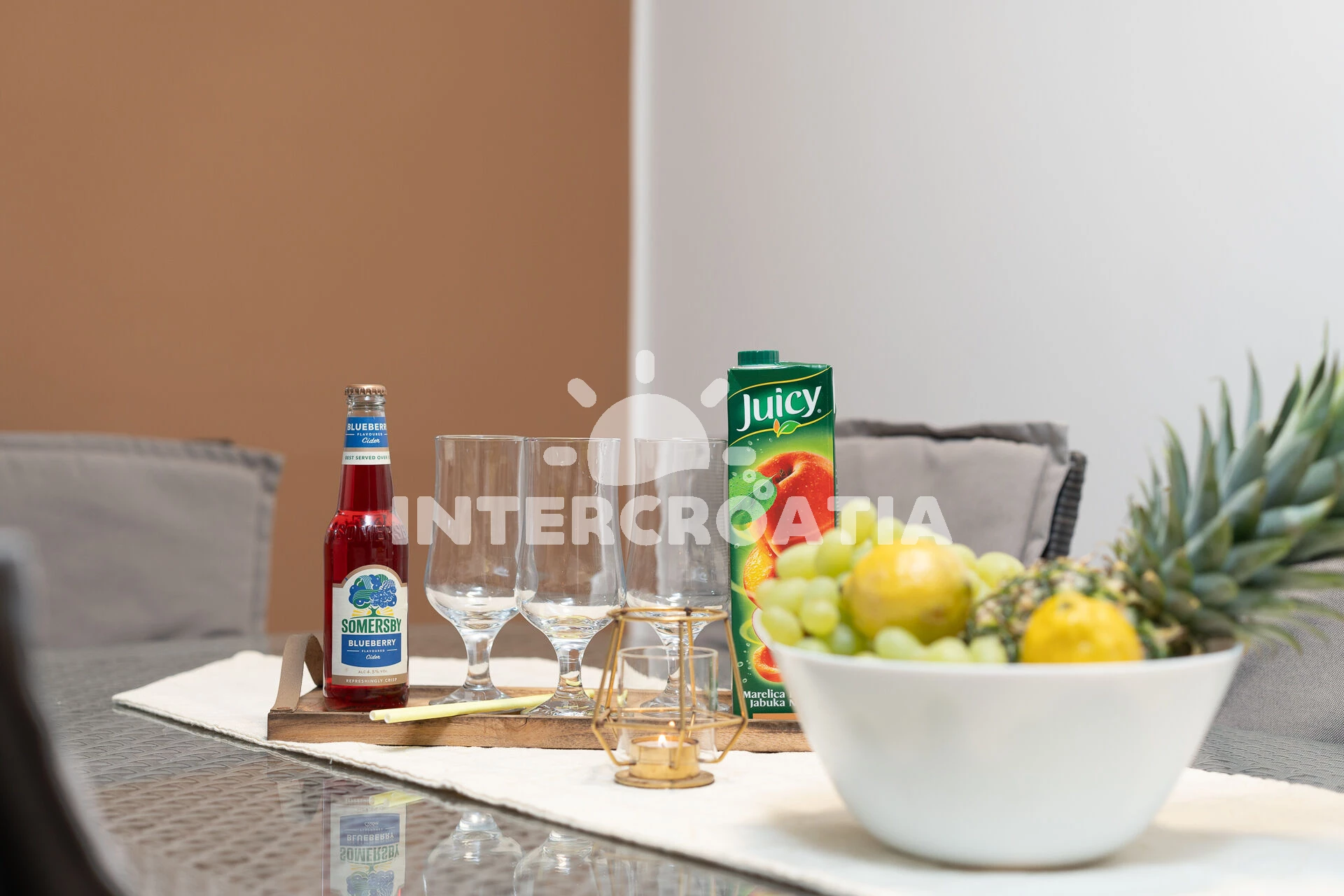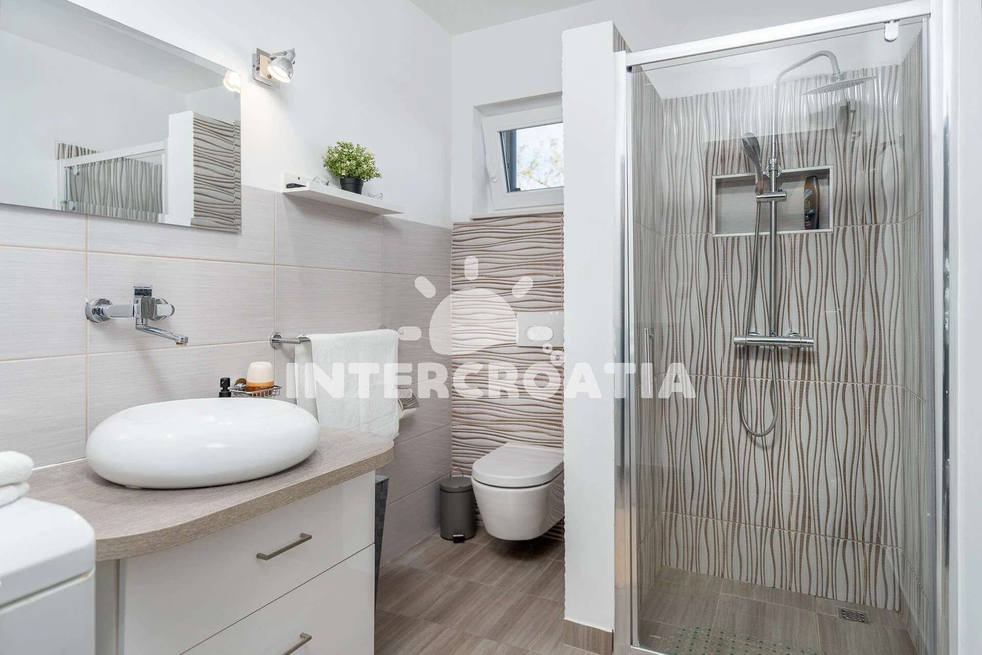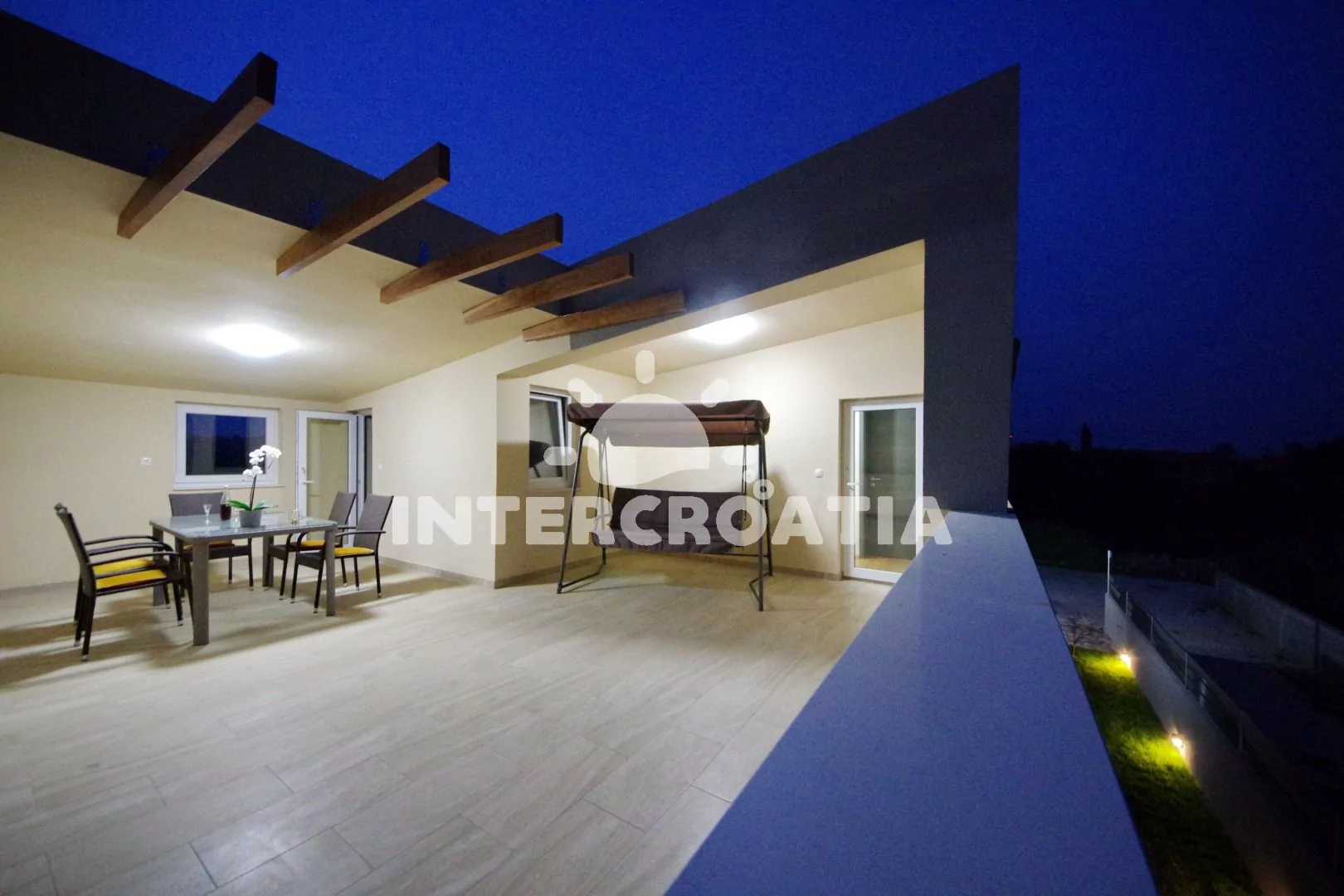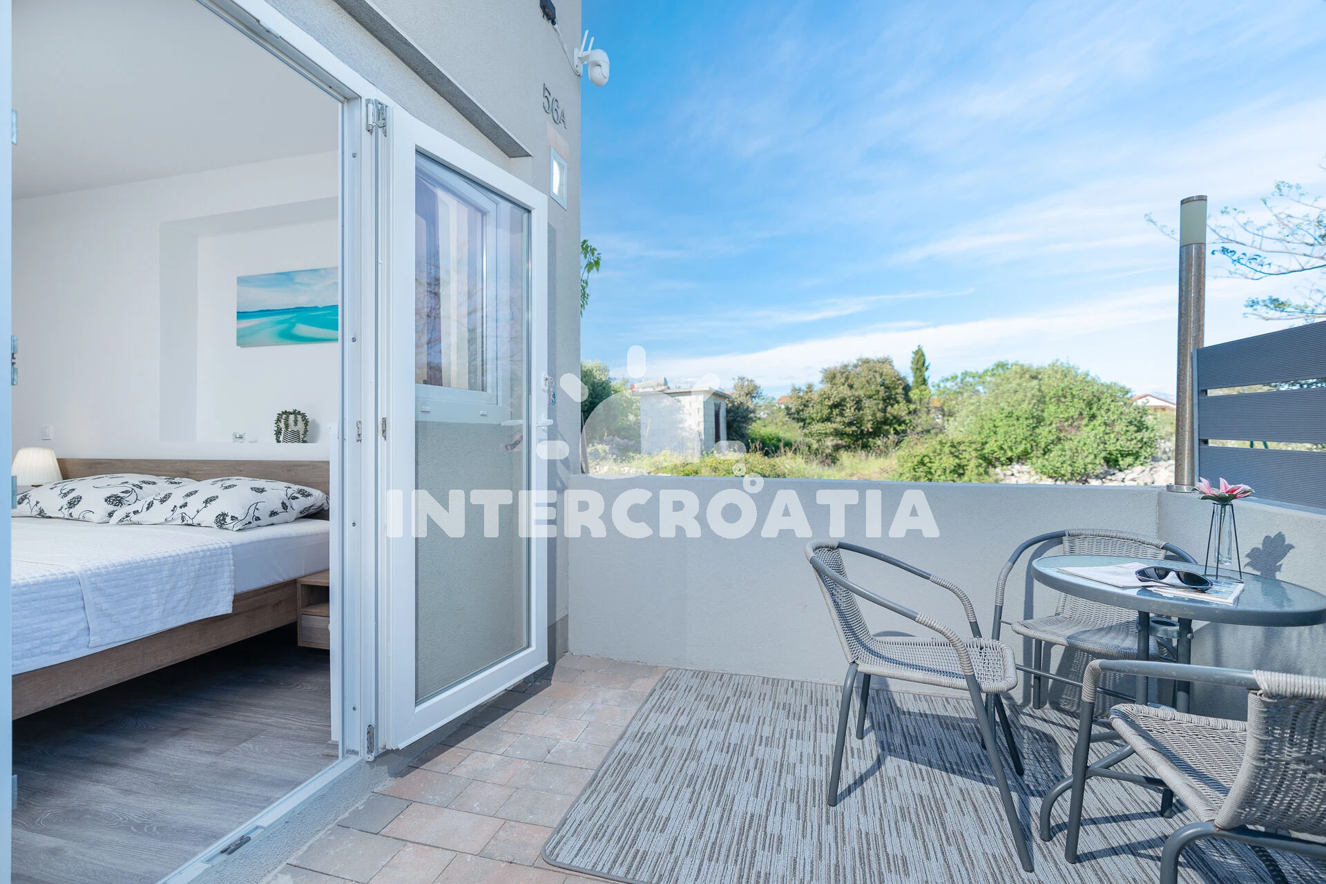 Jedinečně zařízená luxusní vila s vnitřním, vyhřívaným bazénem, terasami s venkovním posezením, lehátky a grilem. Celá vila je oplocená a nabízí dostatek soukromí. Vstup do bazénu vnitřkem vily s možností otevření francouzských oken a vstupem na zahradu. V horním patře prostorná terasa s výhledem na moře. Parkovací místa u vily. K dispozici cyklistická kola, masáže a obchod s vínem.