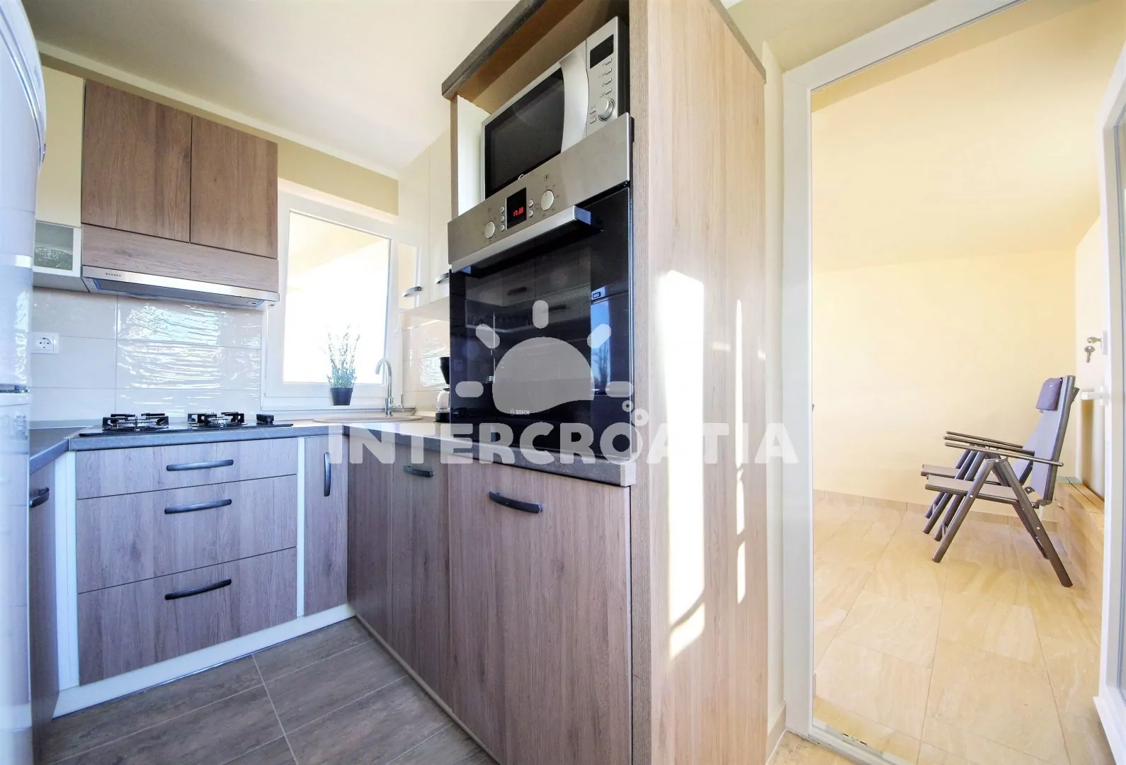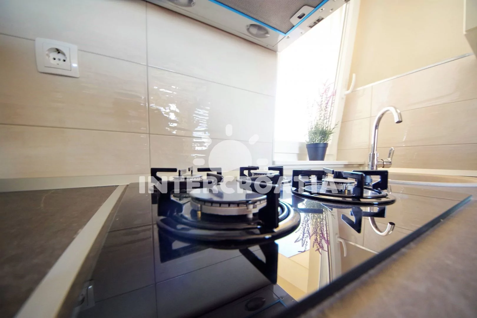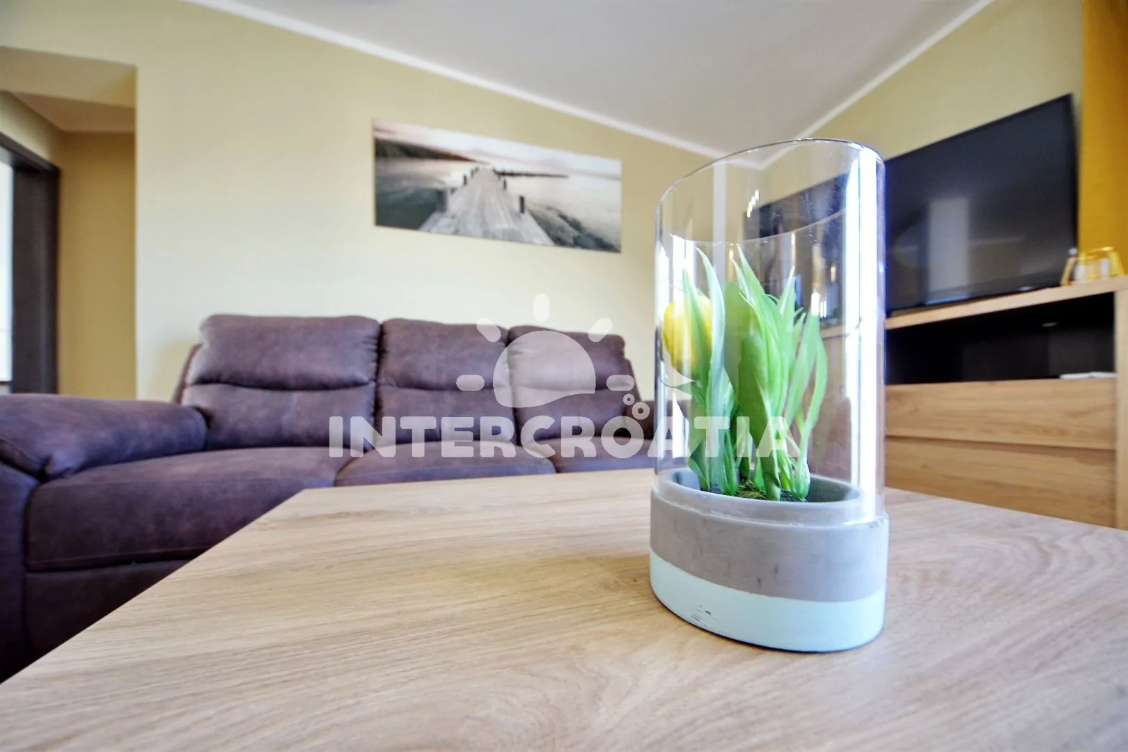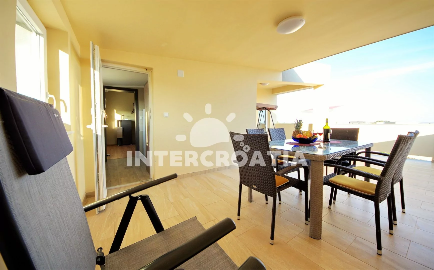Vzdálenosti: Moře a oblázková-písčitá-kamenitá pláž 400 m, centrum, půjčovna cyklistických kol 500 m, vnitřní bazén 20 m, půjčovna motorových člunů 298 m, supermarket 300 m, restaurace, bar, směnárna 400 m, lékárna, ambulance 600 m, veřejná doprava, pošta 700 m, čerpací stanice 2,5 km, muzeum 10 km, trajekt 20 km, letiště 25 km.