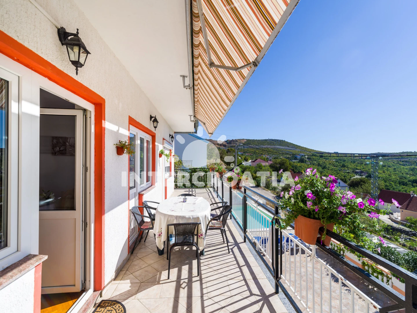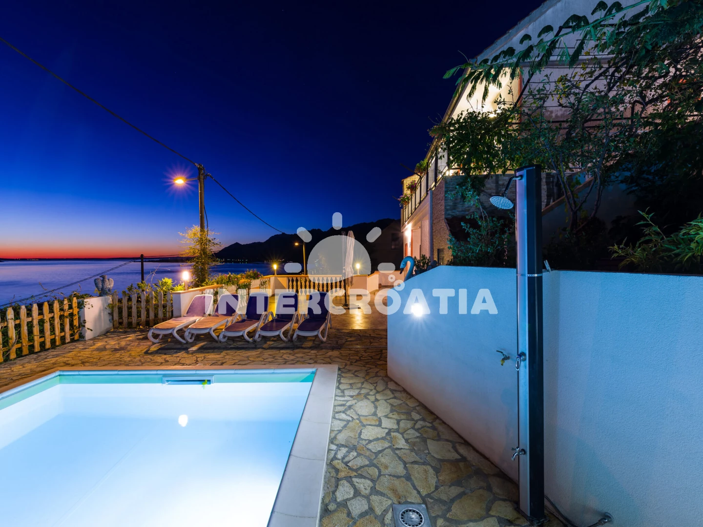 Vila s bazénem se nachází 500 m od moře a pláže. Pláž je oblázková a betonové desky. Vila disponuje bazénem s lehátky pro ubytované hosty. U objektu je k dispozici společná zahrada s posezením a grilem. Parkování je před domem.