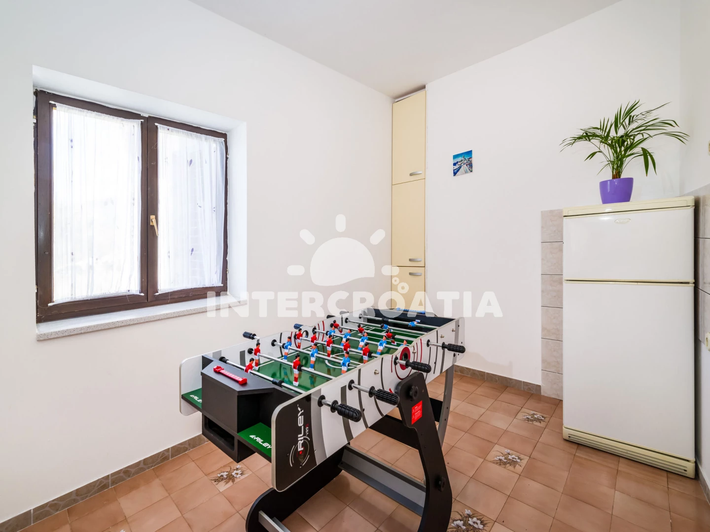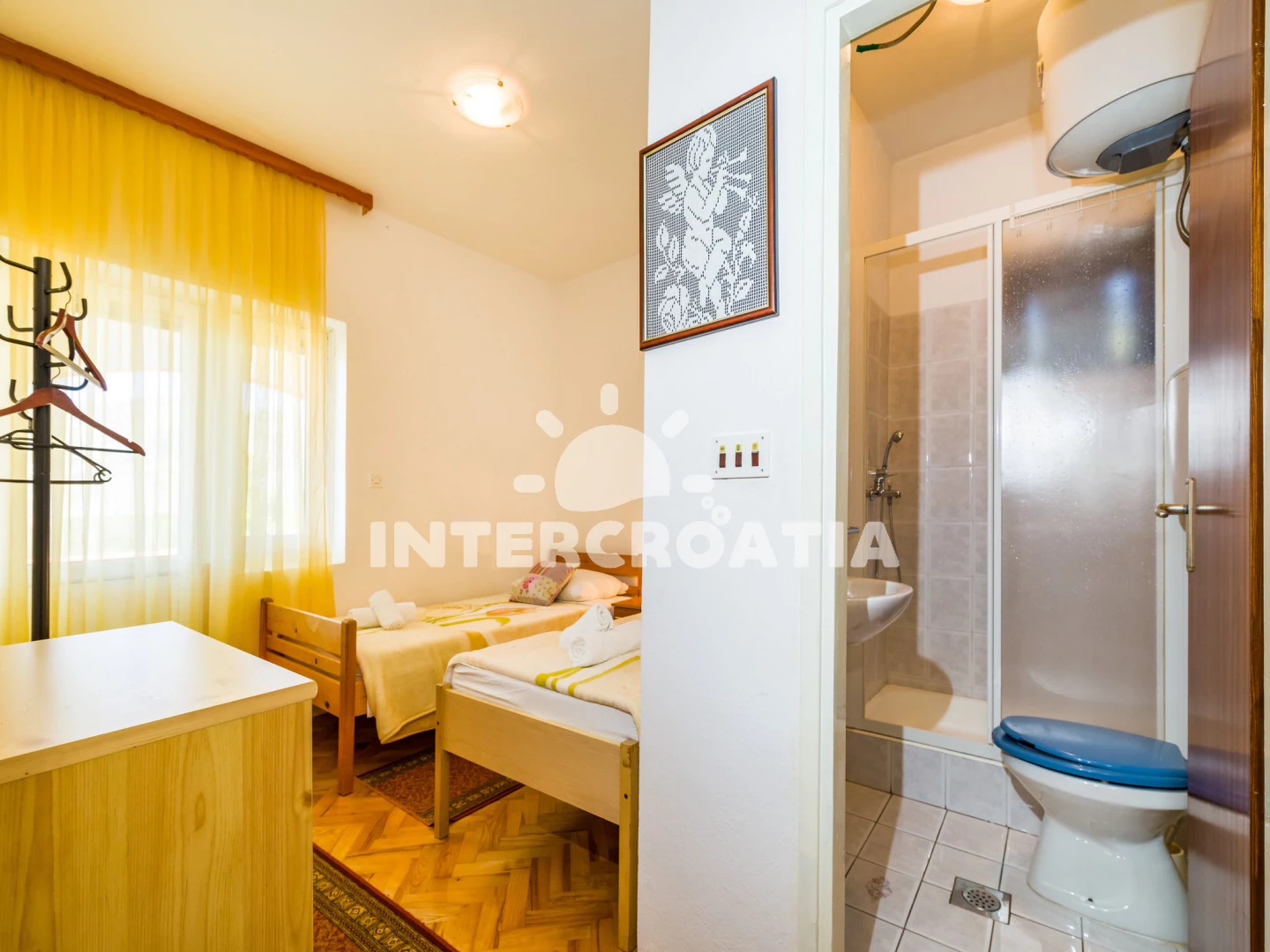 Vzdálenosti: Moře 500 m, pláž 500 m (oblázková a betonové desky), veřejná doprava 100 m, restaurace 250 m, bar 250 m, supermarket 250 m, centrum 500 m, půjčovna motorových člunů 3 km, diskotéka 5 km, ambulance 5 km, lékárna 5 km, tenisové kurty 8 km, pošta 10 km, čerpací stanice 10 km, park Plitvice 10 km, směnárna 10 km, banka 33 km, trajekt (Zadar) 33 km, potápění 33 km, letiště (Zadar) 35 km, muzeum 35 km,
