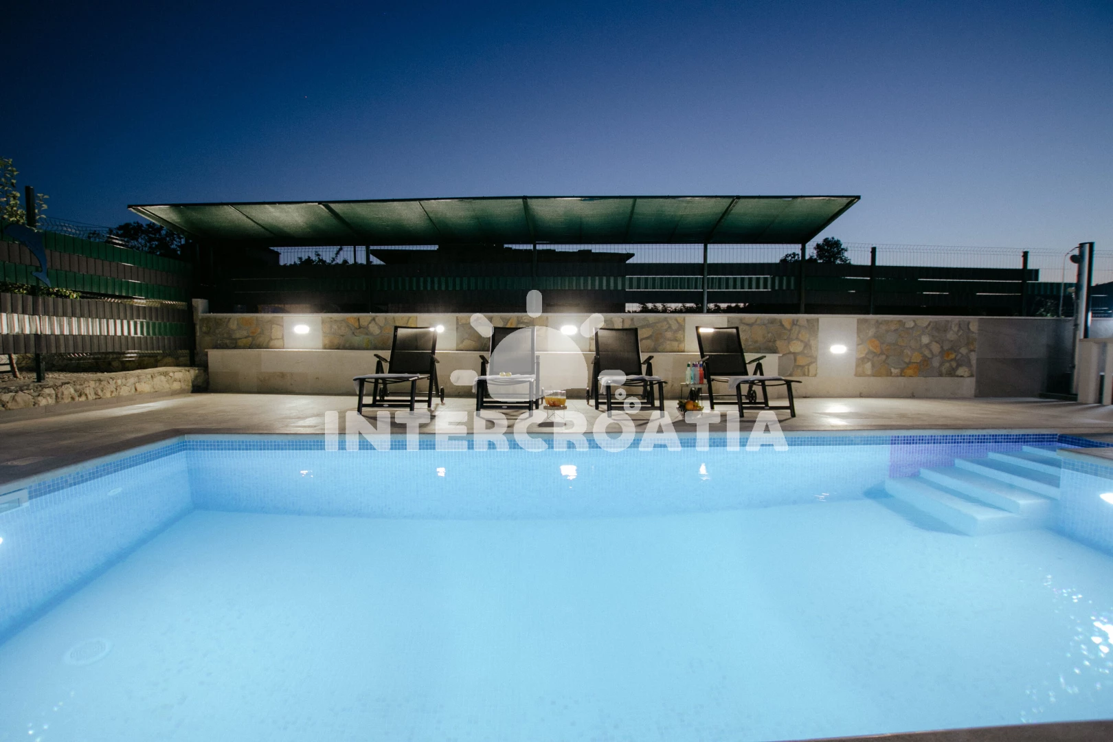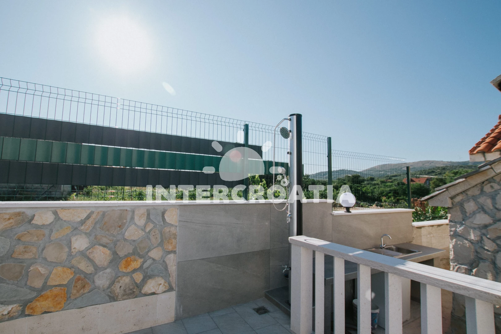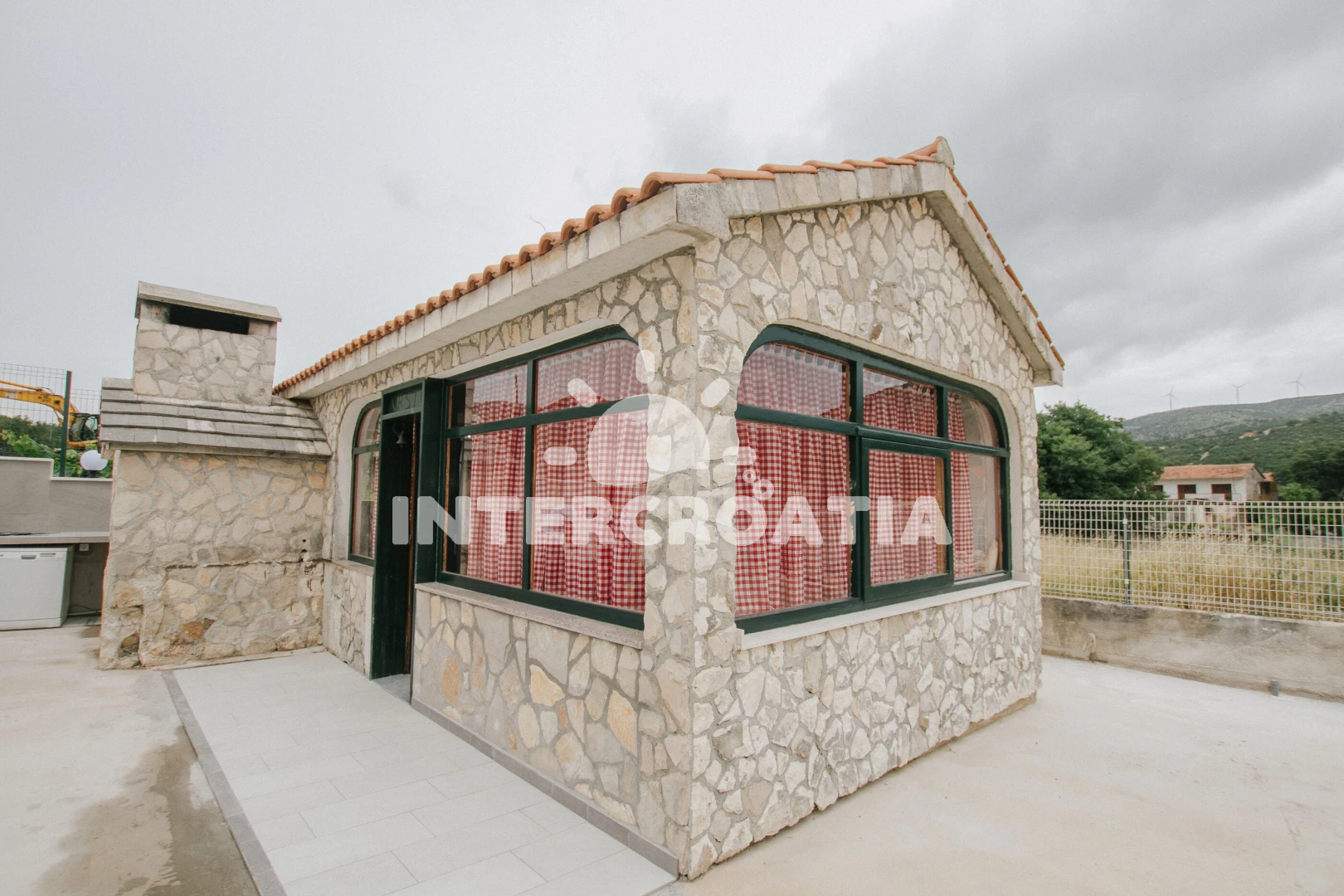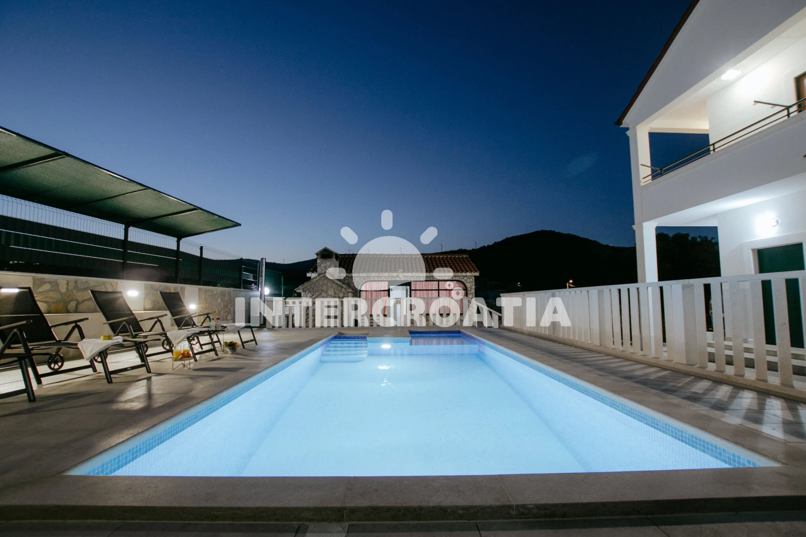 Domek se nachází 1200 m od moře a pláže. Pláž je oblázková. Domek disponuje bazénem s lehátky pro ubytované hosty. U objektu je k dispozici společná zahrada s posezením a grilem. Parkování je před domem.