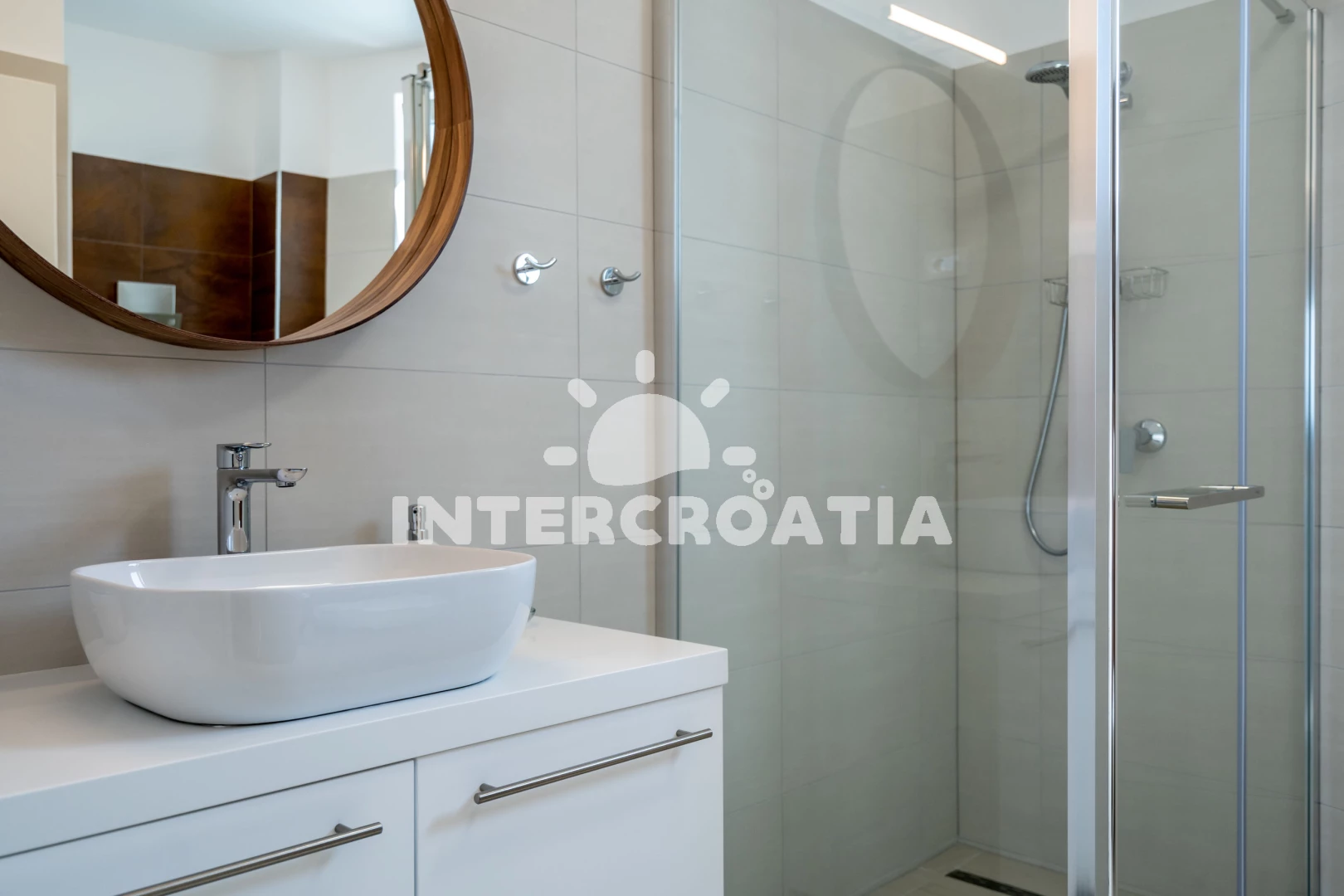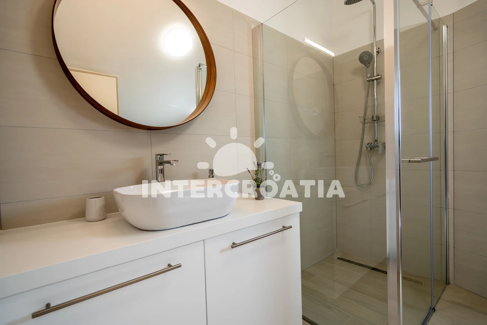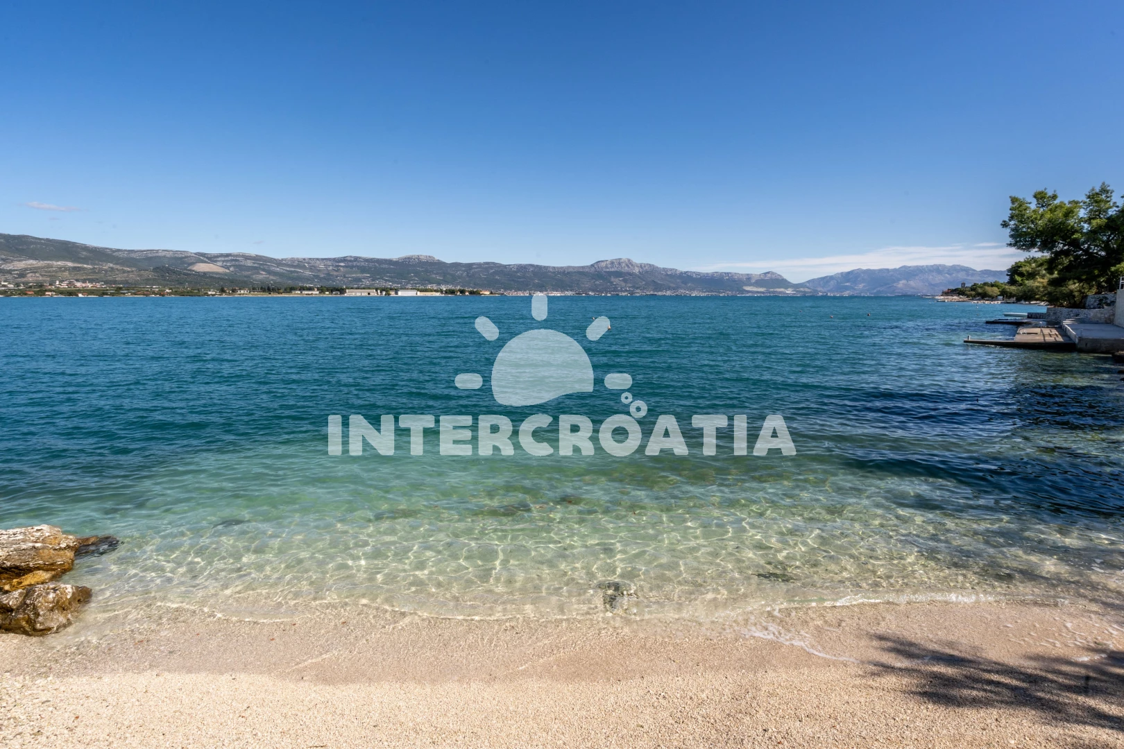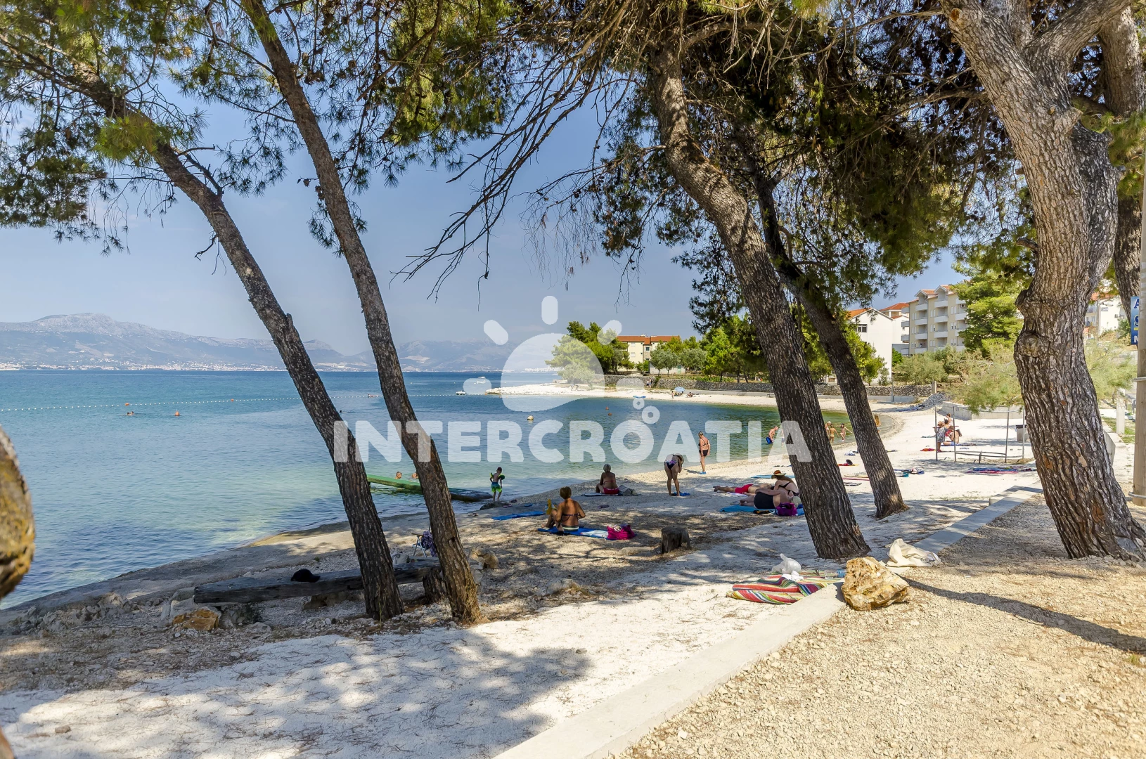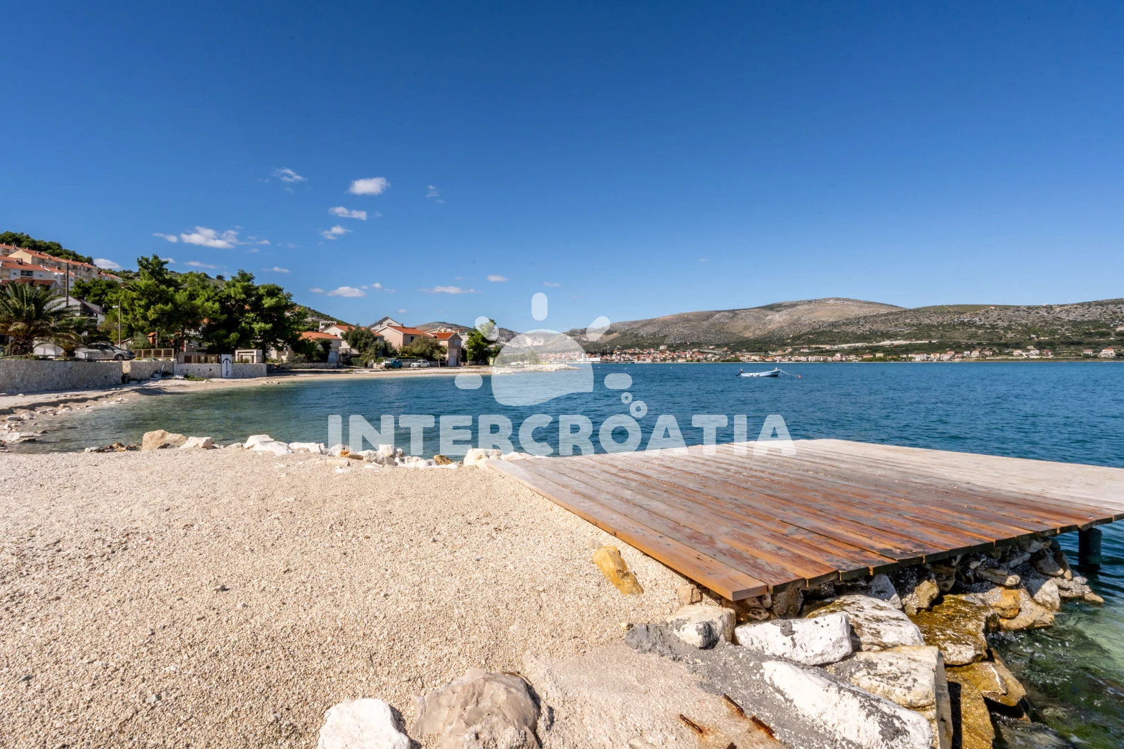 Vzdálenosti: Moře 30 m, pláž 100 m (skalnatá a oblázková), veřejná doprava 30 m, supermarket 30 m, restaurace 300 m, směnárna 2 km, muzeum 2 km, pošta 2 km, bar 2 km, centrum 2 km, banka 2 km, lékárna 2 km, ambulance 2 km, diskotéka 2 km, čerpací stanice 2,5 km, potápění 4,5 km, marina 4,5 km, trajekt (Trogir) 5,2 km, letiště (Split) 5,7 km,