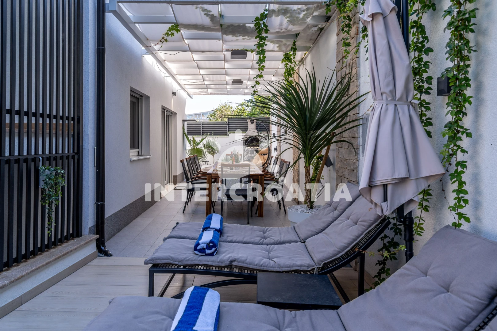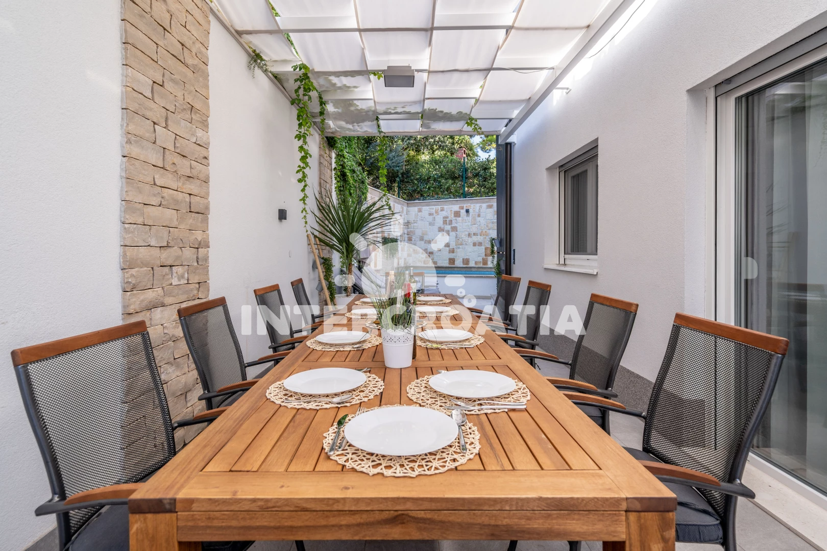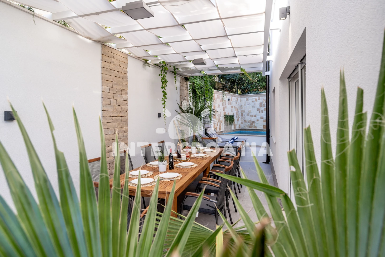 Vila je velmi moderně a vkusně zařízena uvnitř i venku. Na všechny nás vila velmi zapůsobila. Můžete cítit luxus. Majitel myslel na vše, aby se zde rekreanti cítili dobře. Bylo tam veškeré vybavení, které potřebujete v každodenním životě. A nejednalo se o ledajaké přístroje, ale od předních značek. Několikrát jsme použili i pračku. Měli jsme tam i čisticí a prací prostředky. Nic nám nechybělo. I na první snídani jsme měli talíř s klobásou a sýrem a čerstvý chléb. Na stole ležel talíř s ovocem a láhev vína. Další výhodou této vily je, že každý pokoj má vlastní koupelnu. To jsme ještě nikdy neměli. Všechny pokoje jsou vybaveny klimatizací a na každém pokoji (včetně jídelny a společenské místnosti) je televize. Večer byly děti vždy v bazénu. Hráli jsme šipky a kulečník. Je zde i kamenný gril. Často jsme grilovali. Nemusíte dlouho přemýšlet, co večer uvařit, grilování je vždy na výběr.