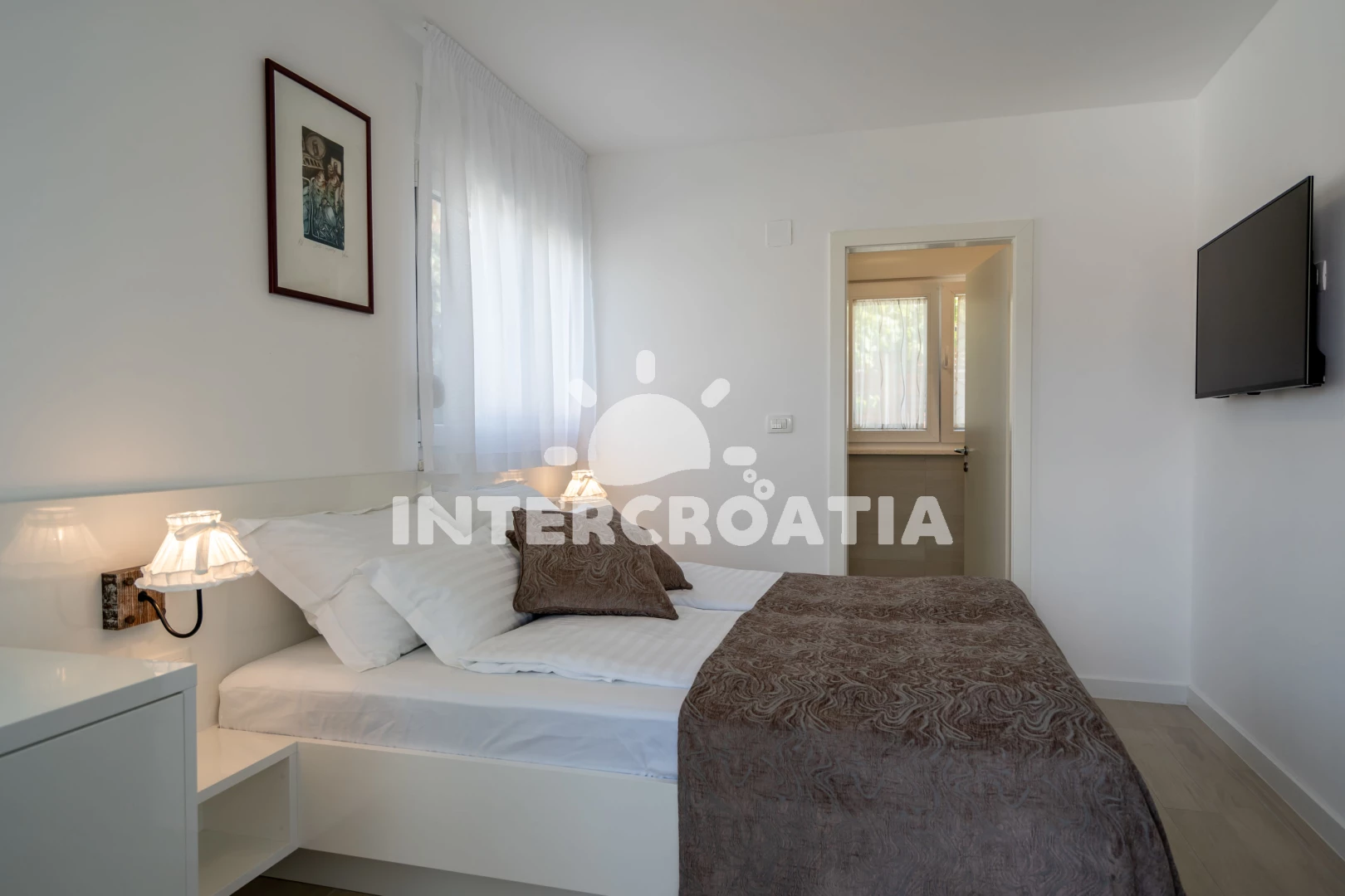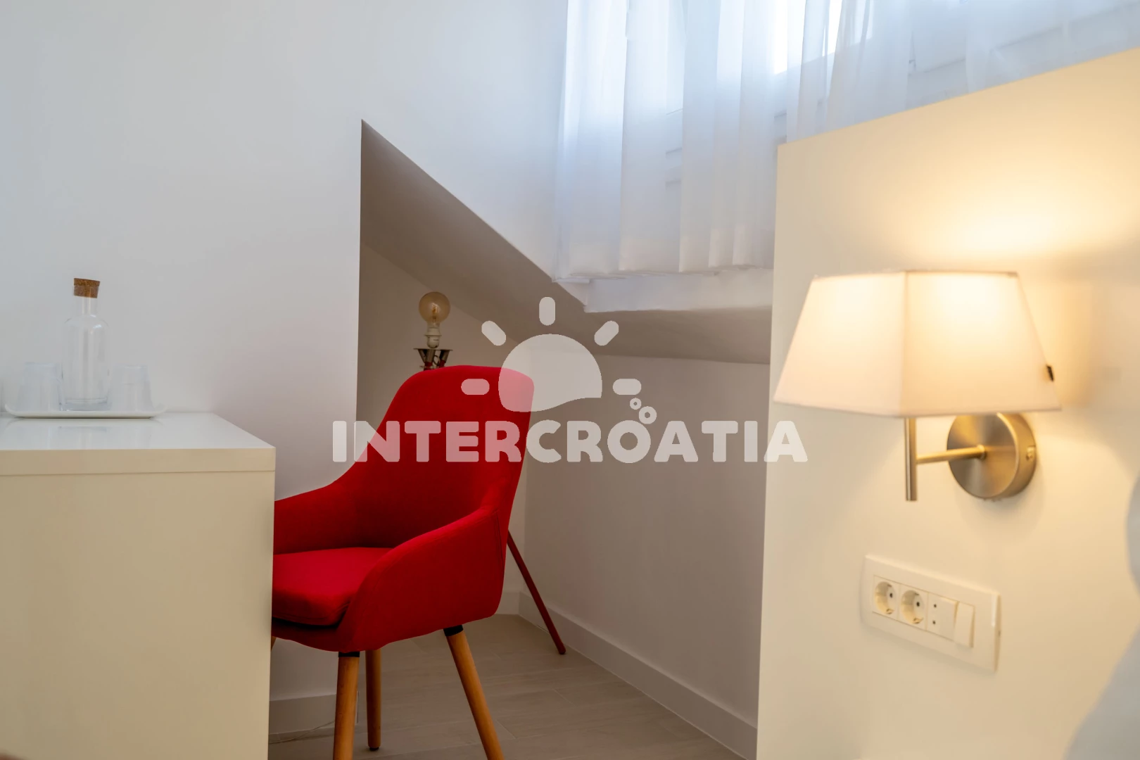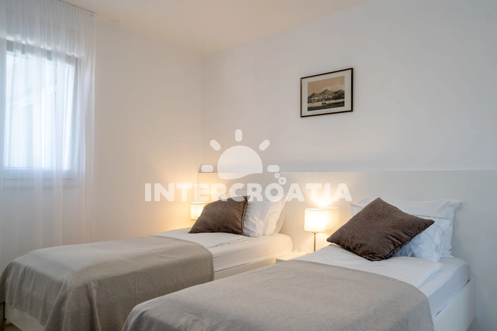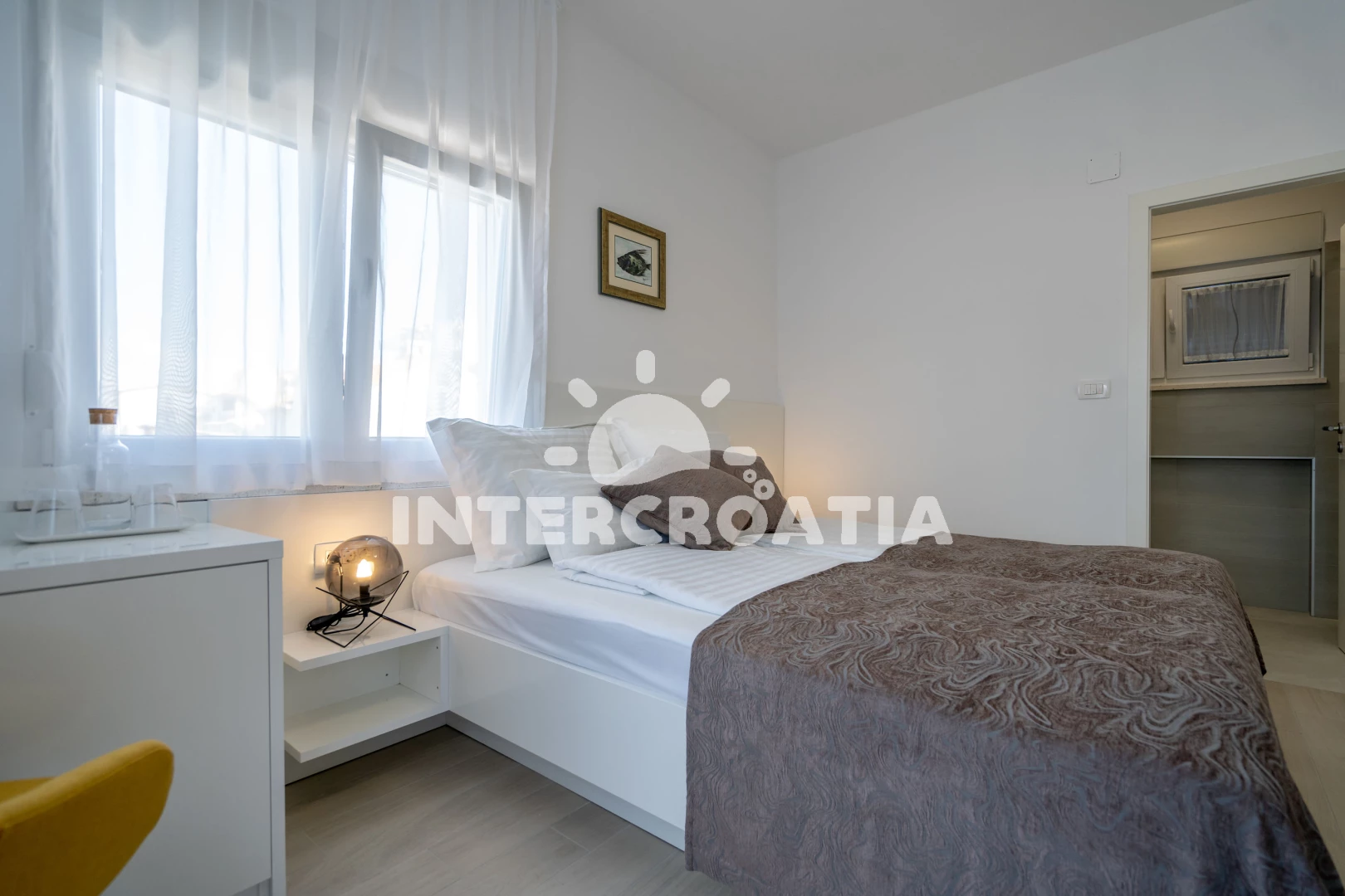 Poloha je také velmi dobrá. Nedaleko, tedy o dva až tři domy níže, se nachází restaurace (ne drahá) a místní obchod. Pokud přijedete autem, můžete nakoupit i v Kauflandu nebo Lidlu v Trogiru. Cesta na pláž také trvá méně než 5 minut. Šli jsme tam rovnou v plavkách. Jeli jsme i na druhou stranu ostrova a rozhodli jsme se, že máme nejlepší pláž na tomto ostrově. Majitel a jeho rodina byli velmi milí a přátelští a dali nám různé tipy. Protože se nikdy nedá přesně vypočítat doba cesty, dorazili jsme téměř o čtyři hodiny dříve. Majitel okamžitě odpověděl na naši zprávu a byl tam také dříve. Díky moc!