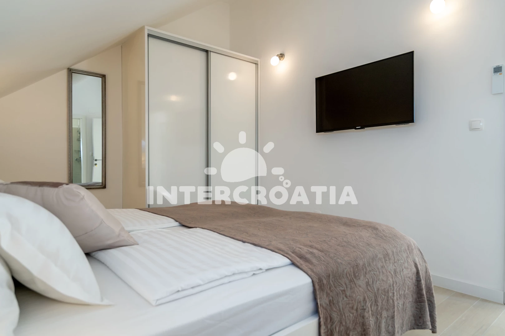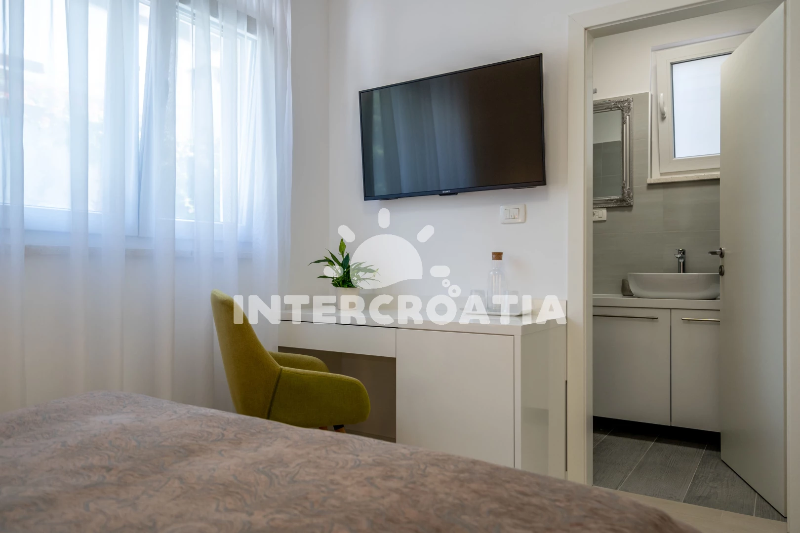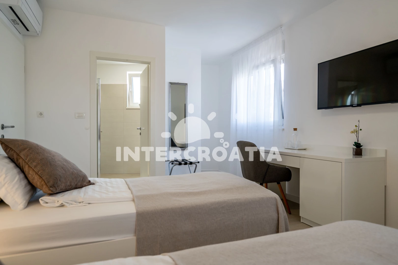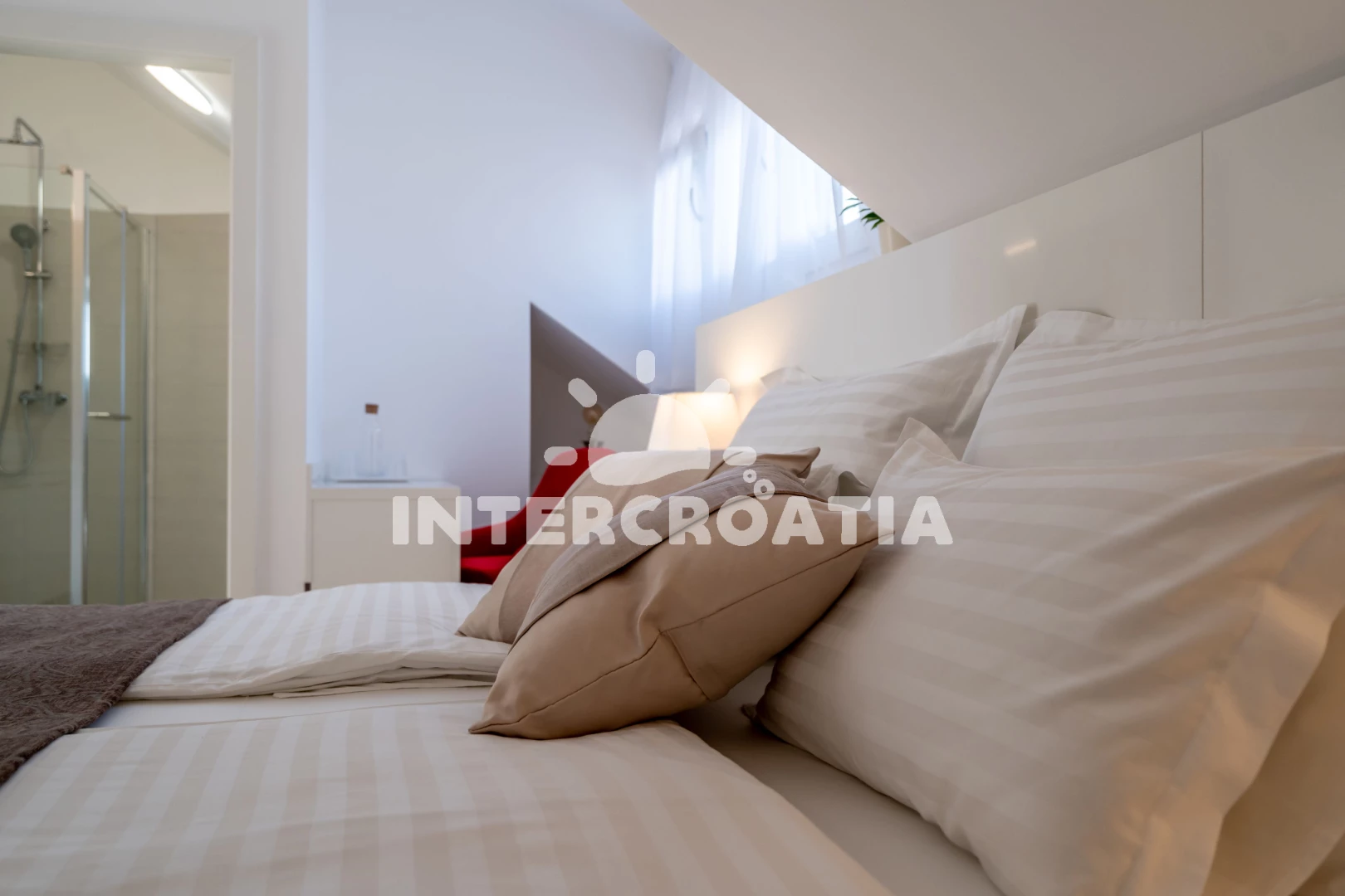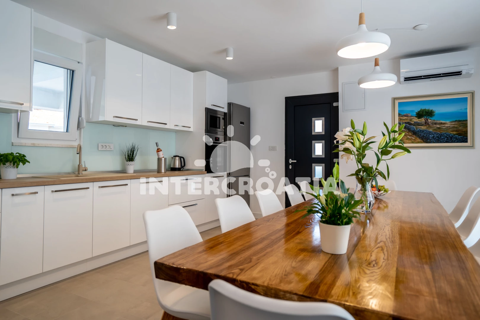 Poloha je také velmi dobrá. Nedaleko, tedy o dva až tři domy níže, se nachází restaurace (ne drahá) a místní obchod. Pokud přijedete autem, můžete nakoupit i v Kauflandu nebo Lidlu v Trogiru. Cesta na pláž také trvá méně než 5 minut. Šli jsme tam rovnou v plavkách. Jeli jsme i na druhou stranu ostrova a rozhodli jsme se, že máme nejlepší pláž na tomto ostrově. Majitel a jeho rodina byli velmi milí a přátelští a dali nám různé tipy. Protože se nikdy nedá přesně vypočítat doba cesty, dorazili jsme téměř o čtyři hodiny dříve. Majitel okamžitě odpověděl na naši zprávu a byl tam také dříve. Díky moc!
