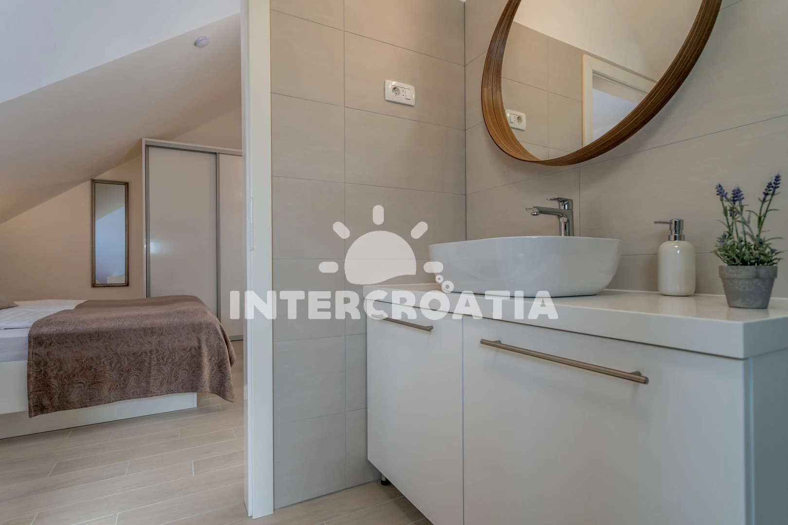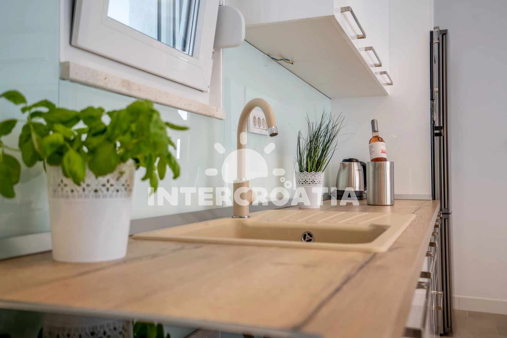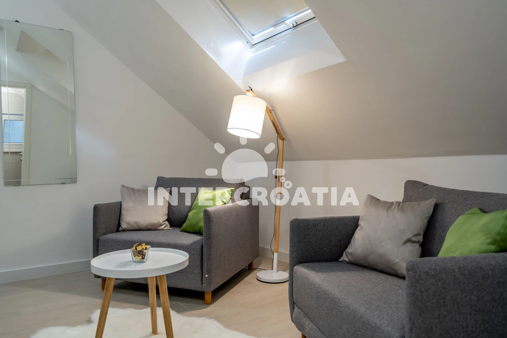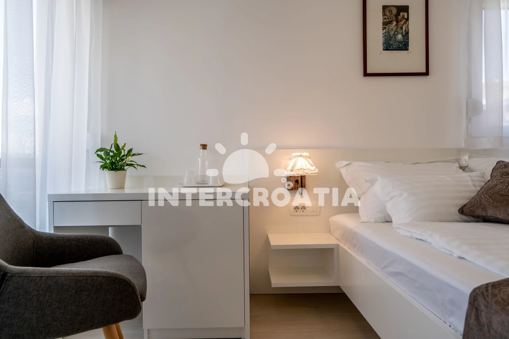 Poloha je také velmi dobrá. Nedaleko, tedy o dva až tři domy níže, se nachází restaurace (ne drahá) a místní obchod. Pokud přijedete autem, můžete nakoupit i v Kauflandu nebo Lidlu v Trogiru. Cesta na pláž také trvá méně než 5 minut. Šli jsme tam rovnou v plavkách. Jeli jsme i na druhou stranu ostrova a rozhodli jsme se, že máme nejlepší pláž na tomto ostrově. Majitel a jeho rodina byli velmi milí a přátelští a dali nám různé tipy. Protože se nikdy nedá přesně vypočítat doba cesty, dorazili jsme téměř o čtyři hodiny dříve. Majitel okamžitě odpověděl na naši zprávu a byl tam také dříve. Díky moc!