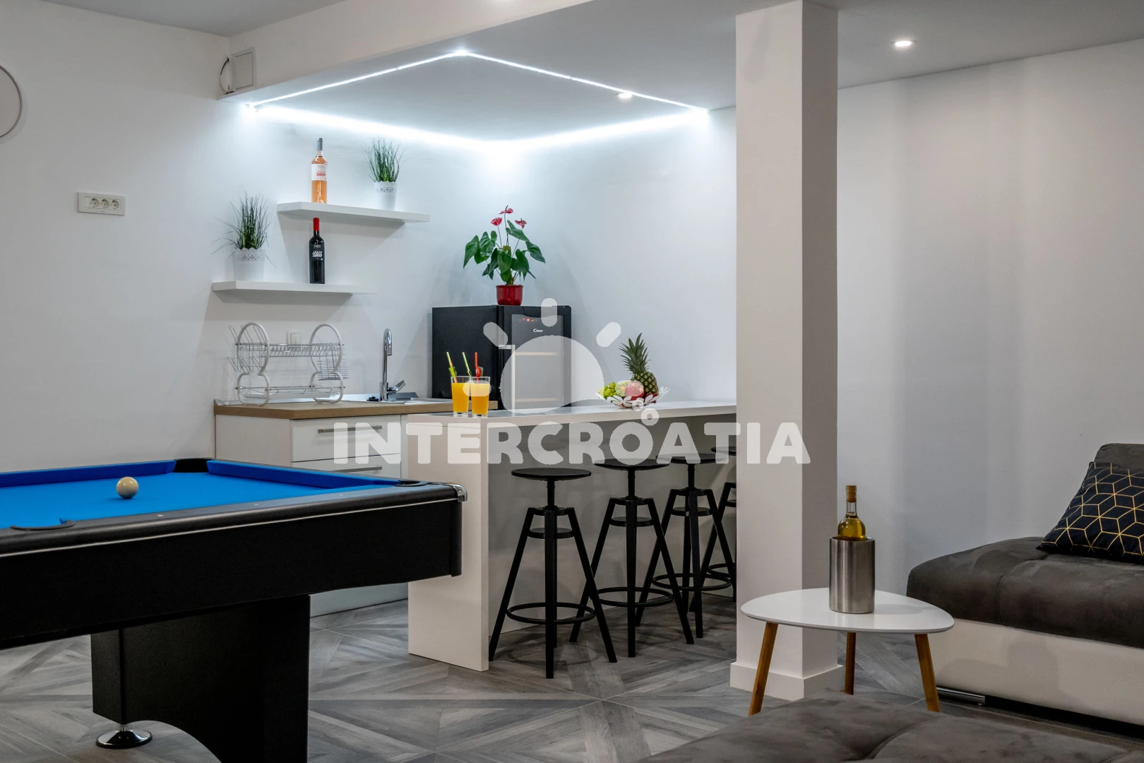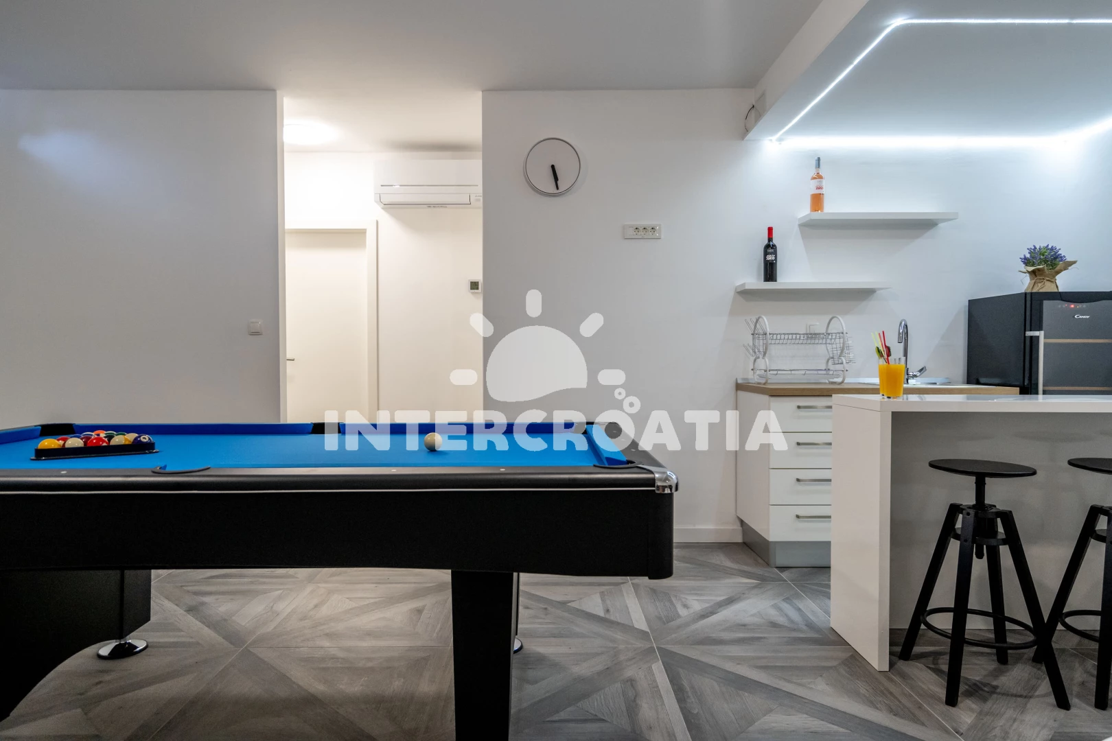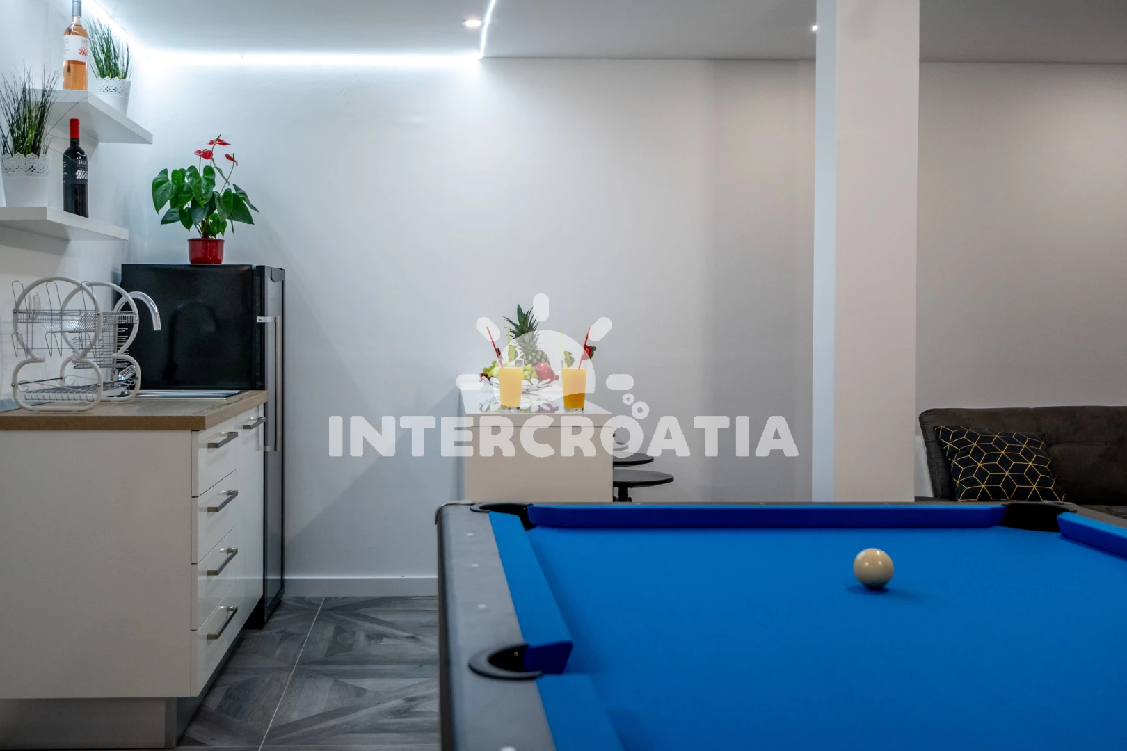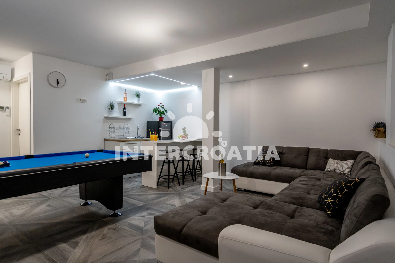Traumhafte Villa! Schöner Urlaub! Wir waren mit drei Familien dort. Fünf Zimmer haben uns gereicht. Die Villa ist sowohl im Außenbereich als auch im Innenbereich sehr modern und geschmackvoll eingerichtet. Wir alle waren von der Villa sehr begeistert. Man spürt den Luxus. Der Besitzer hat an alles gedacht, damit sich die Urlauber hier wohl fühlen. Alle Geräte, die man im Alltag benötigt, waren vorhanden. Und das waren nicht irgendwelche Geräte, sondern von führenden Marken. Auch die Waschmaschine haben wir mehrmals genutzt. Reinigungs- und Waschmitteln hatten wir dort auch. Uns hat es an nichts gefehlt. Sogar für das erste Frühstück hatten wir eine Wurst-Käse-Platte und frisches Brot. Auf dem Tisch stand ein Teller mit Obst und eine Flasche Wein. Ein weiterer Vorteil in dieser Villa ist, dass jedes Zimmer mit eigenem Badezimmer ausgestattet ist. Das hatten wir bis jetzt noch nie. Alle Räume sind mit Klimaanlage ausgestattet und in jedem Zimmer (auch im Esszimmer und im Partyraum) gibt es ein Fernseher. Abends waren die Kinder immer im Pool. Wir haben Darts und Billard gespielt. Ein Steingrill gibt es dort auch. Wir haben oft gegrillt. Man muss nicht lange überlegen, was man abends kocht, Grill geht immer. Die Lage ist auch sehr gut. Ein Restaurant (nicht teuer) und ein einheimischer Laden befinden sich gleich in der Nähe, d.h. zwei-drei Häuser weiter. Wer mit dem Auto kommt, kann auch in Trogir bei Kaufland oder Lidl einkaufen. Bis zum Strand braucht man auch weniger als 5 Minuten. Wir sind gleich in Badesachen hingegangen. Wir waren auch auf der anderen Seite der Insel und sind zum Entschluss gekommen, dass wir den besten Strand auf dieser Insel hatten. Der Besitzer und seine Familie waren sehr nett und freundlich, haben uns div. Tipps gegeben. Da man die Fahrzeit nie genau berechnen kann, waren wir fast vier Stunden früher vor Ort. Der Besitzer hat auf unsere Nachricht gleich reagiert und war auch früher da. Vielen lieben Dank! Wir kommen auf jeden Fall wieder!