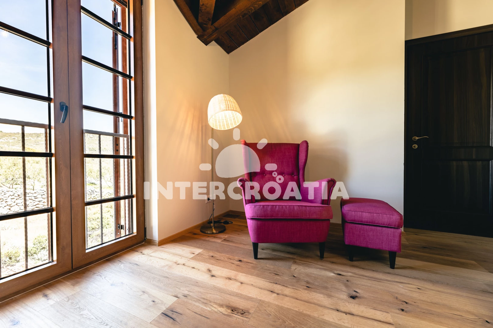 Vila nabízí skvělé ubytování - dobře prezentované, dobře zařízené a velmi dobře vybavené. Nachází se nad vesnicí, a tak je klidný a soukromý, ale ne tak daleko, aby se cítil izolovaný. Výhledy do údolí az altánku výhledy na jiskřivý Jadran.