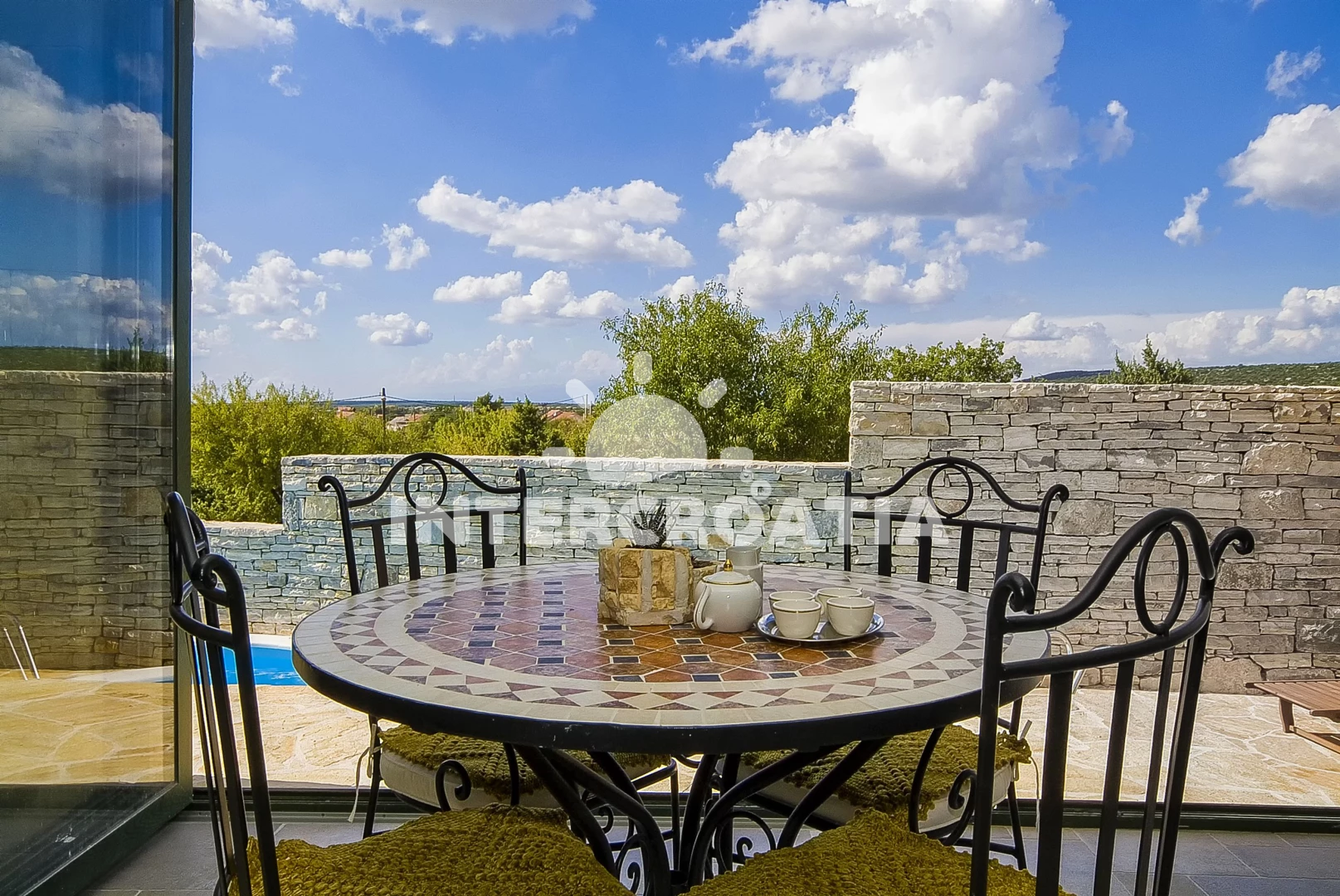 Vzdálenosti: Moře 17 km, pláž 17 km (skalnatá, oblázková, větší kamení a betonové desky), veřejná doprava 800 m, supermarket 1 km, muzeum 6 km, restaurace 6 km, bar 6 km, pošta 6 km, banka 6 km, centrum 6 km, směnárna 6 km, ambulance 6 km, lékárna 6 km, čerpací stanice 6 km, tenisové kurty 17 km, diskotéka 17 km, trajekt (Biograd) 27 km, letiště (Zadar) 34 km,