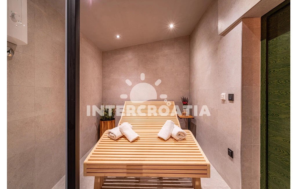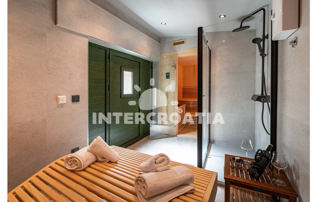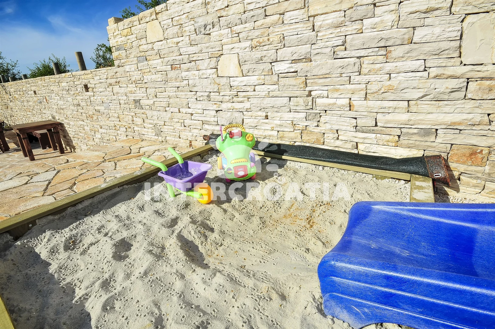 Vila se nachází 17000 m od moře a pláže. Pláž je skalnatá, oblázková, větší kamení a betonové desky. Vila disponuje bazénem s lehátky pro ubytované hosty. K dispozici posilovna. U objektu je k dispozici společná zahrada s posezením a grilem. Parkování je před domem.