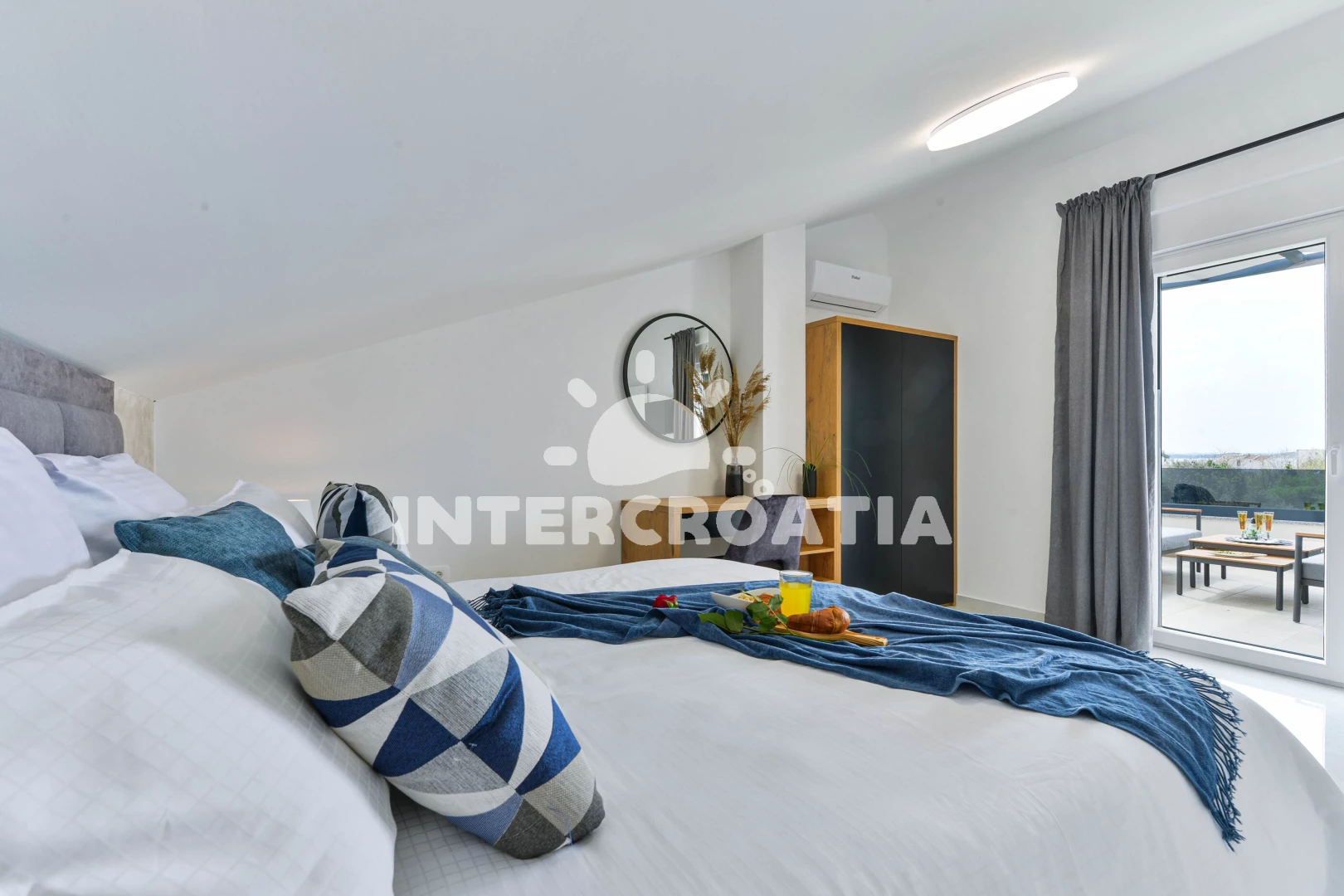 Vila (240 m2) s balkonem, a výhledem na moře. Vila má 4 ložnice a je vhodná pro až 8 osob. Kuchyňská linka je vybavena varnou deskou, toustovačem, troubou, kávovarem, myčkou na nádobí, mikrovlnnou…
