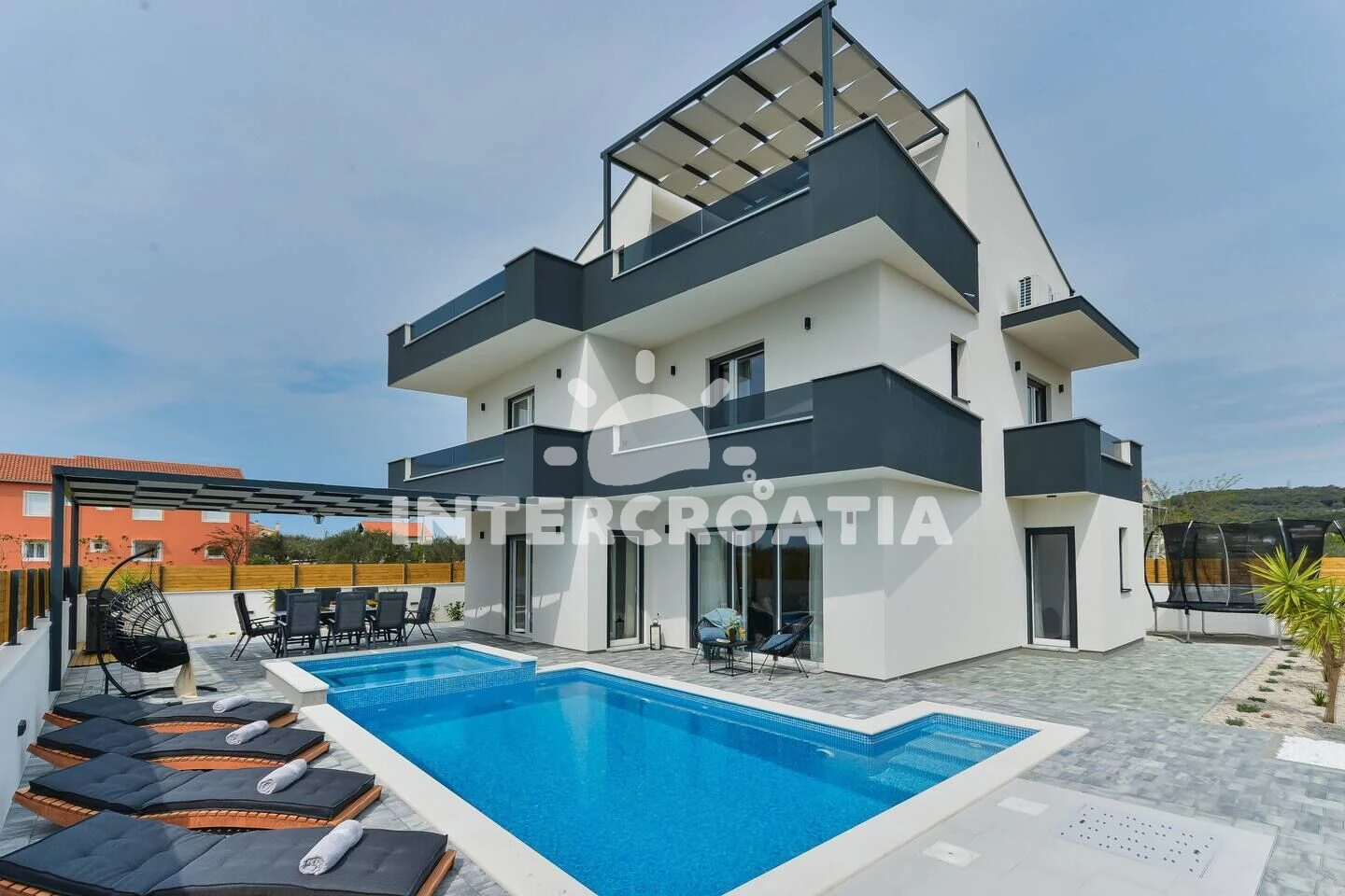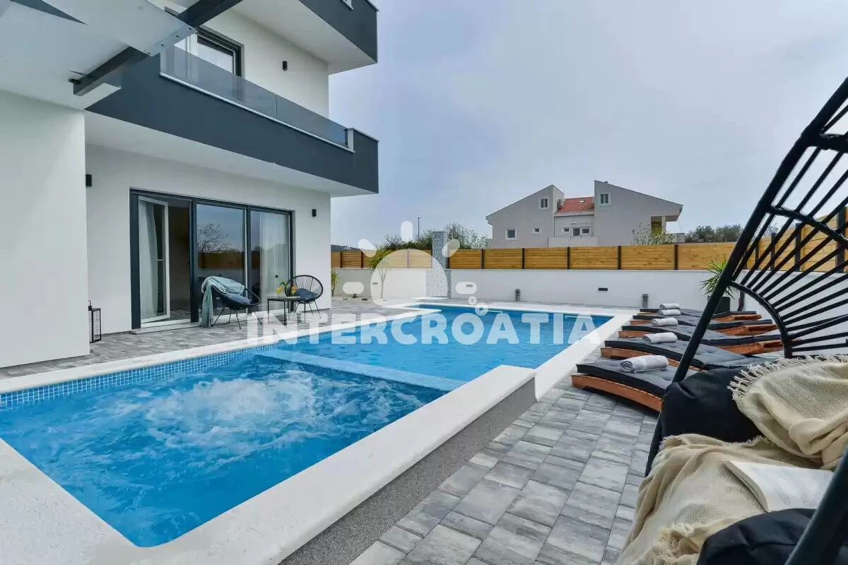 Vzdálenosti: Moře 285 m, pláž 600 m (oblázková a betonové desky), supermarket 650 m, bar 700 m, restaurace 700 m, centrum 800 m, lékárna 900 m, půjčovna motorových člunů 1 km, marina 1 km, ambulance 1,2 km, pošta 1,4 km, letiště (Zadar) 10 km, trajekt (Zadar) 10 km, muzeum 10 km,