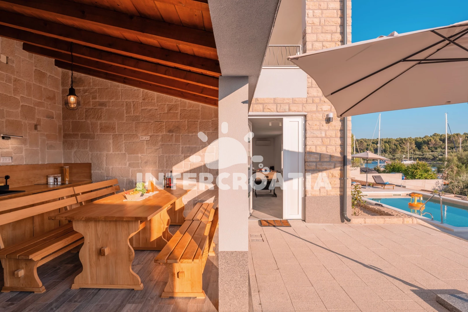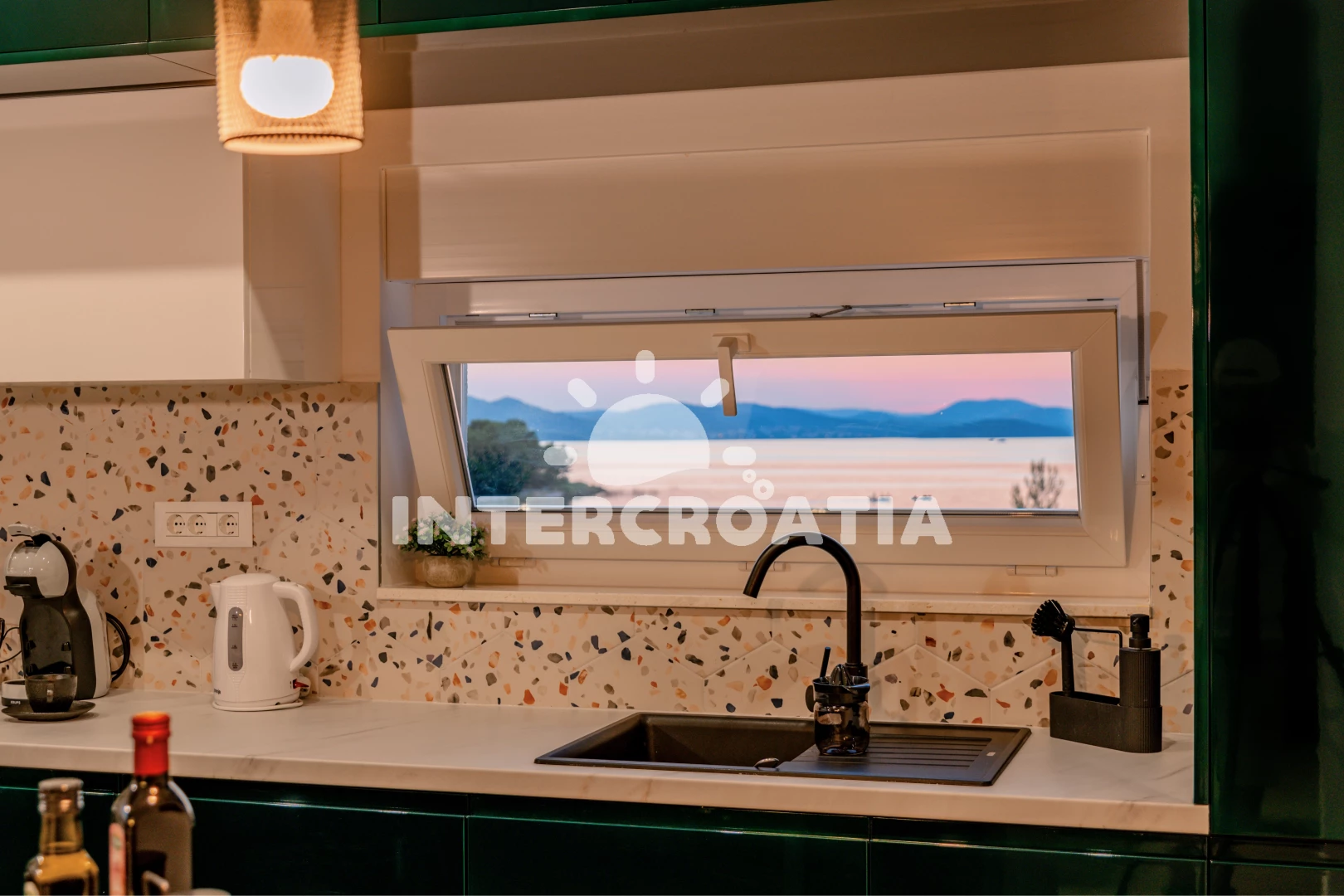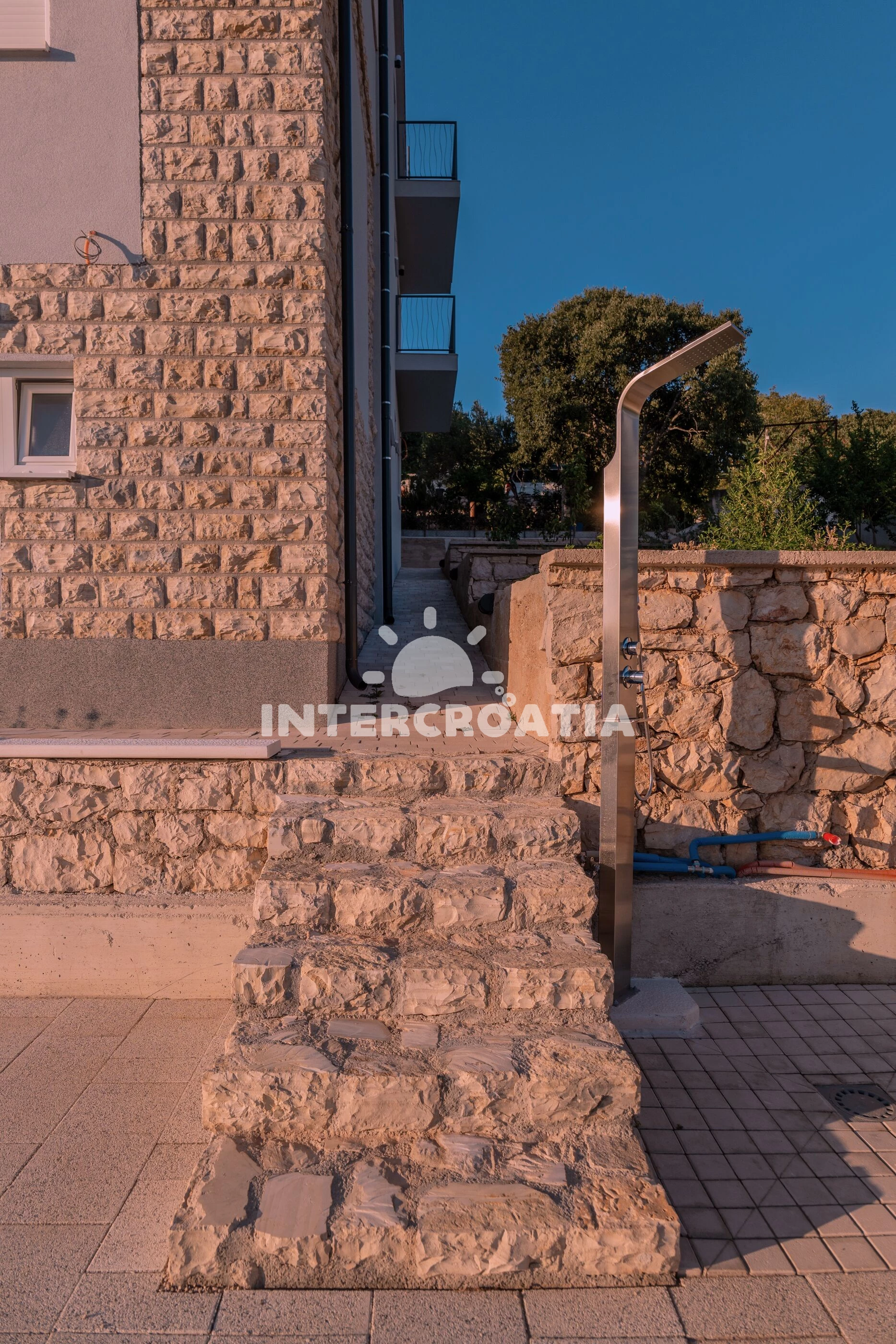 Vzdálenosti: Moře 20 m, pláž 20 m (oblázková a betonové desky), kotviště pro čluny 50 m, půjčovna motorových člunů 100 m, marina 200 m, bar 200 m, veřejná doprava 300 m, restaurace 2 km, centrum 2 km, supermarket 3 km, ambulance 3 km, lékárna 3 km, čerpací stanice 4 km, směnárna 6 km, pošta 6 km, muzeum 6 km, trajekt (Šibenik) 6 km, banka 6 km, park Plitvice 9 km, diskotéka 12 km, letiště (Zadar) 60 km,