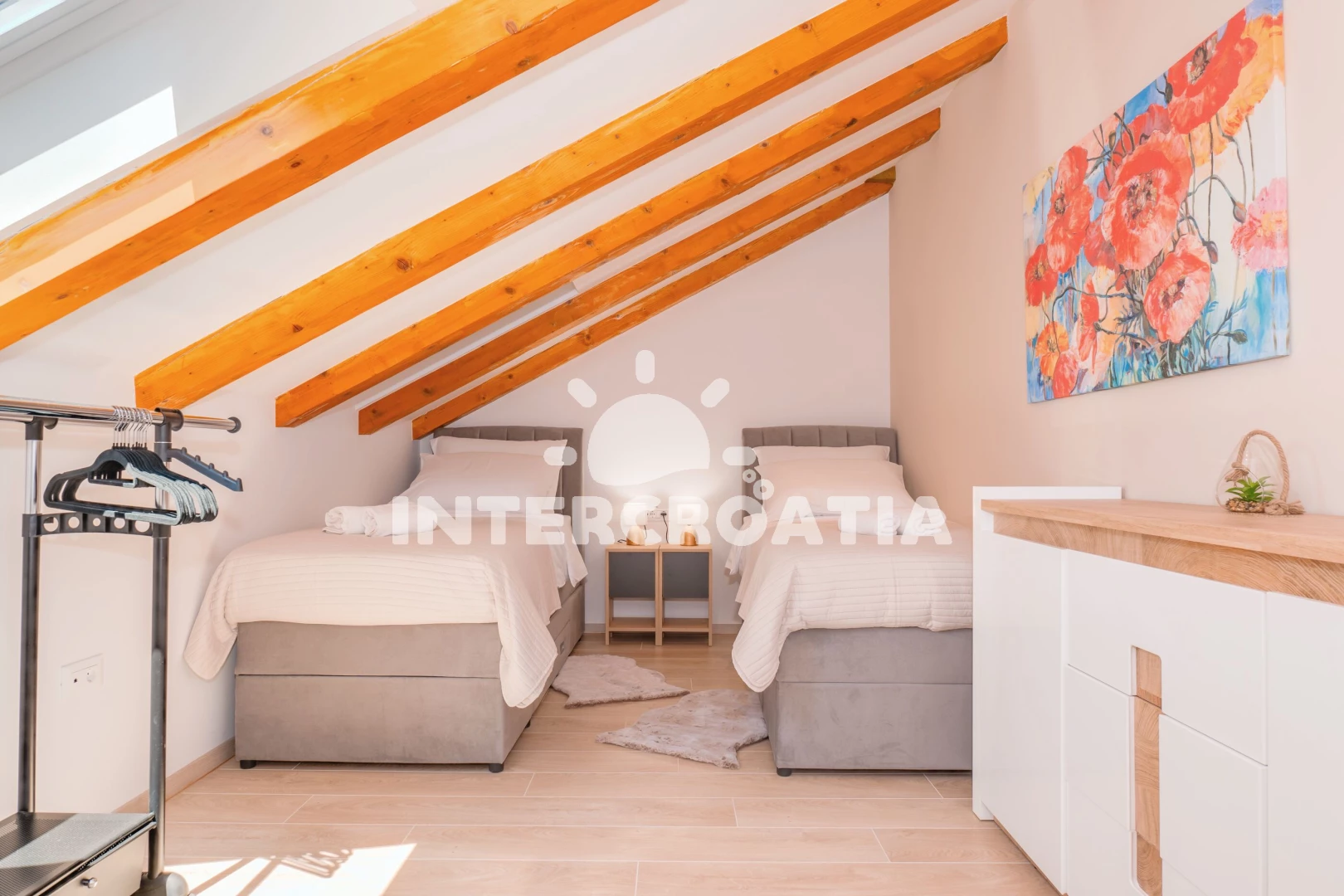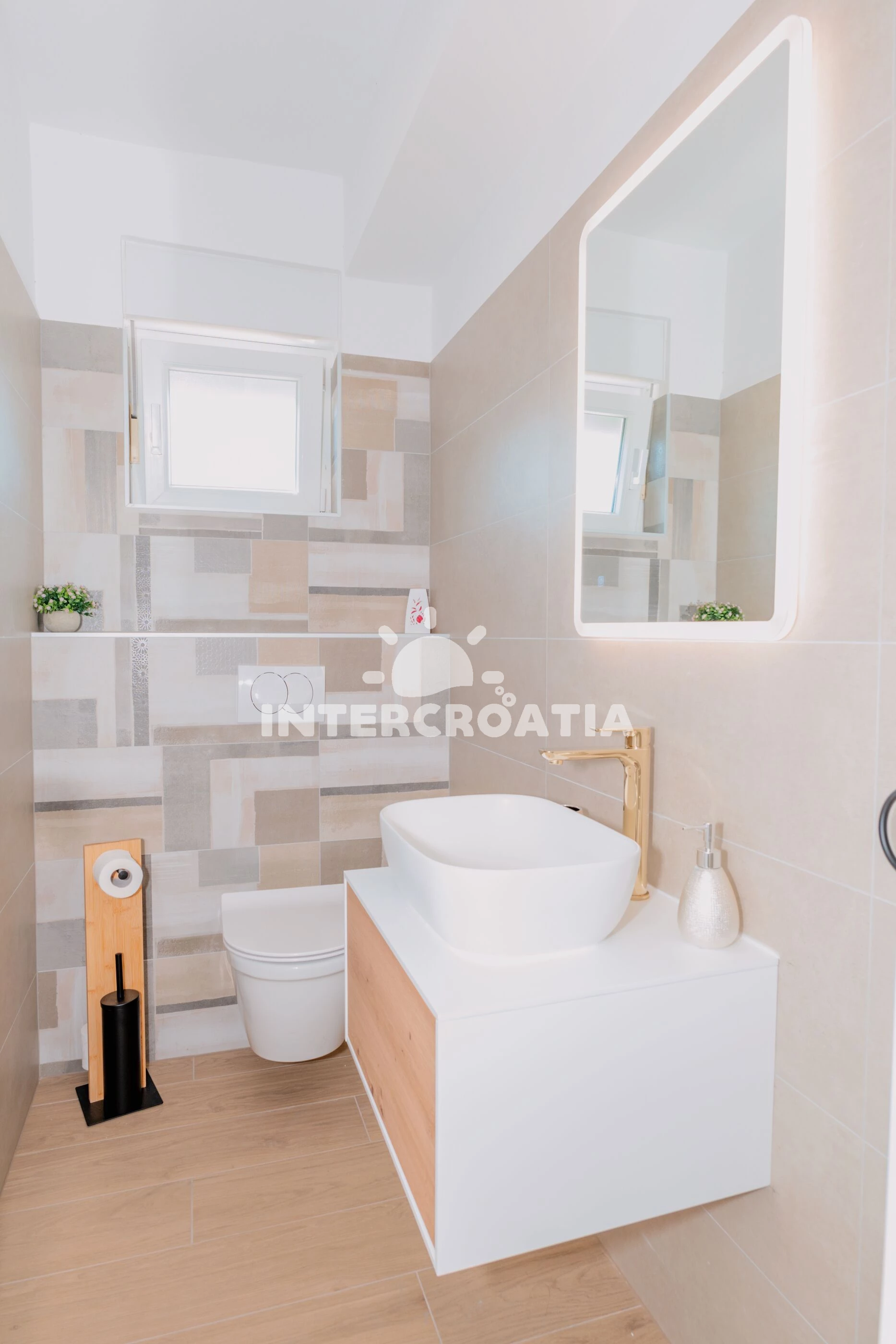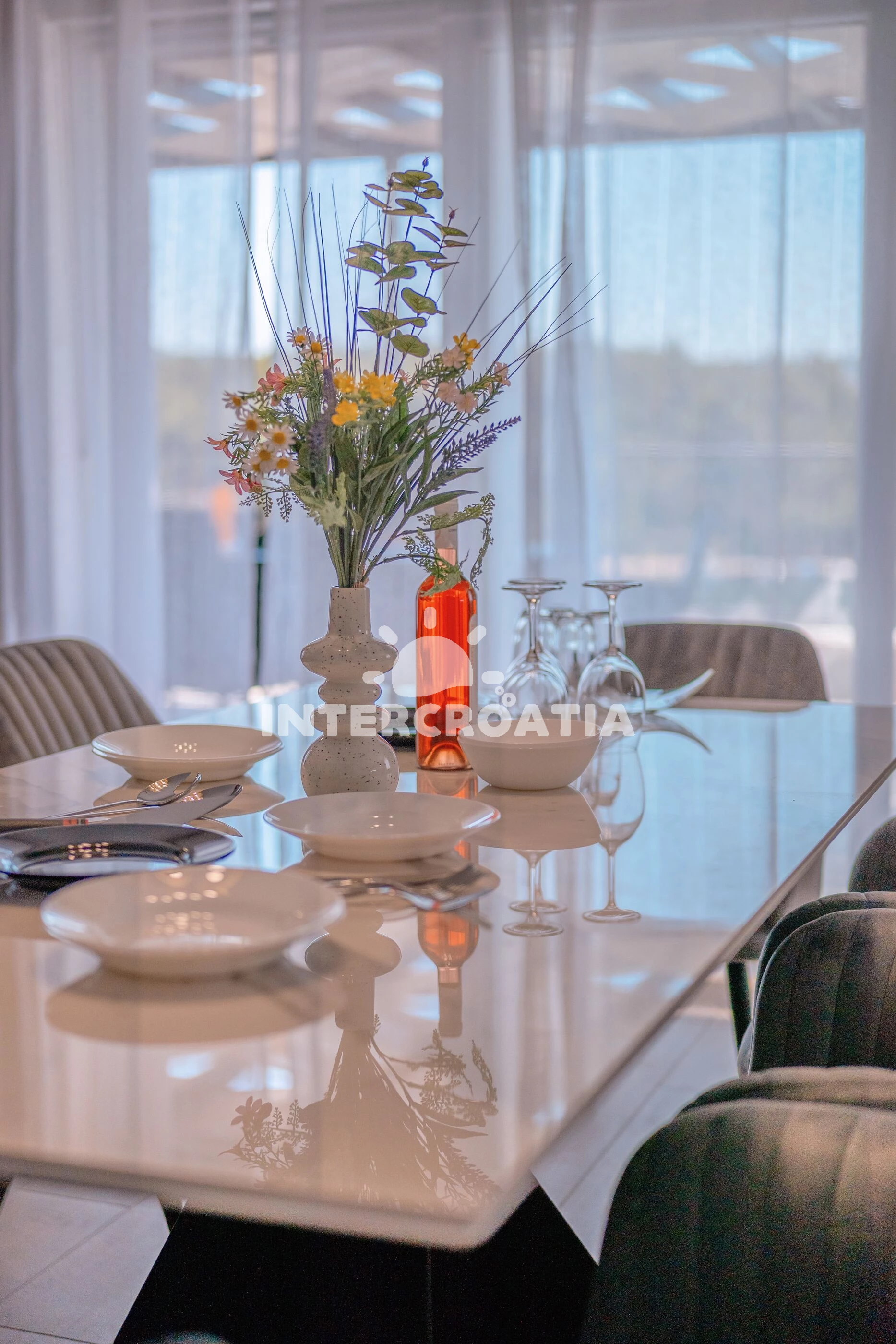 Vzdálenosti: Moře 20 m, pláž 20 m (oblázková a betonové desky), kotviště pro čluny 50 m, půjčovna motorových člunů 100 m, marina 200 m, bar 200 m, veřejná doprava 300 m, restaurace 2 km, centrum 2 km, supermarket 3 km, ambulance 3 km, lékárna 3 km, čerpací stanice 4 km, směnárna 6 km, pošta 6 km, muzeum 6 km, trajekt (Šibenik) 6 km, banka 6 km, park Plitvice 9 km, diskotéka 12 km, letiště (Zadar) 60 km,