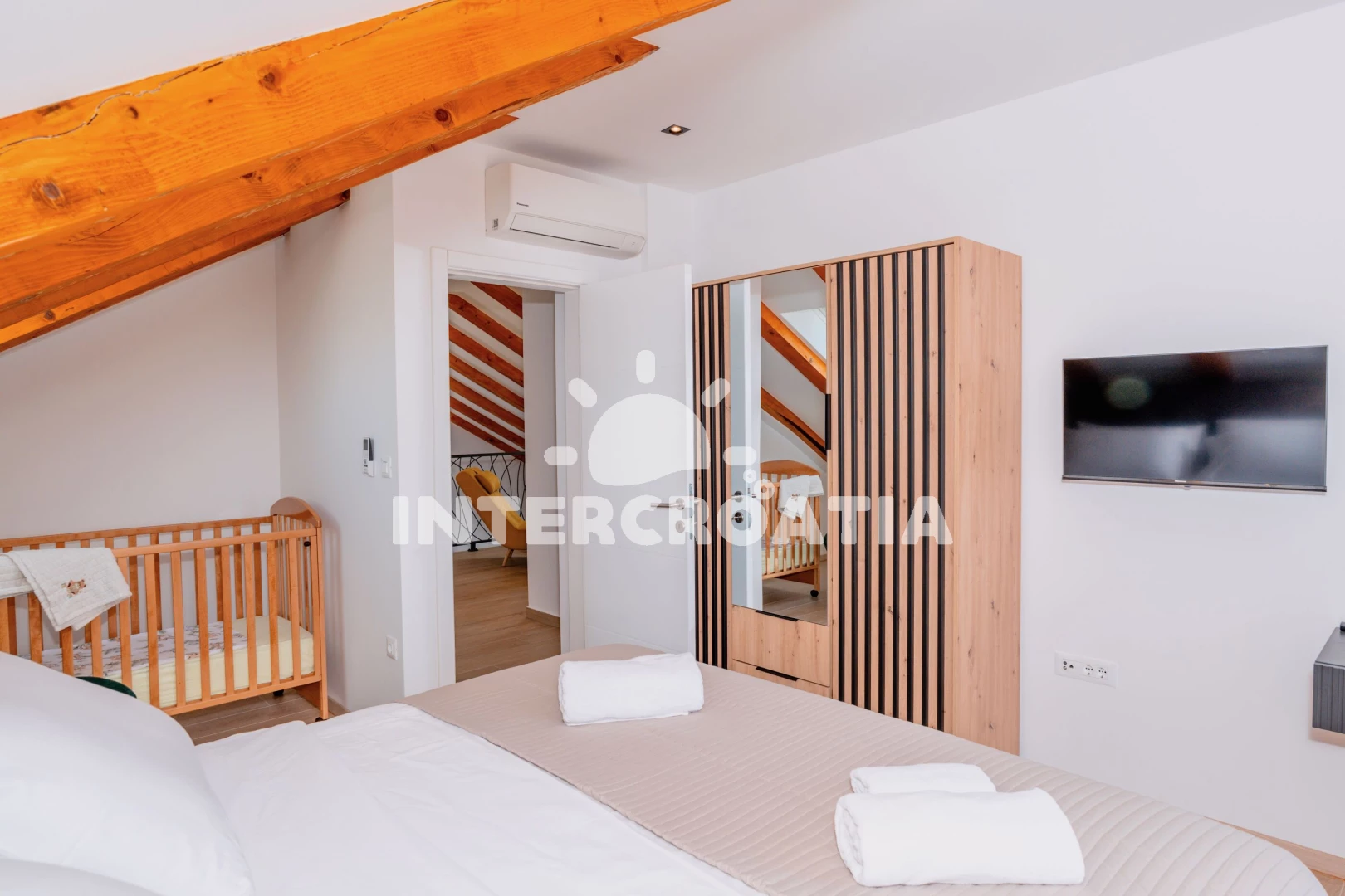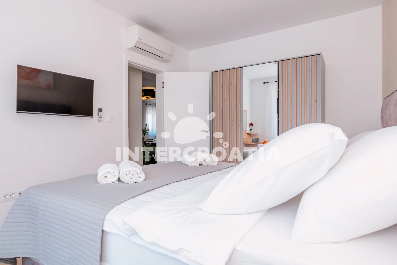 Domácí zvířata jsou povolena ( 15 € osoba/den ). V ceně pobytu zahrnuto: Welcome balíček, WiFi, klimatizace (všechny pokoje), povlečení, ručníky, pračka, dětská postýlka (služba na požádání), závěrečný úklid, pobytová taxa. Host je povinen v den příjezdu do ubytování složit vratnou zálohu celkem 400 €, kterou dostane zpět v den odjezdu, pokud nepoškodil ubytovací jednotku. Pronajímatel se dorozumí chorvatsky, anglicky, Pronajímatel vás bude očekávat po 16:00. V den odjezdu je nutné vyklidit apartmán do 10:00.