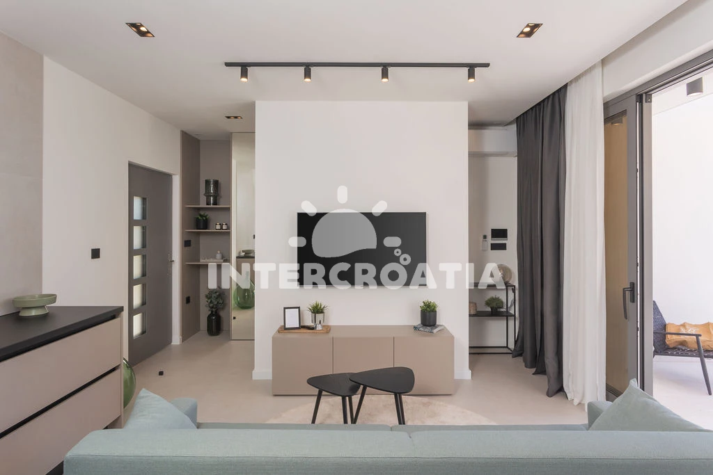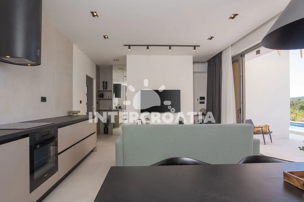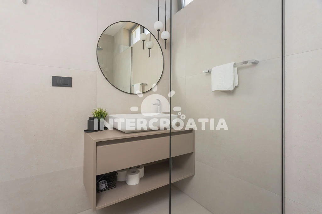 Vzdálenosti: Moře 250 m, pláž 250 m (písčitá a betonové desky), půjčovna motorových člunů 150 m, veřejná doprava 250 m, bar 250 m, kotviště pro čluny 300 m, restaurace 2 km, lékárna 3 km, ambulance 3 km, supermarket 3 km, centrum 3 km, čerpací stanice 4 km, směnárna 6 km, marina 6 km, banka 6 km, pošta 6 km, letiště (Zadar) 6 km, muzeum 6 km, park Plitvice 10 km, trajekt (Šibenik) 60 km,