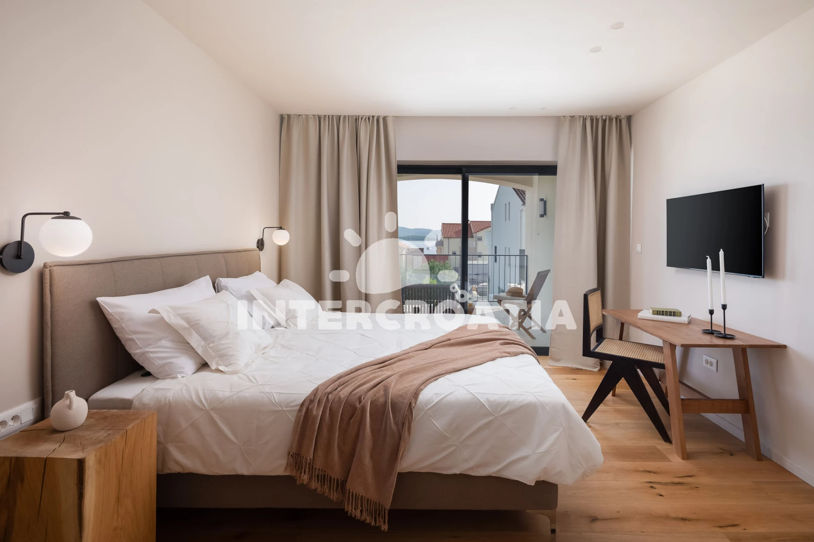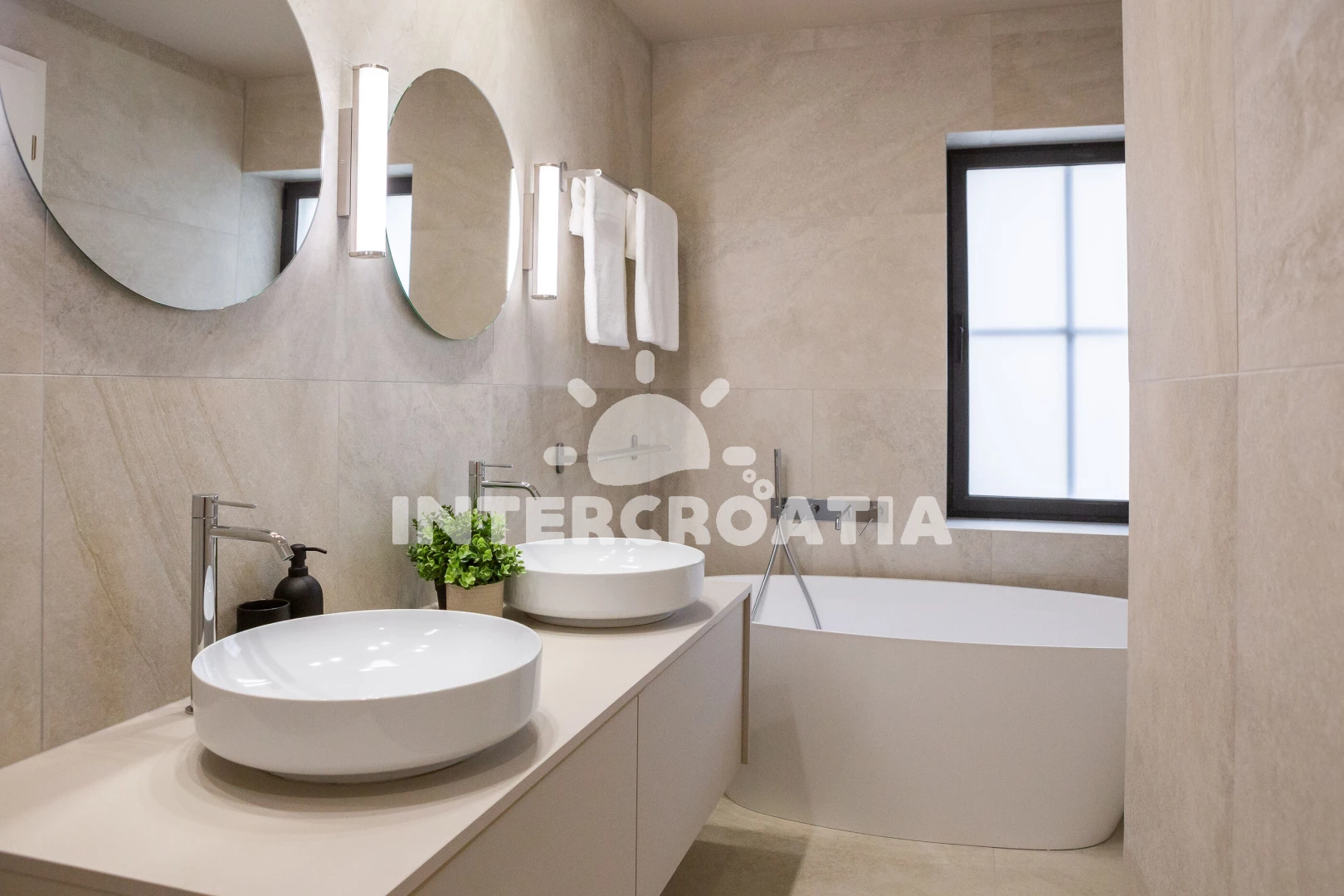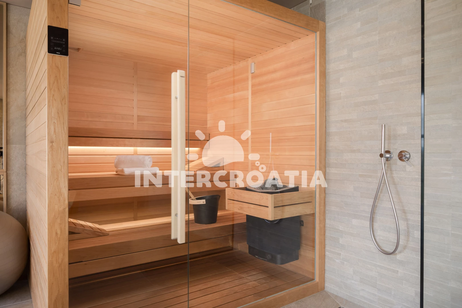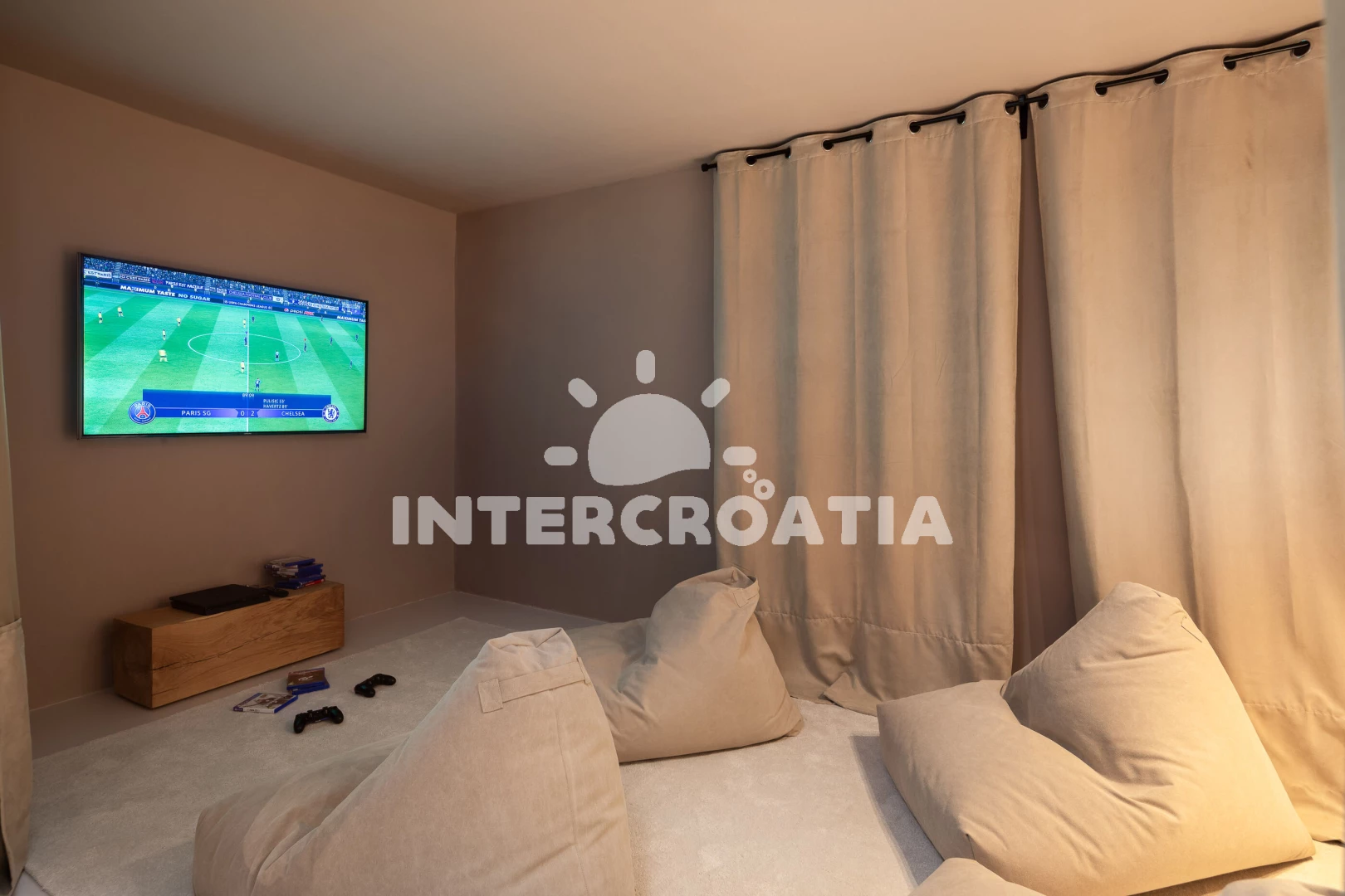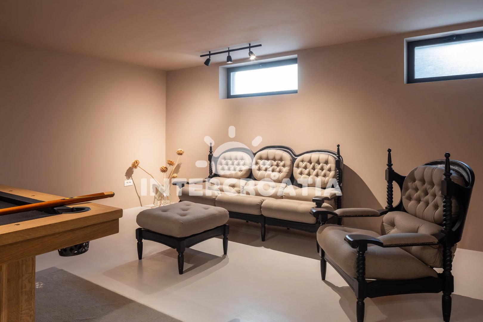 Vila (450 m2). Vila má 5 ložnic a je vhodná pro až 10 osob. Kuchyňská linka je vybavena varnou deskou, kávovarem, troubou, myčkou na nádobí, mikrovlnnou troubou, rychlovarnou konvicí, nádobím, lednicí, mrazákem. K dispozici televize, sejf, žehlička. První ložnice s dvoulůžkem. Druhá ložnice s dvoulůžkem. Třetí ložnice s dvoulůžkem. Čtvrtá ložnice s dvoulůžkem. Pátá ložnice s dvoulůžkem. První koupelna se sprchovým koutem, umyvadlem, WC. Druhá koupelna se sprchovým koutem, umyvadlem, WC. Třetí koupelna se sprchovým koutem, umyvadlem, WC. Čtvrtá koupelna se sprchovým koutem, umyvadlem, WC. Pátá koupelna se sprchovým koutem, umyvadlem, WC.