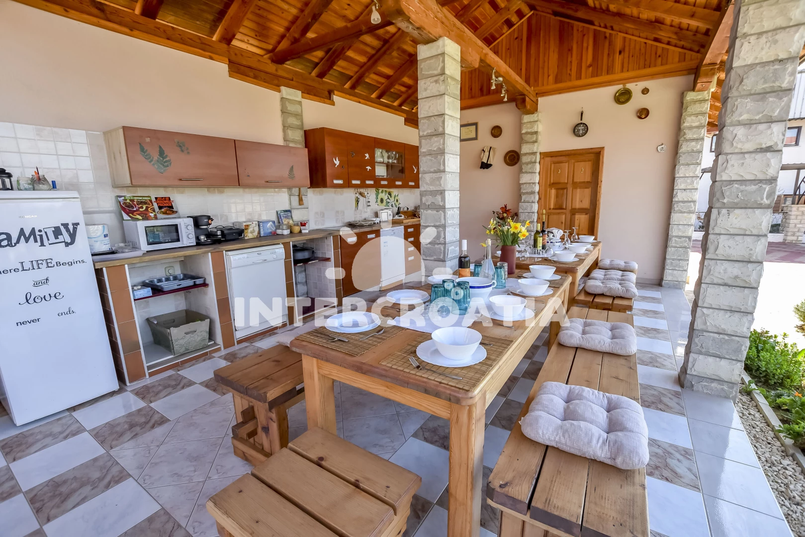Vila se nachází 8000 m od moře a pláže. Pláž je písčitá a oblázková. Vila disponuje bazénem s lehátky pro ubytované hosty. U objektu je k dispozici společná zahrada s posezením a grilem. Parkování je před domem.