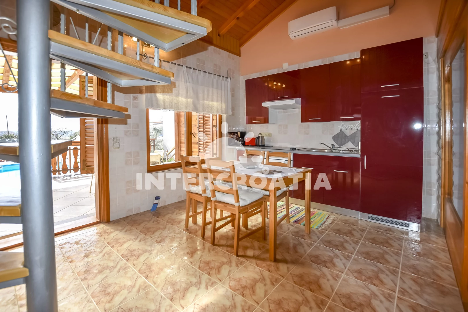 Vila (2). Nachází se v objektu. Vila má 8 ložnic a je vhodná pro až 14 osob. Kuchyňská linka je vybavena varnou deskou, toustovačem, troubou, kávovarem, myčkou na nádobí, mikrovlnnou troubou,…