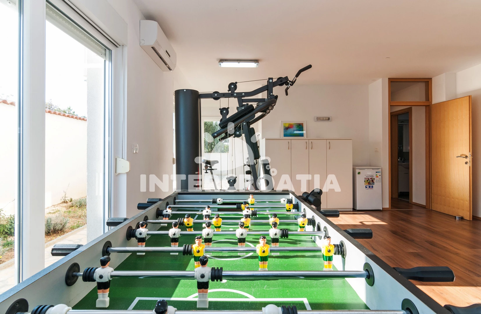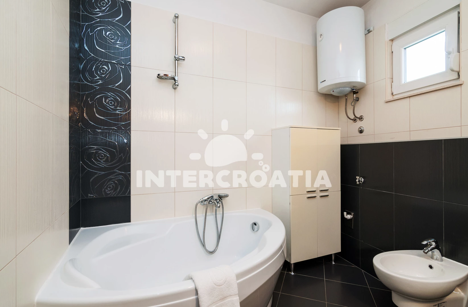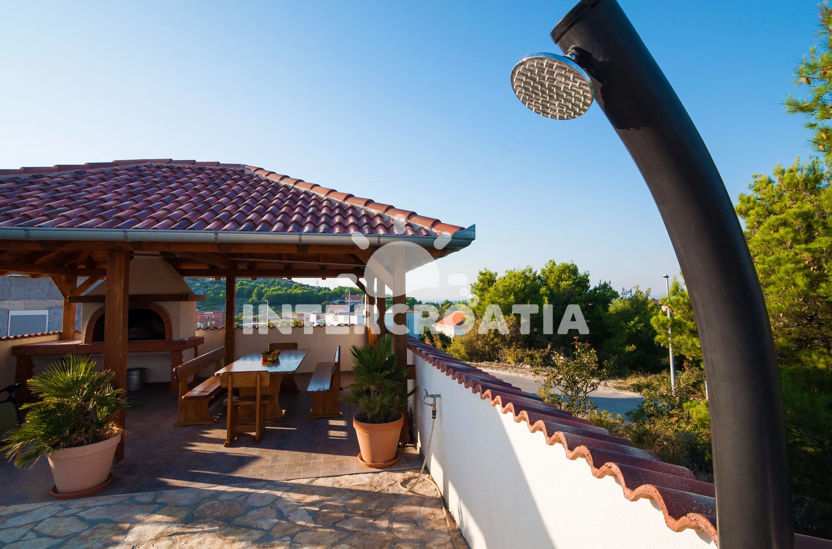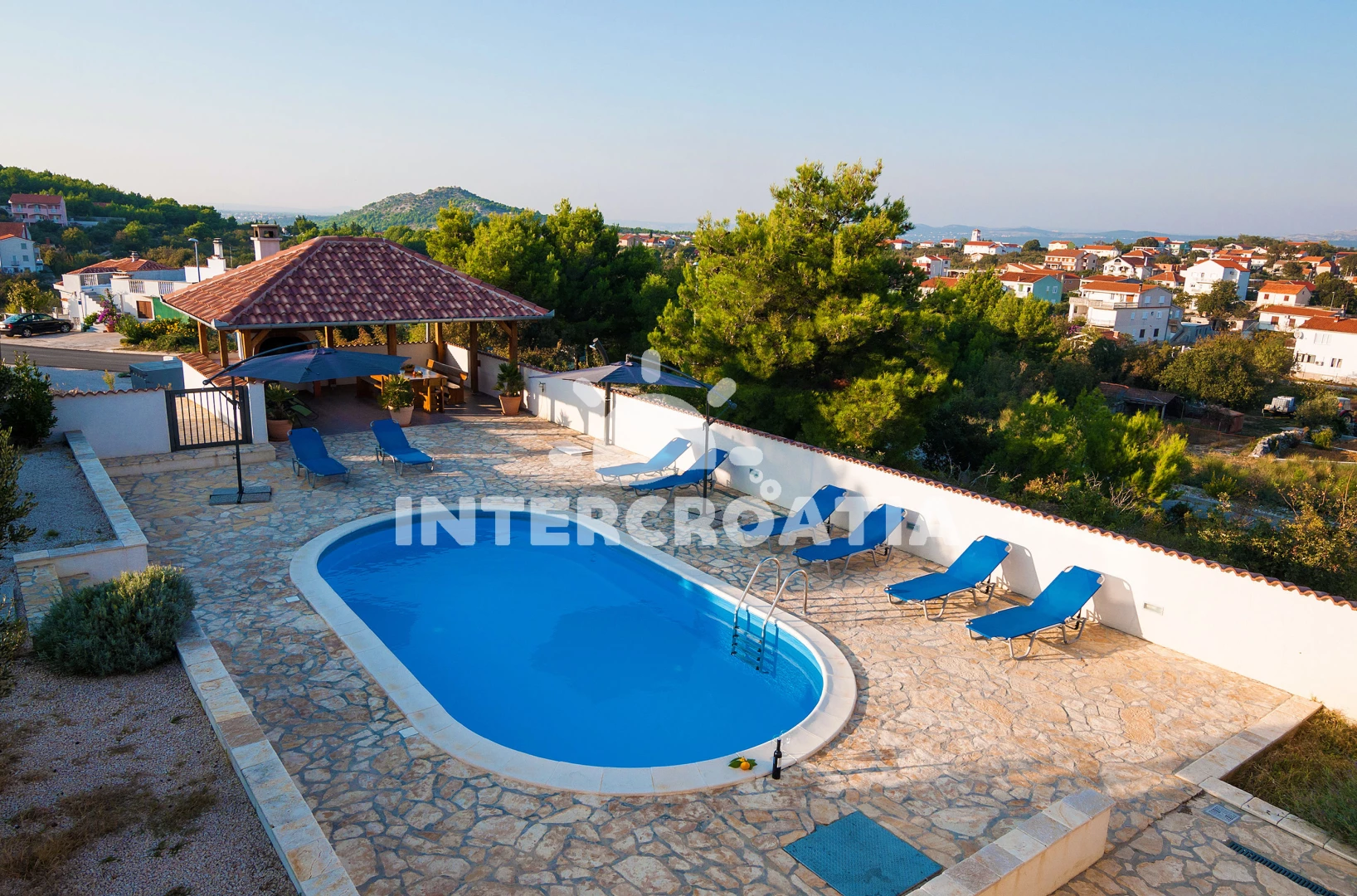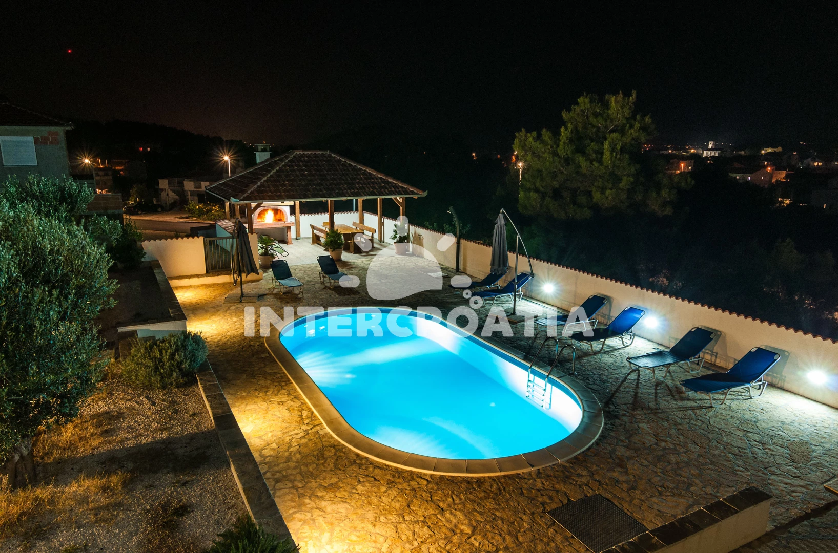 Vila se nachází 400 m od moře a pláže. Pláž je oblázková a betonové desky. Vila disponuje bazénem s lehátky pro ubytované hosty. K dispozici vířivka, posilovna, sauna. U objektu je k dispozici společná zahrada s posezením a grilem. Parkování je před domem.