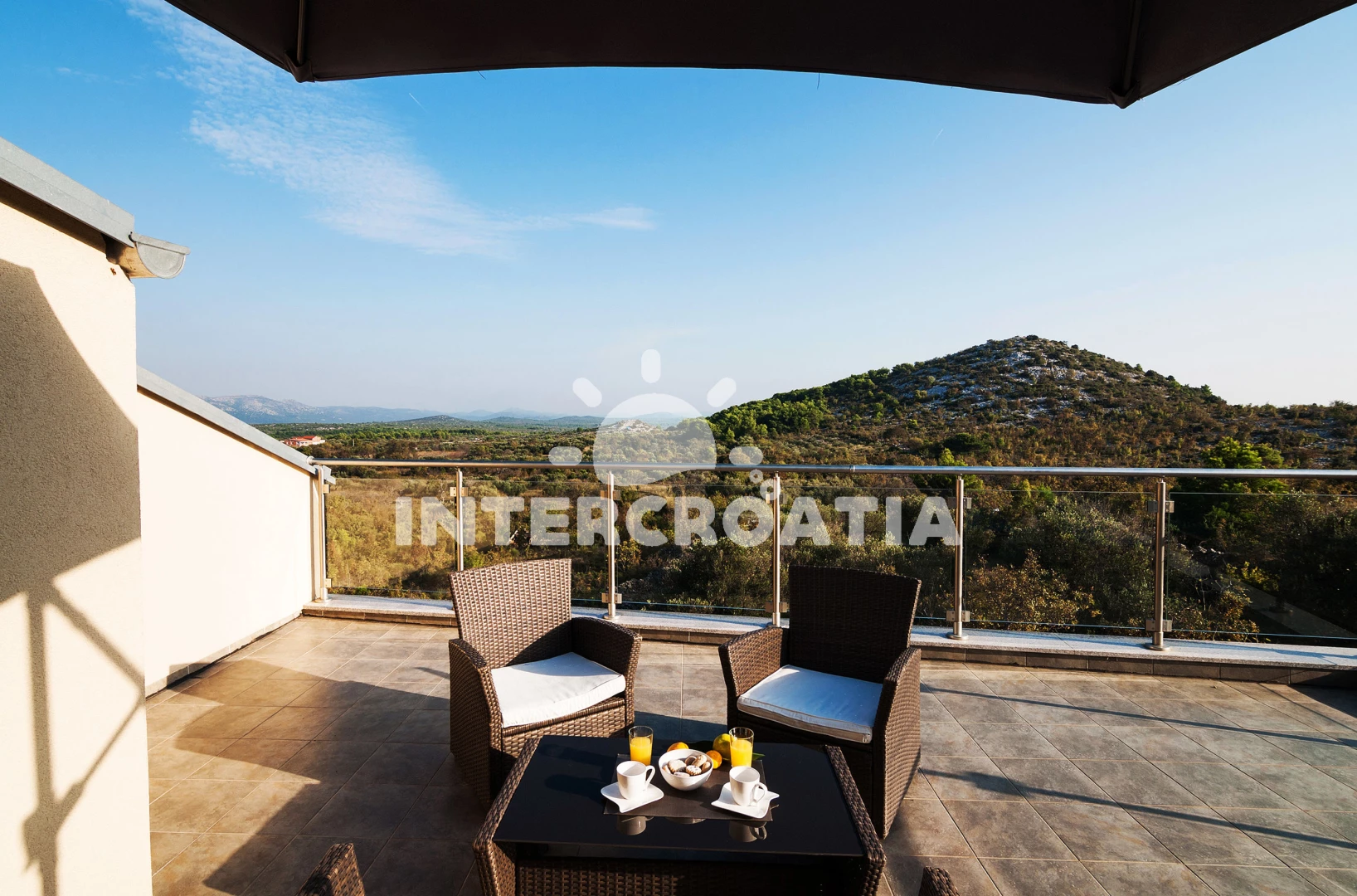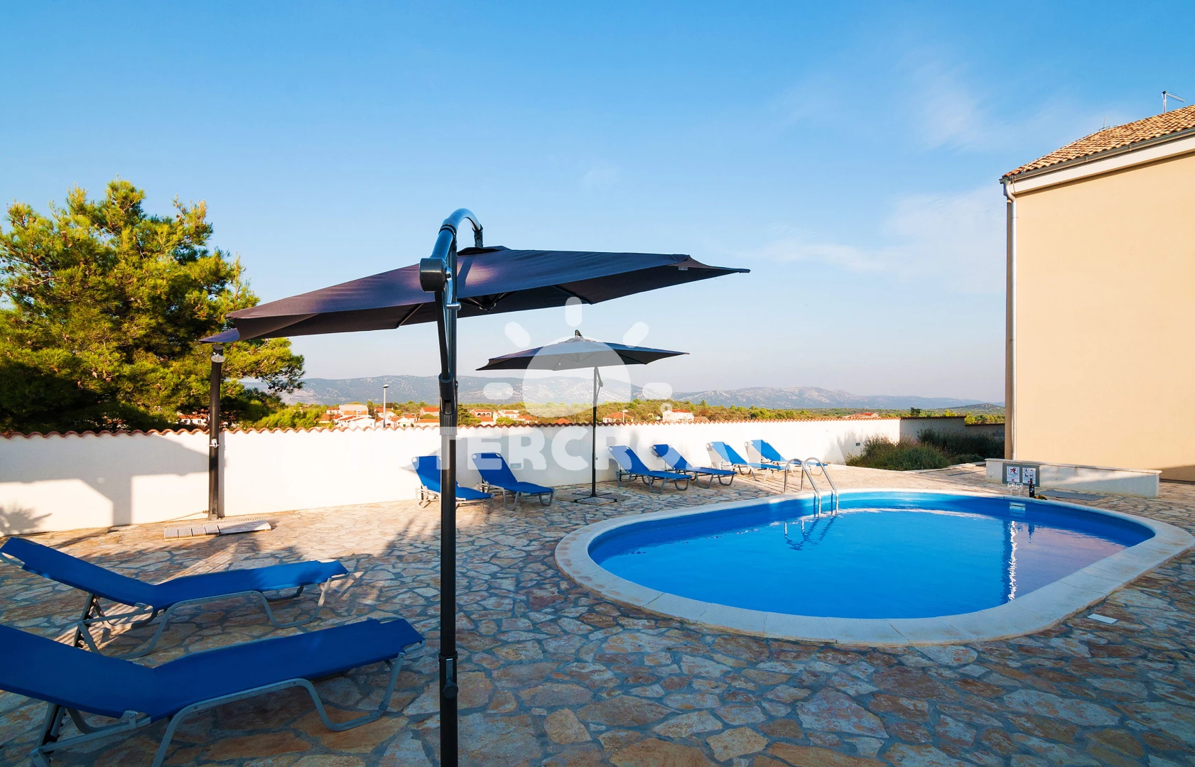 Vila (180 m2) s balkonem. Vila má 1 ložnici a je vhodná pro až 14 osob. Kuchyňská linka je vybavena varnou deskou, toustovačem, troubou, kávovarem, myčkou na nádobí, mikrovlnnou troubou, rychlovarnou konvicí, nádobím, lednicí, mrazákem. K dispozici televize, sejf, radio, žehlička. První koupelna se sprchovým koutem, umyvadlem, fénem a WC. Druhá koupelna se sprchovým koutem, umyvadlem, fénem a WC. Třetí koupelna s vanou, umyvadlem, fénem a WC.