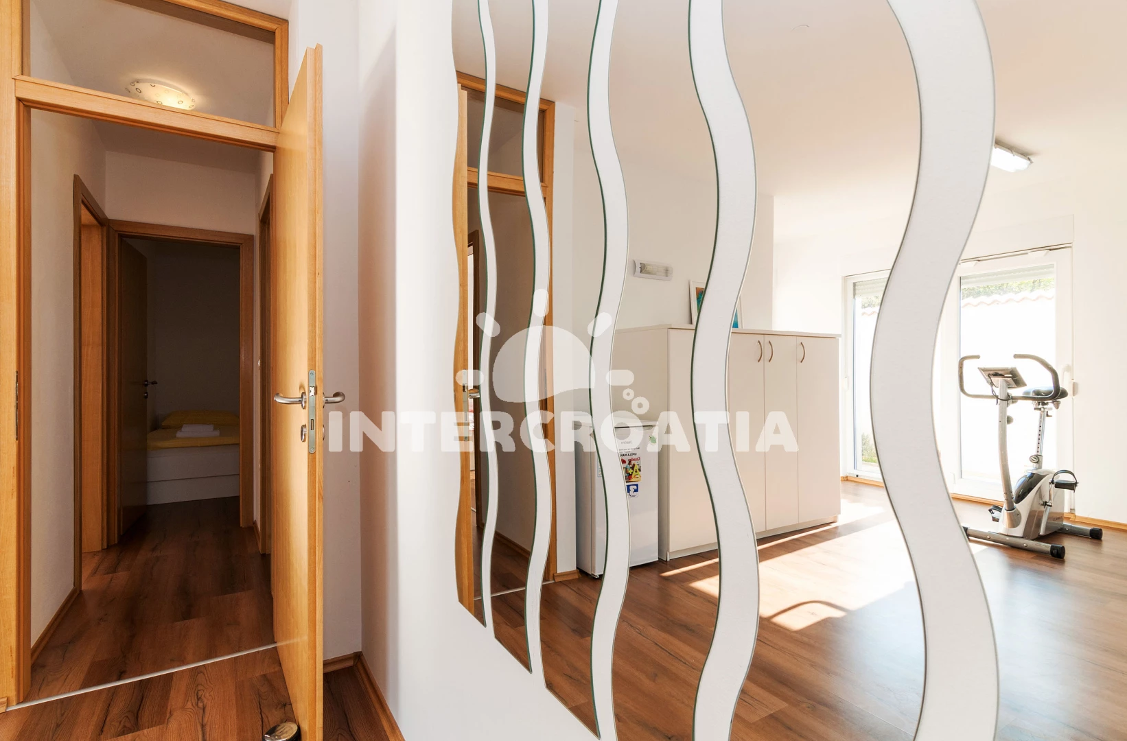 Vzdálenosti: Moře 400 m, pláž 400 m (oblázková a betonové desky), supermarket 300 m, bar 400 m, restaurace 1 km, centrum 1,2 km, veřejná doprava 1,2 km, směnárna 1,5 km, půjčovna kol 5 km, banka 5 km, lékárna 5 km, ambulance 5 km, čerpací stanice 5 km, půjčovna motorových člunů 5 km, pošta 5 km, potápění 5 km, trajekt (Biograd) 10 km, muzeum 10 km, diskotéka 10 km, tenisové kurty 10 km, letiště (Zadar) 40 km,