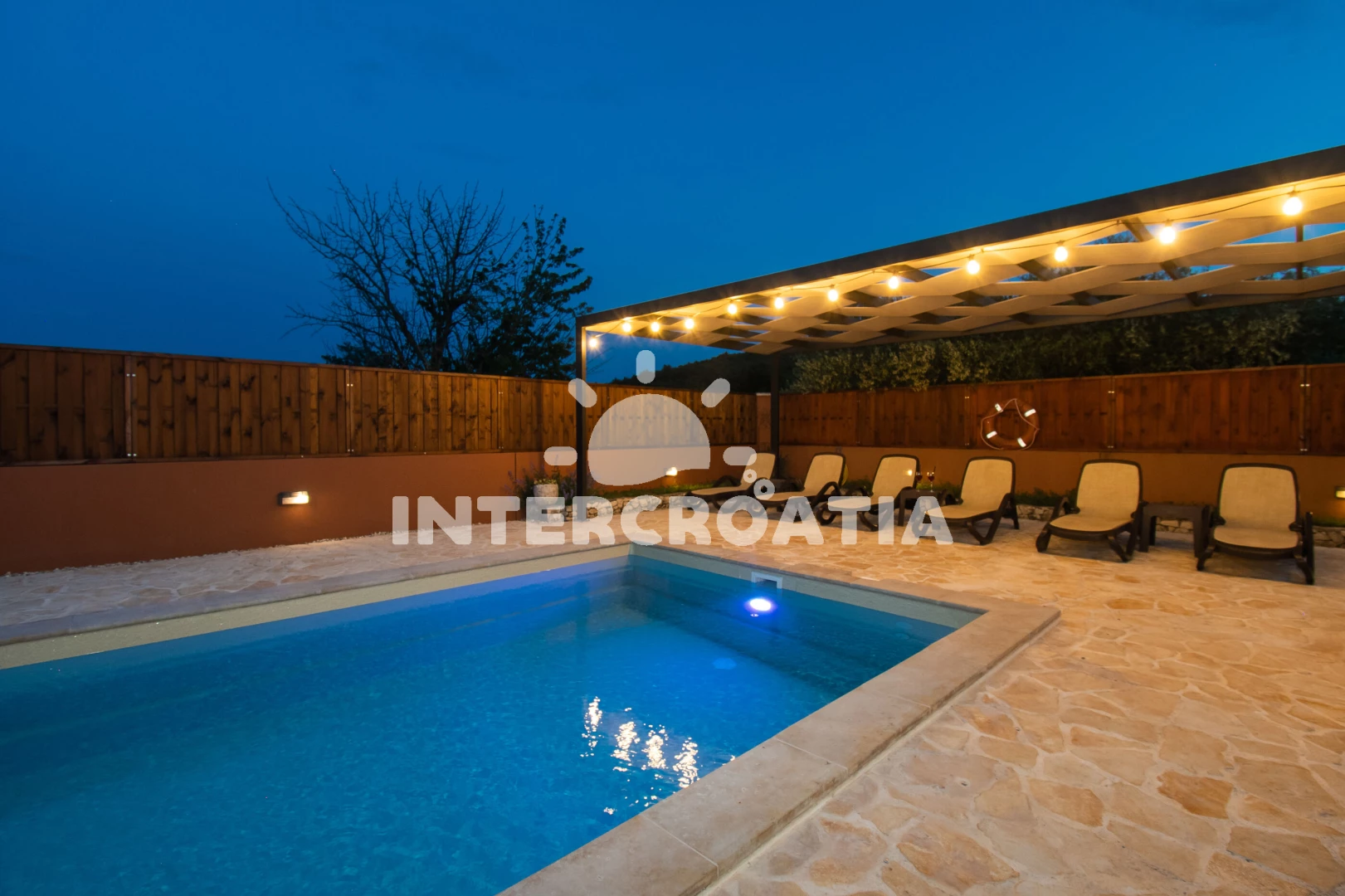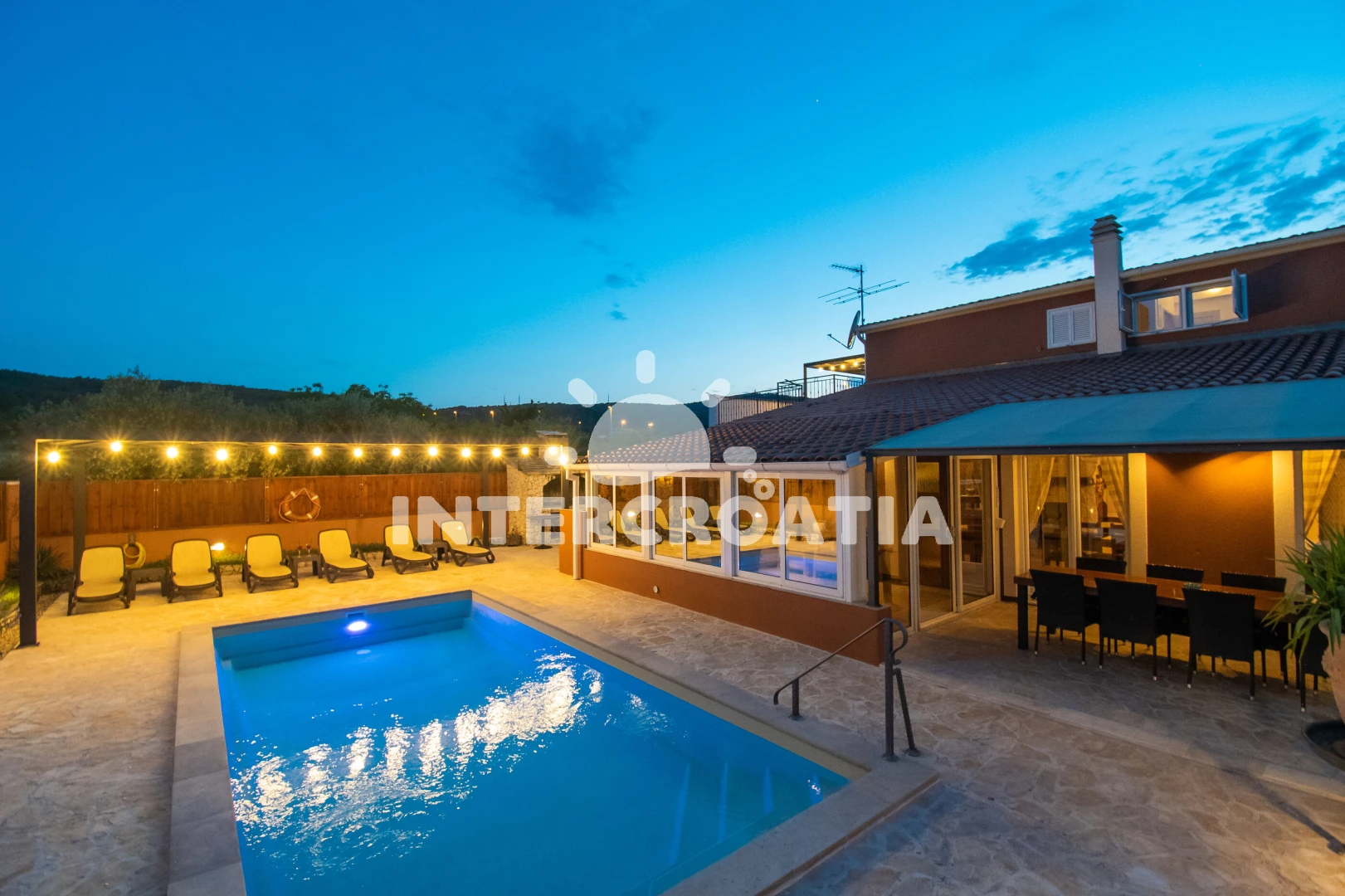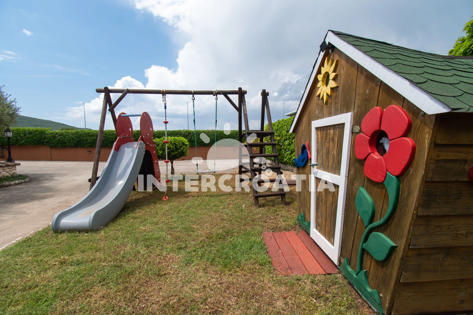 Vila se nachází 8400 m od moře a pláže. Pláž je oblázková. Vila disponuje bazénem s lehátky pro ubytované hosty. K dispozici vířivka. U objektu je k dispozici společná zahrada s posezením a grilem. Parkování je před domem.